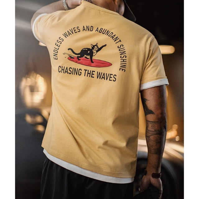 背面にサーフボードに乗った猫のグラフィックと英字ロゴを配した、キャッチーなデザインです。 レトロサーフの雰囲気があり、1枚でこなれた印象になります◎ ≋ SIZE [S]肩幅:49.5cm 胸囲:112cm 袖丈:22.5cm 着丈:66cm 袖口幅:38cm [M]肩幅:51cm 胸囲:116cm 袖丈:23cm 着丈:68cm 袖口幅:39cm [L]肩幅:52.5cm 胸囲:120cm 袖丈:23.5cm 着丈:70cm 袖口幅:40cm [XL]肩幅:54cm 胸囲:124cm 袖丈:24cm 着丈:72cm 袖口幅:41cm [2XL]肩幅:55.5cm 胸囲:128cm 袖丈:24.5cm 着丈:74cm 袖口幅:42cm ※採寸方法により1~3cmの誤差がある場合がございます ≋ COLOR Yellow ≋ 素材 綿 ■お届けについて こちらは海外セレクト商品です。環境への配慮から、商品はすべて受注後、買い付けをしております。そのため、発送まで2〜3週間前後お時間をいただいておりますが、楽しみにお待ちいただけますと幸いです。 (※商品の状況によっては、4週間以上かかる場合もございます。) ◼️注意事項 ・ご注文のタイミングによっては、在庫がご用意できず、やむを得ずキャンセルのご連絡を差し上げる場合がございます。その際は速やかにご連絡の上、全額返金させていただきます。誠に恐れ入りますが、あらかじめご了承くださいませ。 ・商品画像はイメージです。実物とは若干異なる場合がございます。 屋内・屋外での場合も色合いに誤差が生じることがありますので、ご理解いただけますようお願い致します。 ・日本製とは検品基準が異なる為、新品未使用品でも、ごくわずかな汚れや傷がある場合がございます。 ・商品の色味は、お手持ちのスマートフォンの画面によって実物と若干異なる場合がございます。 ・受注後1件1件買い付けをしておりますため、イメージ違いやサイズ等、お客様都合による交換、返品、キャンセルは対応出来かねます。ご理解いただけますようお願い致します。 〰〰〰〰〰〰〰〰〰〰〰〰〰〰〰〰 全商品はこちらからCHECK! ►https://official.sunseasurf.jp/ 〰〰〰〰〰〰〰〰〰〰〰〰〰〰〰〰 ご購入前に必ずこちらをお読みください ►https://official.sunseasurf.jp/about 〰〰〰〰〰〰〰〰〰〰〰〰〰〰〰〰