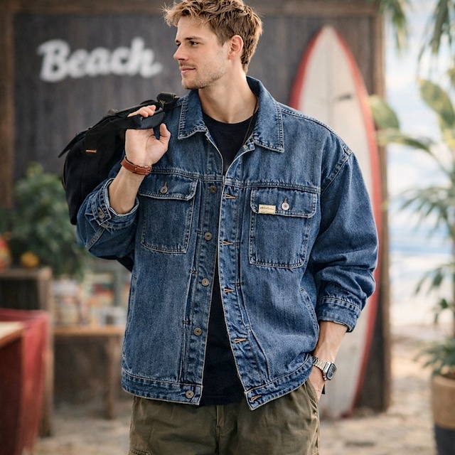 ゆったりとしたシルエットが特徴のデニムジャケットです。 胸元の大きなポケットがアクセントになり、毎日のコーディネートに馴染みます。 お気に入りのスニーカーと合わせて、リラックスしたスタイルを楽しんでください。 ≋ SIZE [M]肩幅:53.5cm 胸囲:110cm 袖丈:56cm 着丈:67.5cm 袖口幅:12cm [L]肩幅:55cm 胸囲:114cm 袖丈:57cm 着丈:69cm 袖口幅:12.5cm [XL]肩幅:56.5cm 胸囲:118cm 袖丈:58cm 着丈:70.5cm 袖口幅:13cm [2XL]肩幅:58cm 胸囲:122cm 袖丈:59cm 着丈:72cm 袖口幅:13.5cm [3XL]肩幅:59.5cm 胸囲:126cm 袖丈:60cm 着丈:73.5cm 袖口幅:14cm [4XL]肩幅:61cm 胸囲:130cm 袖丈:61cm 着丈:75cm 袖口幅:14.5cm ※採寸方法により1~3cmの誤差がある場合がございます ≋ COLOR Blue ≋ 素材 綿 ポリエステル ■お届けについて こちらは海外セレクト商品です。発送まで2〜3週間前後お時間をいただいておりますが、楽しみにお待ちいただけますと幸いです。 (※商品の状況によっては、4週間以上かかる場合もございます。) ◼️注意事項 ・ご注文のタイミングによっては、在庫がご用意できず、やむを得ずキャンセルのご連絡を差し上げる場合がございます。あらかじめご了承くださいませ。 ・商品画像はイメージです。実物とは若干異なる場合がございます。 ・日本製とは検品基準が異なる為、新品未使用品でも、ごくわずかな汚れや傷がある場合がございます。 ・商品の色味は、お使いのデバイスによって差が生じるため、実物と若干異なる場合がございます。 ・受注後1件1件買い付けをしておりますため、イメージ違いやサイズ等、お客様都合による交換、返品、キャンセルは対応出来かねます。ご理解いただけますようお願い致します。 〰〰〰〰〰〰〰〰〰〰〰〰〰〰〰〰 全商品はこちらからCHECK! ►https://official.sunseasurf.jp/ 〰〰〰〰〰〰〰〰〰〰〰〰〰〰〰〰 お買い物ガイド(納期・返品について) ご購入前に必ずこちらをお読みください ►https://official.sunseasurf.jp/blog/2025/12/11/232822 〰〰〰〰〰〰〰〰〰〰〰〰〰〰〰〰