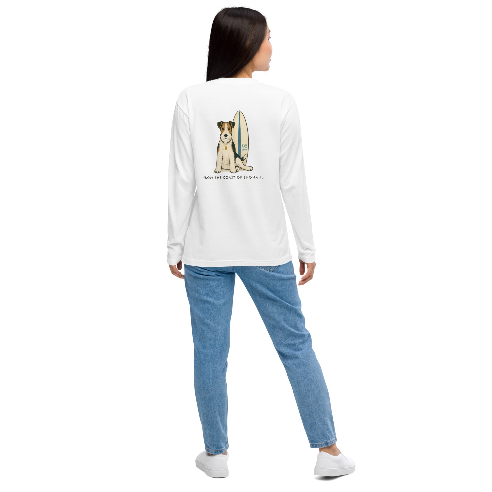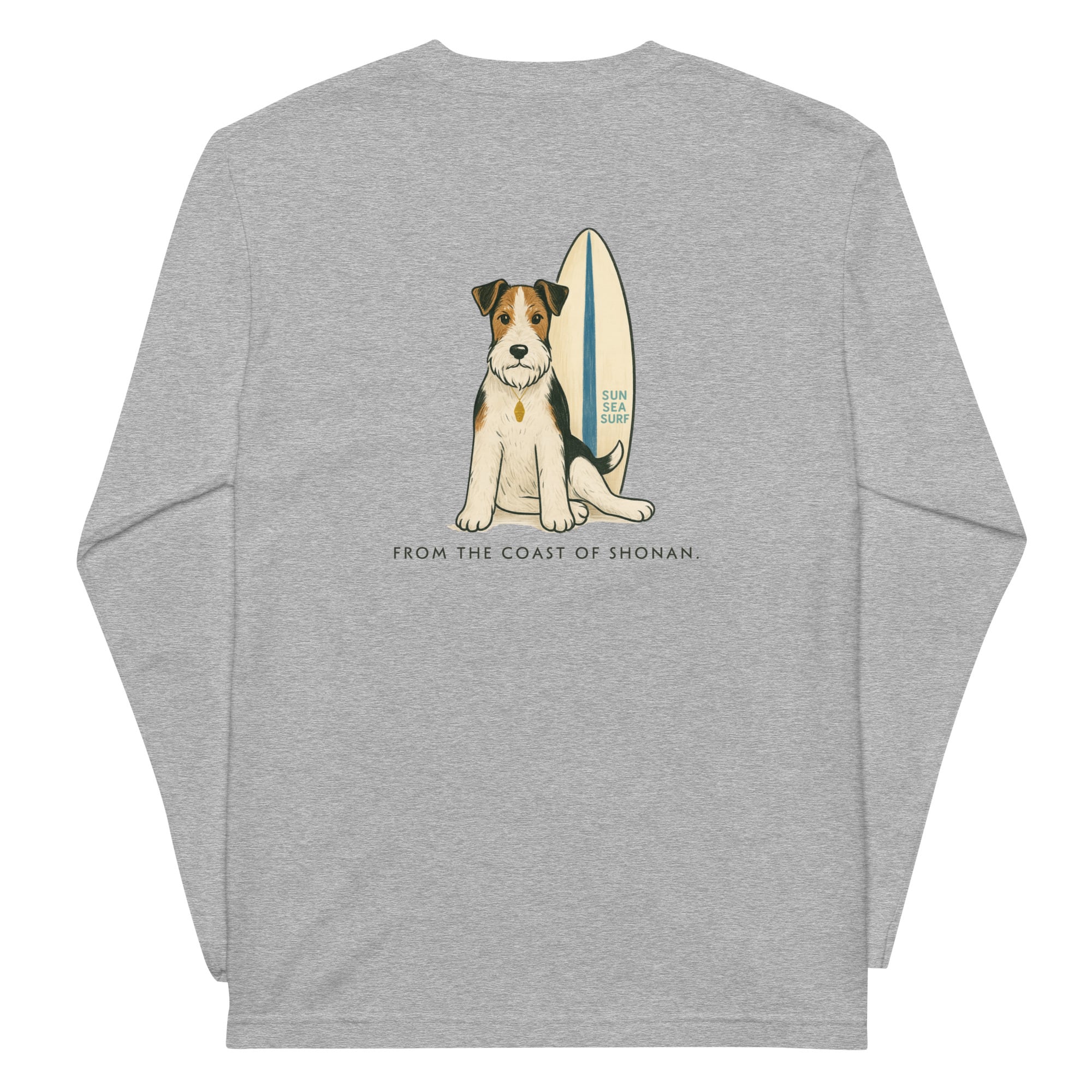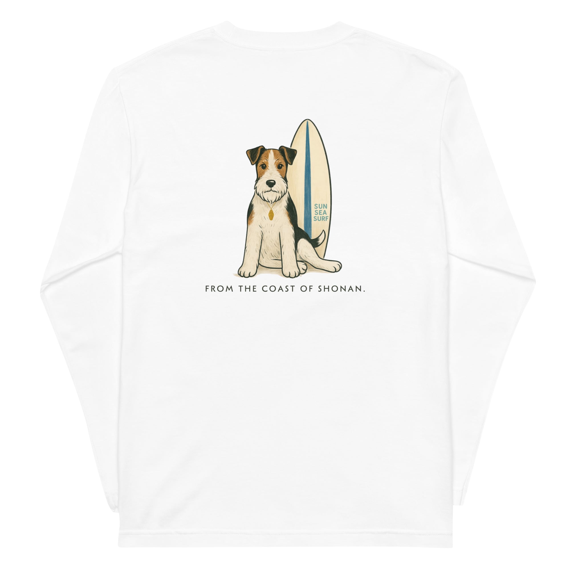 ゆるっと座った看板犬のJinaとサーフボードが象徴的なメインビジュアル