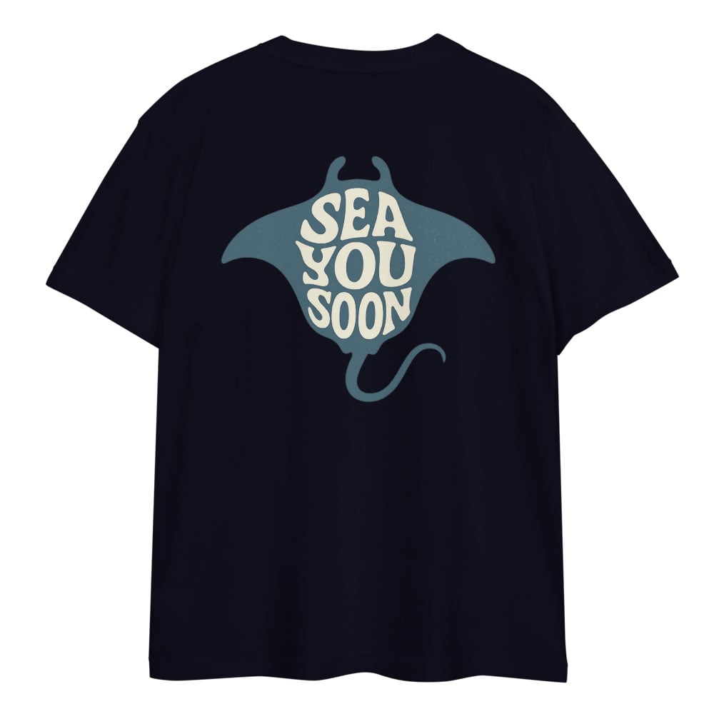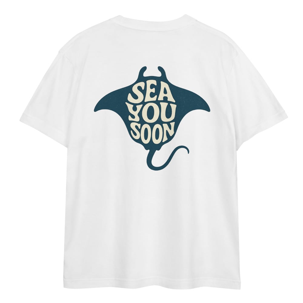 ゆるく泳ぐマンタに乗せた、"SEA YOU SOON" のメッセージ