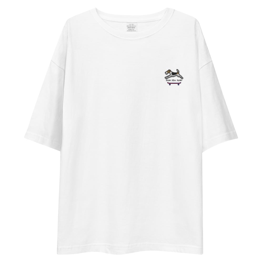 スケートボードとワイヤーフォックステリアの刺繍ワンポイント