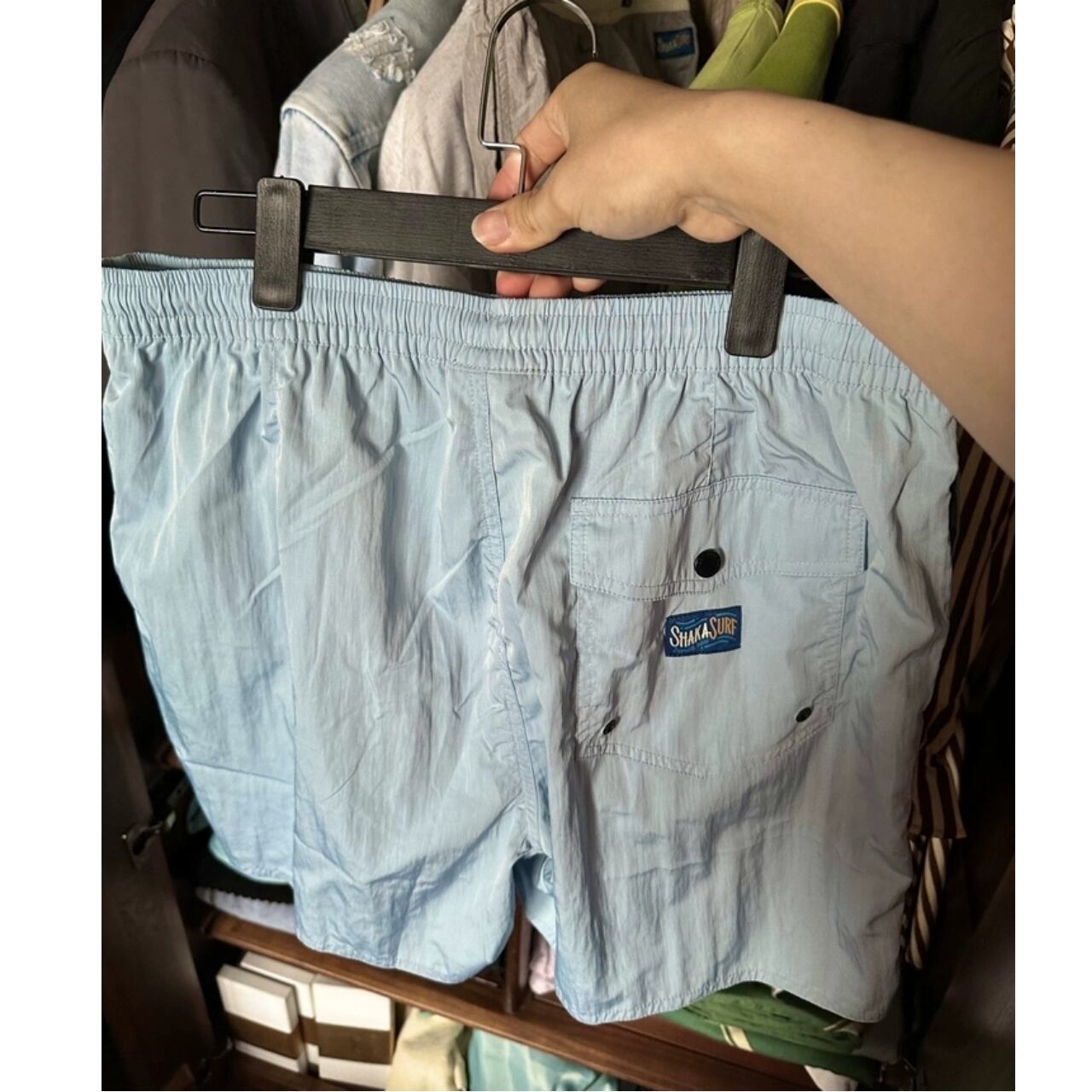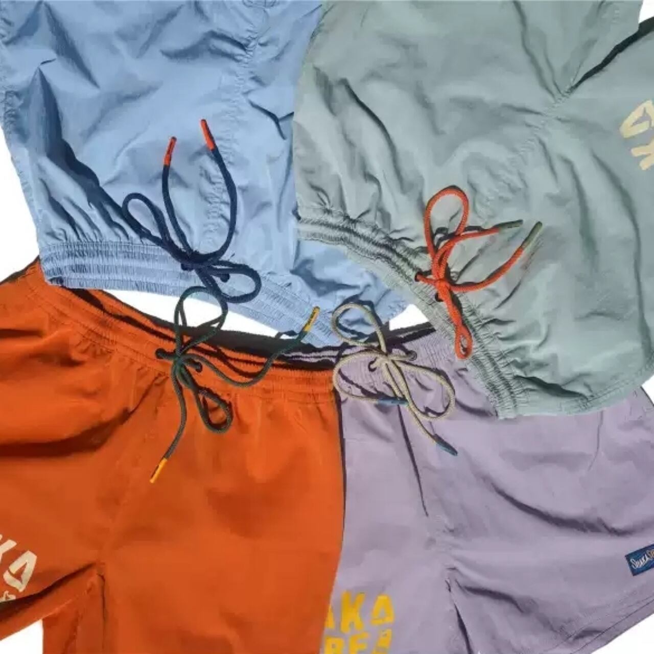 夏のビーチを彩る、爽やかな配色のスイムショーツ