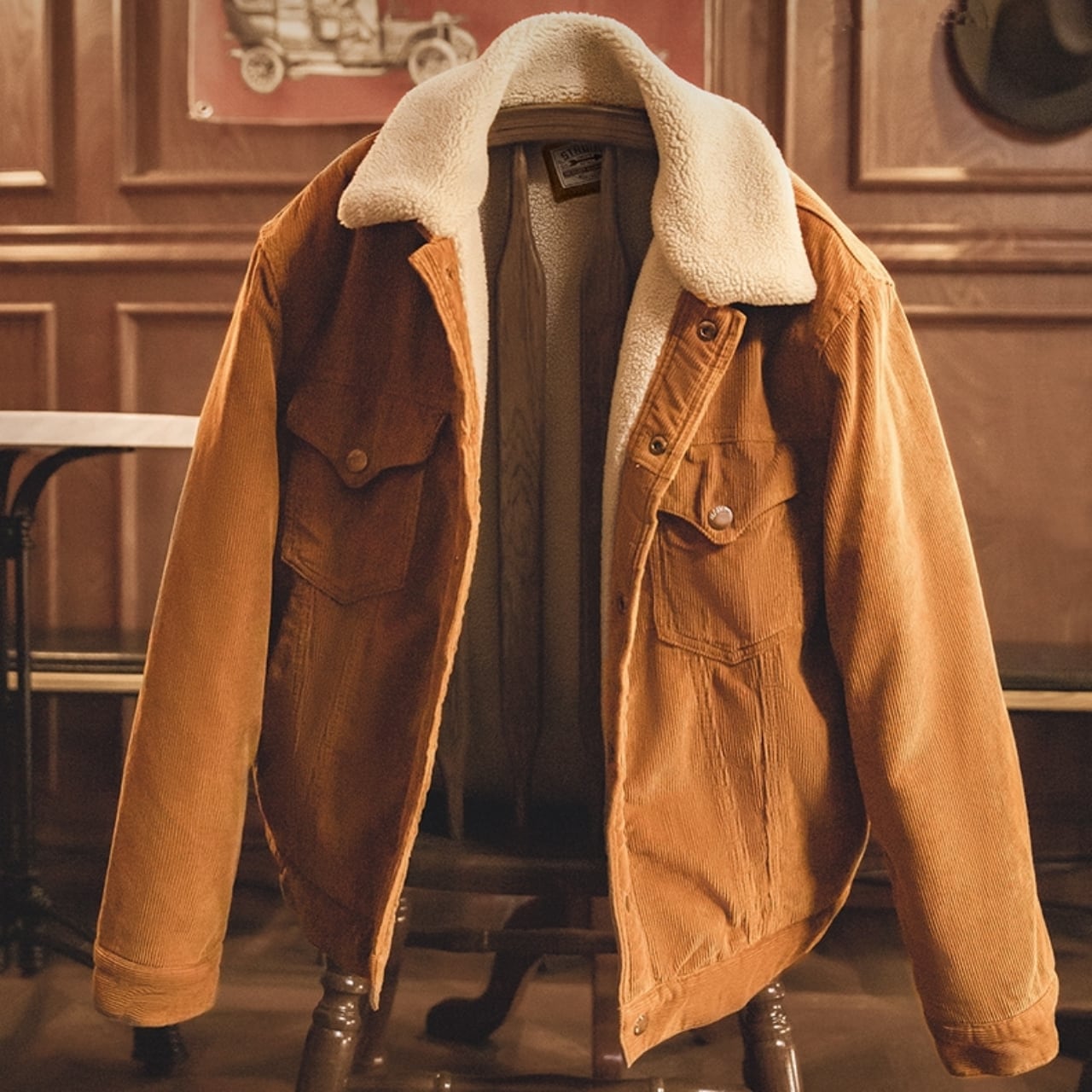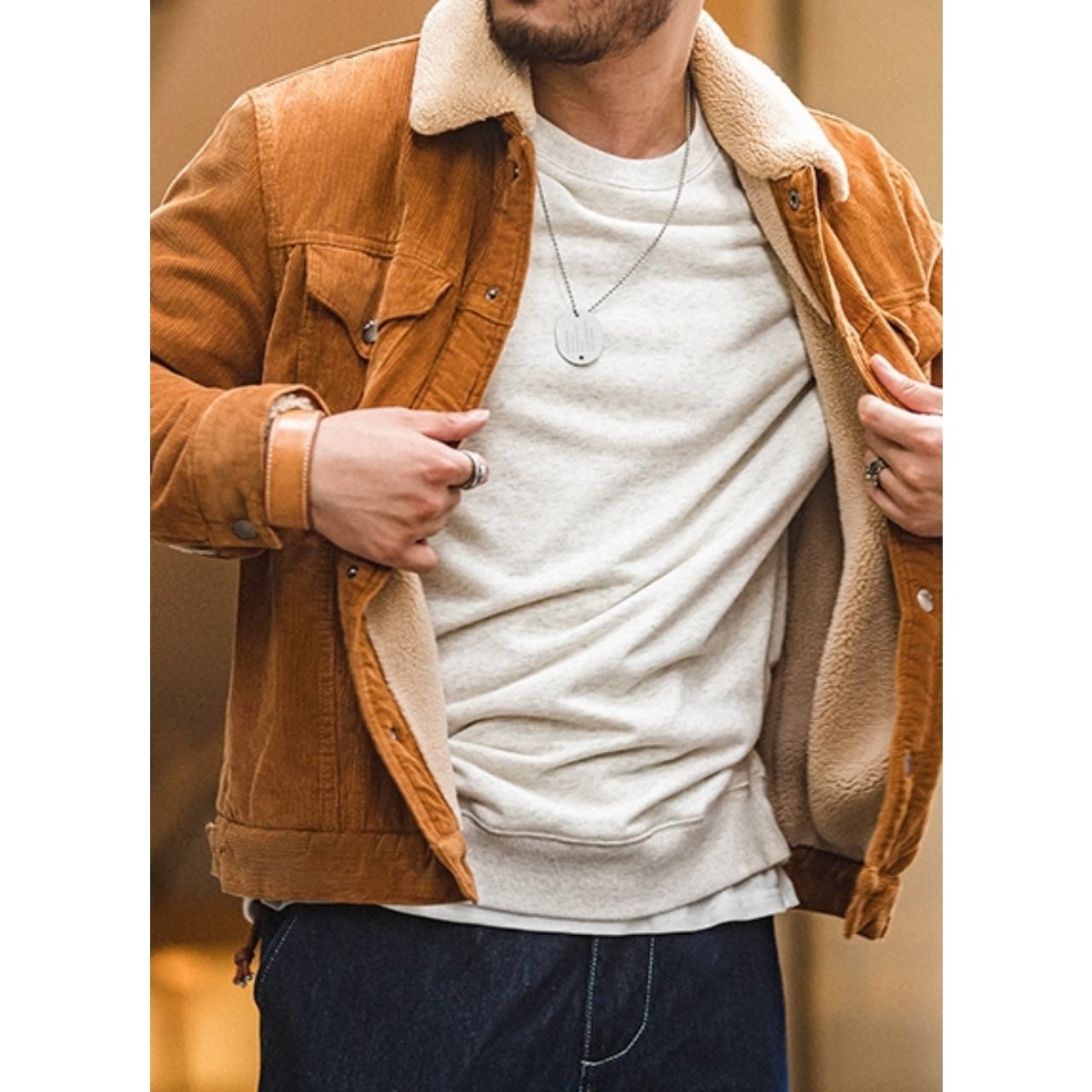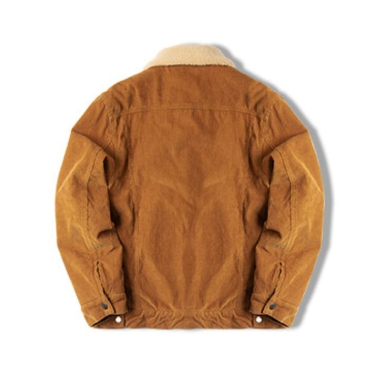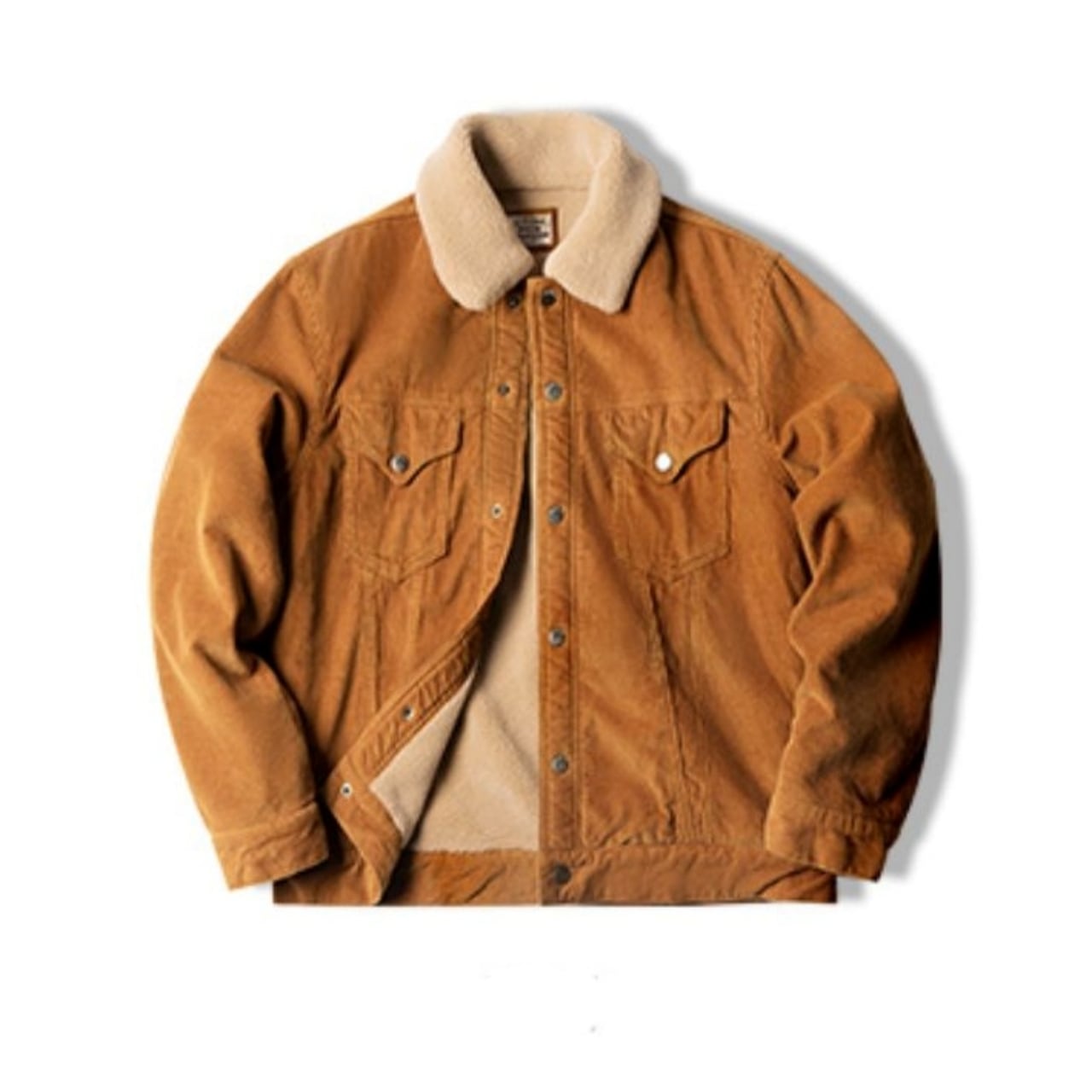 温かみのあるコーデュロイ生地とボア襟が特徴のワークジャケット