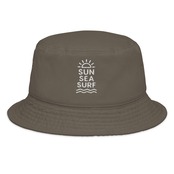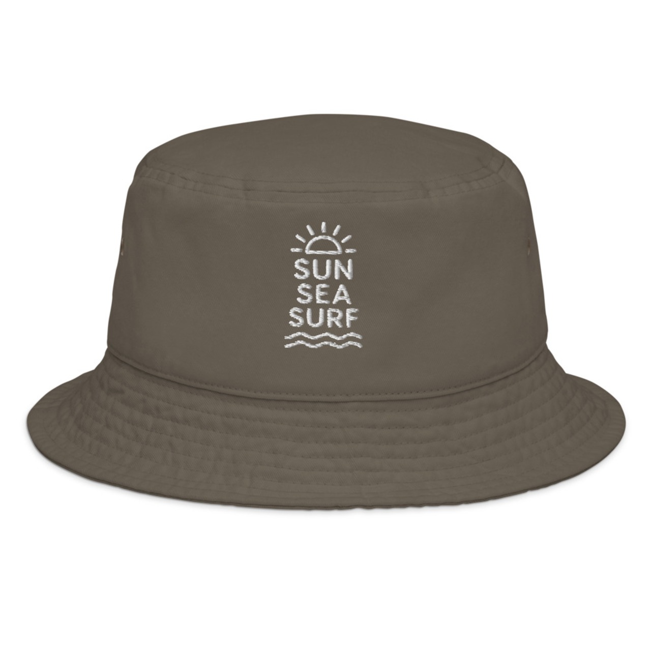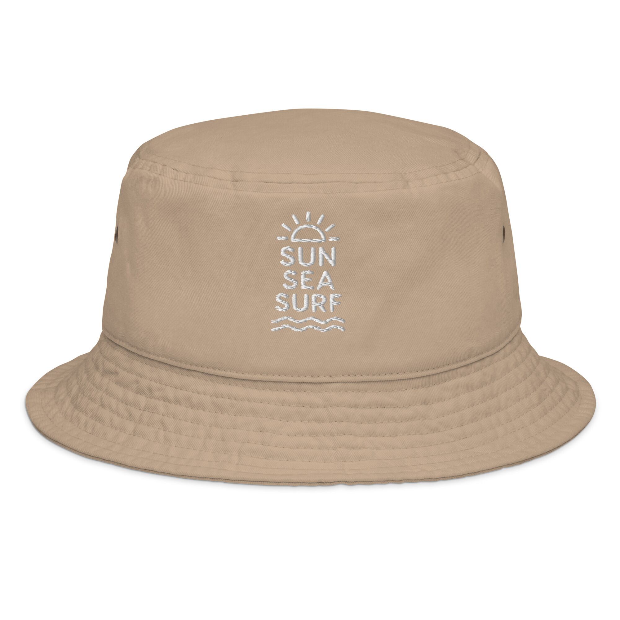 ブランドのメインロゴを刺繍でデザインしたバケットハット