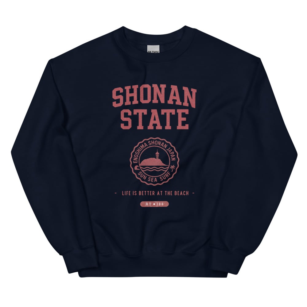 湘南・江の島を象徴するシーキャンドルを、スタンプ風のエンブレムに落とし込んだデザイン
