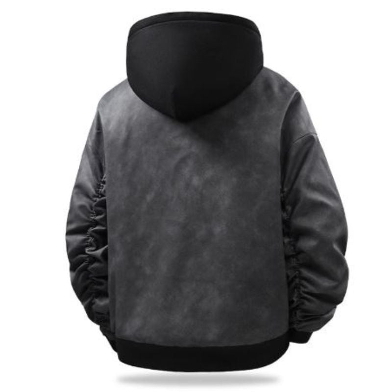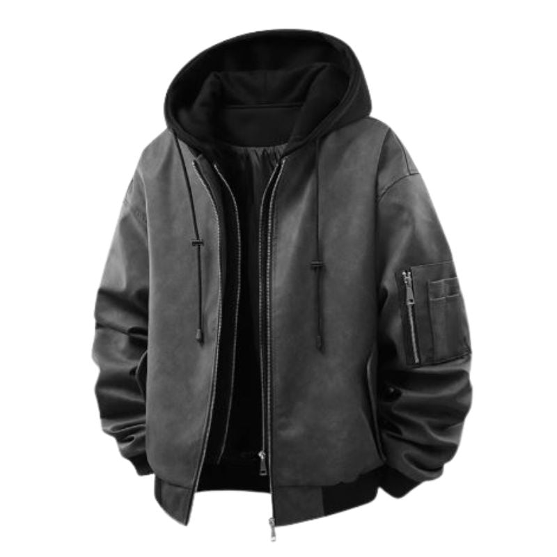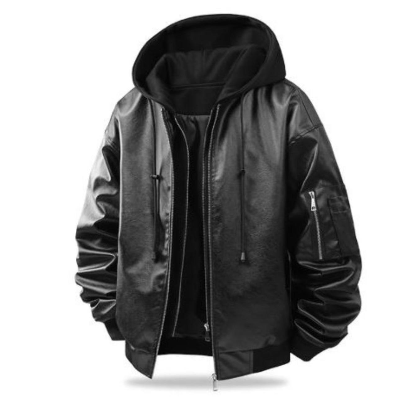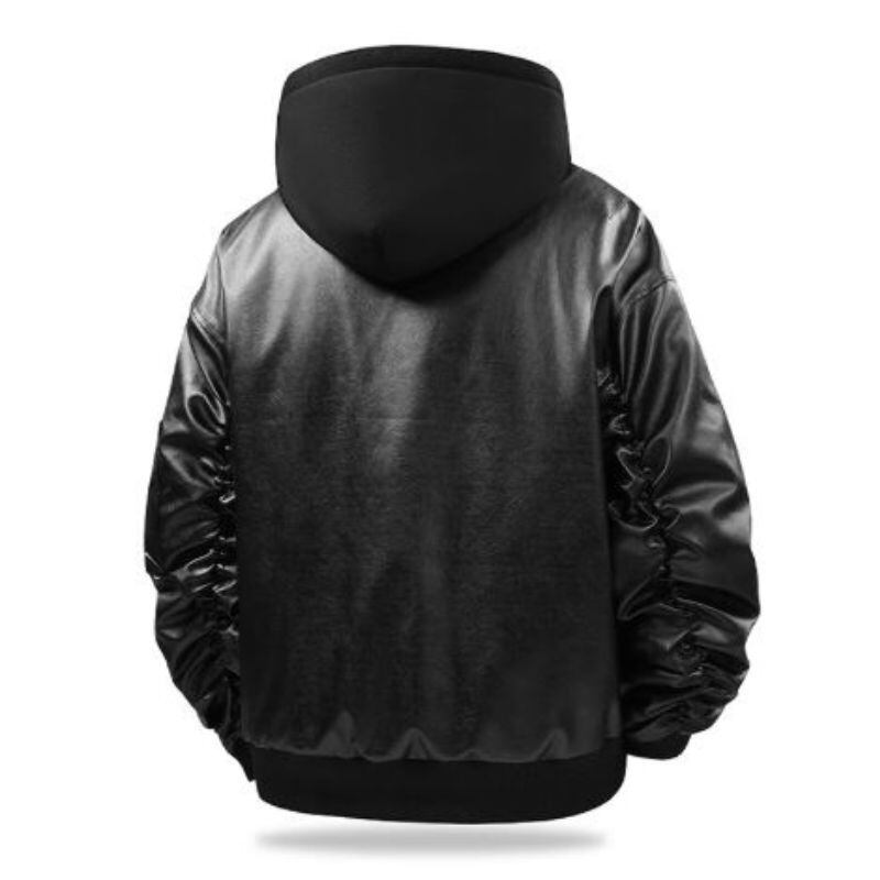 Hooded Zip-Up Short Faux Leather Jacket S0114