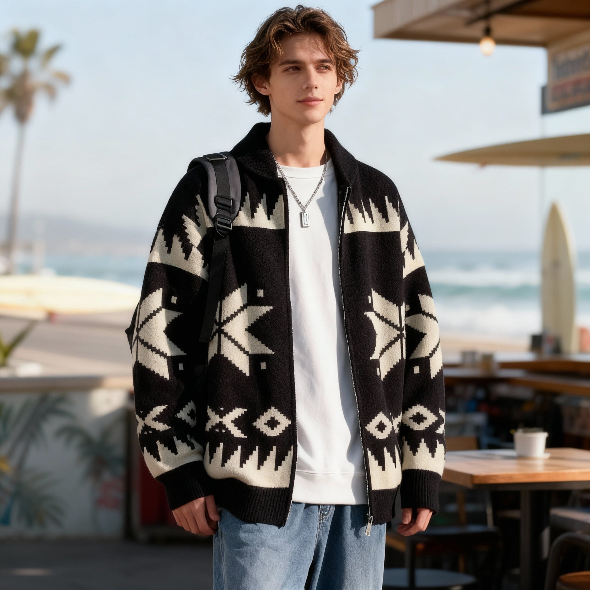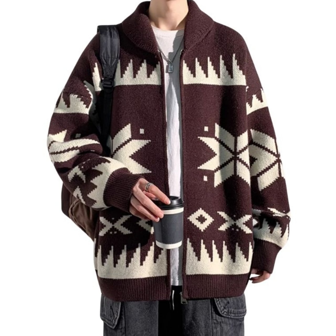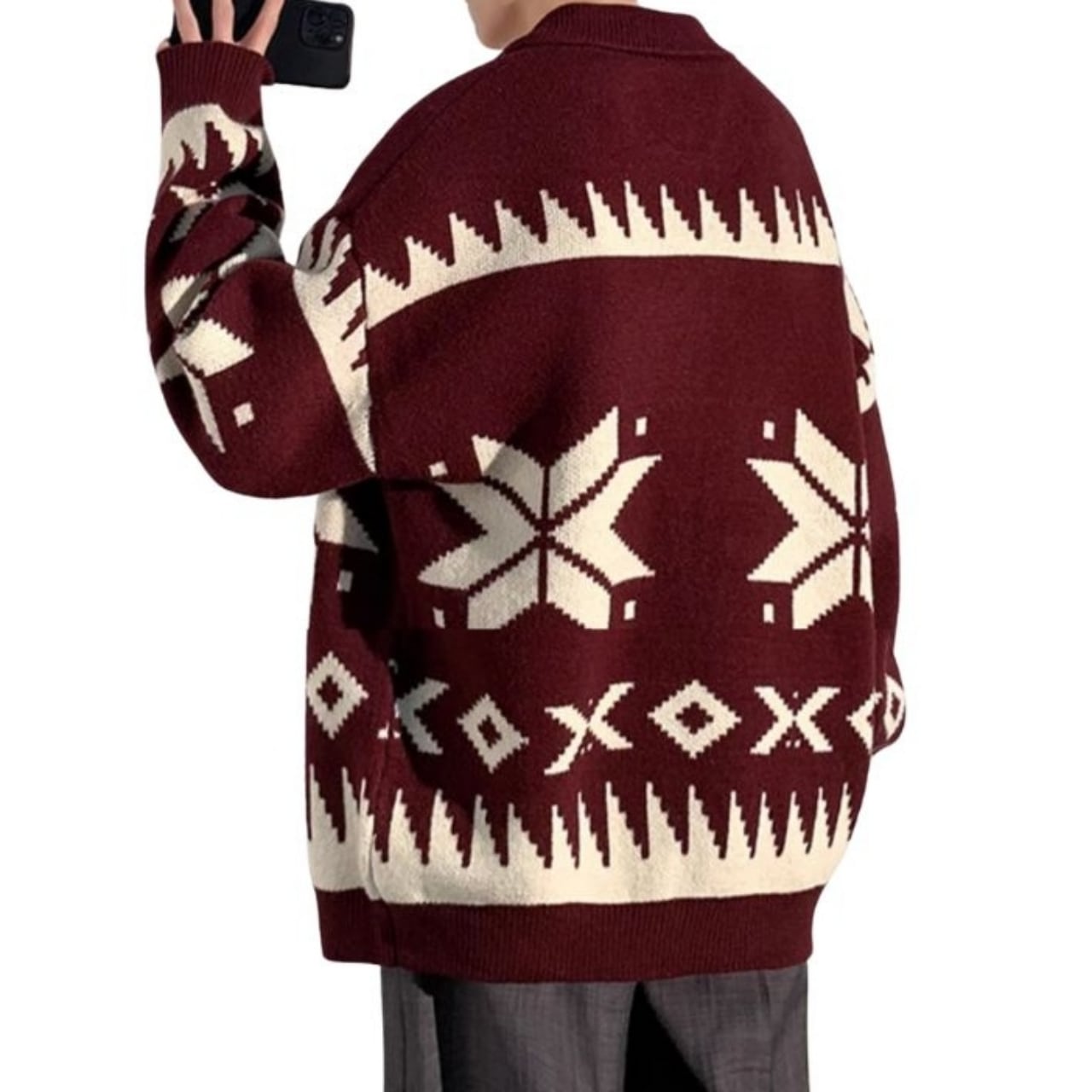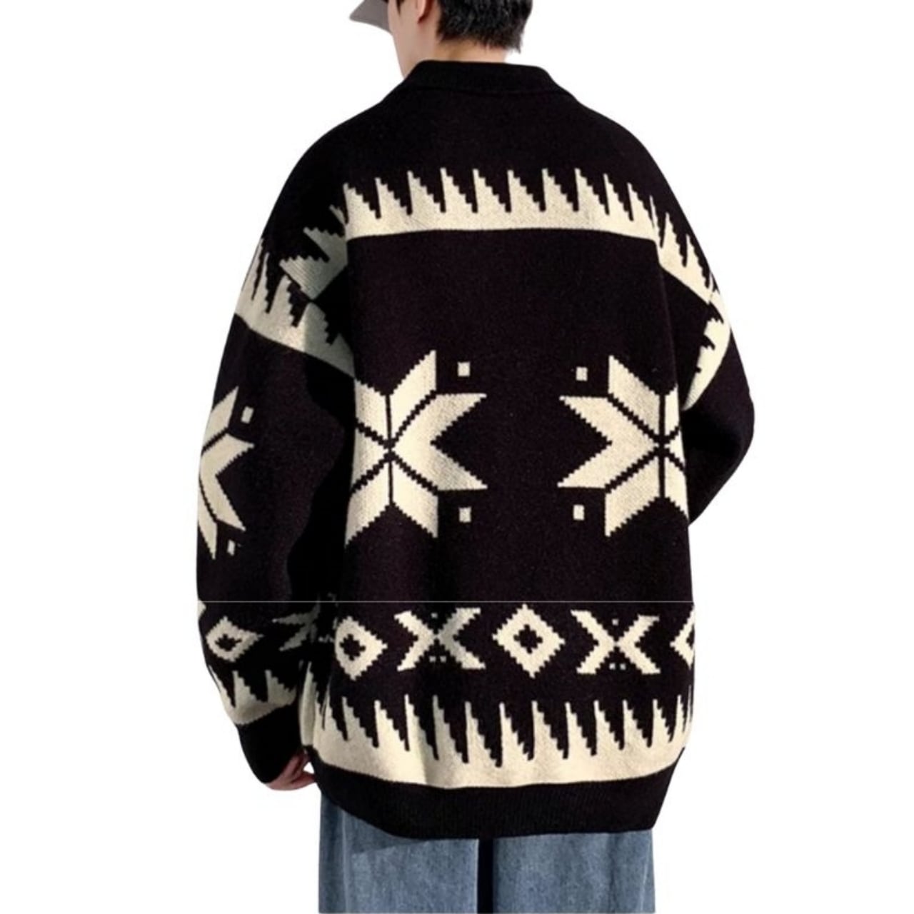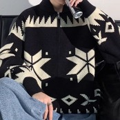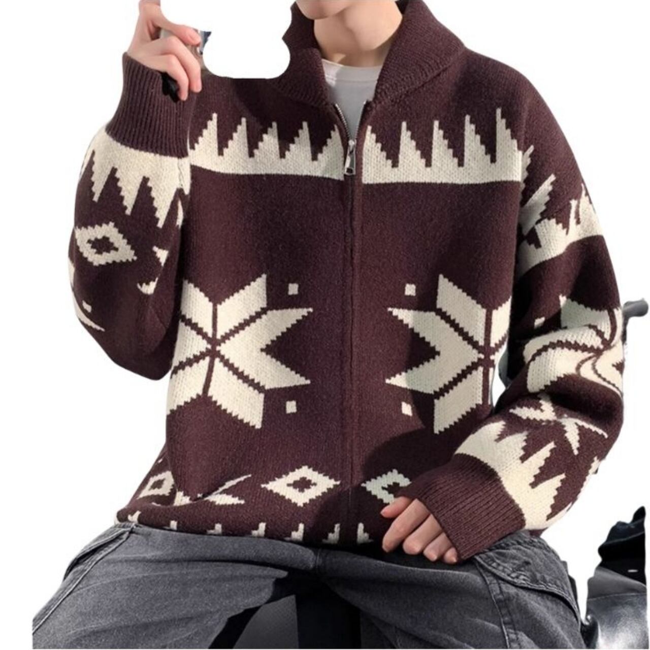 Full Zip Snow Pattern Waist-Length Knit Jacket S0121