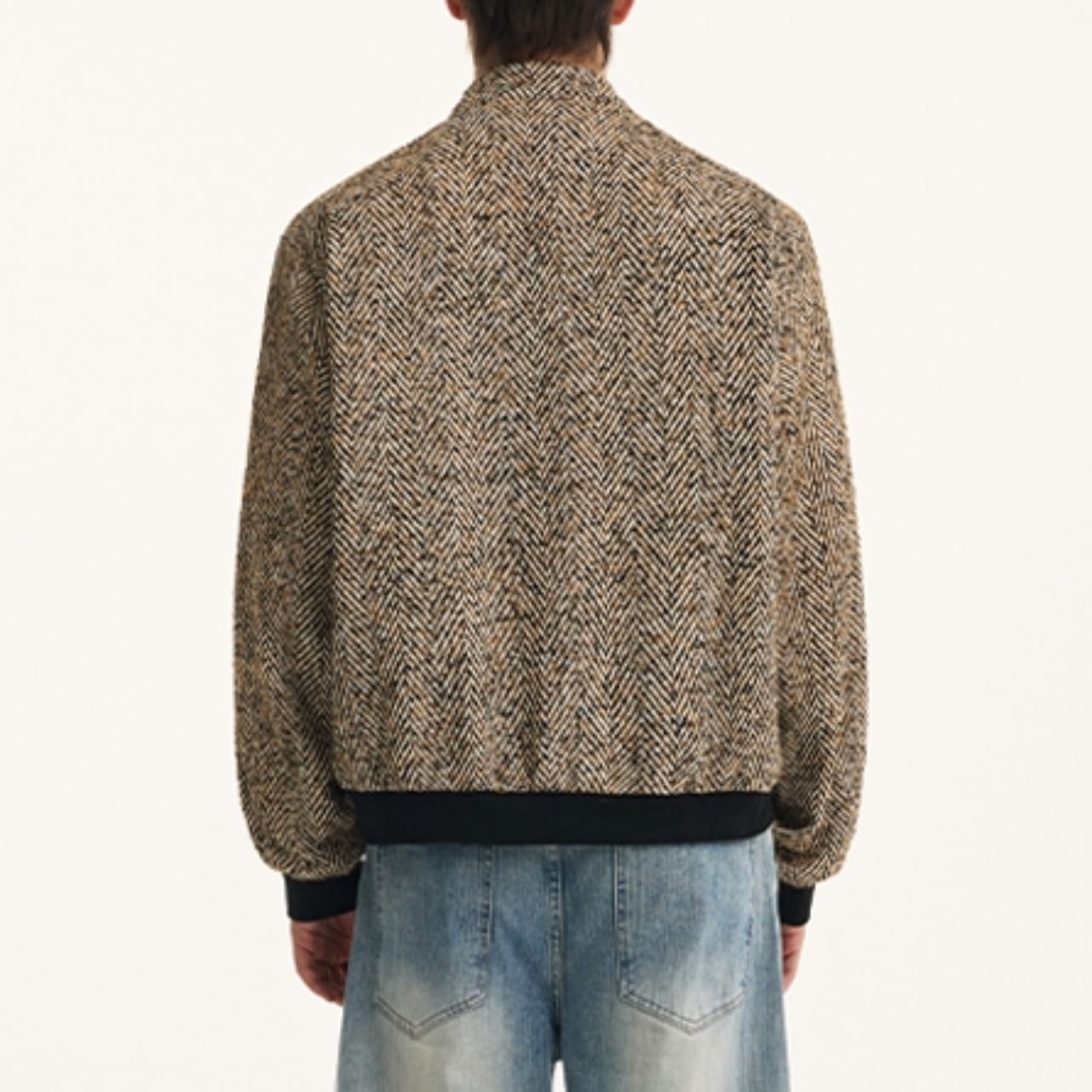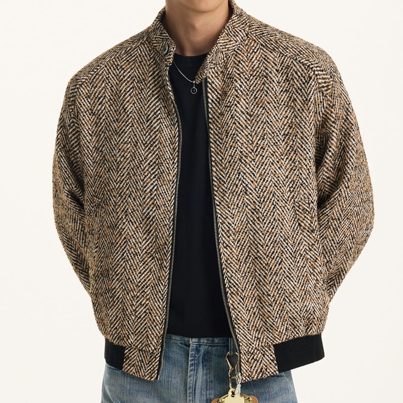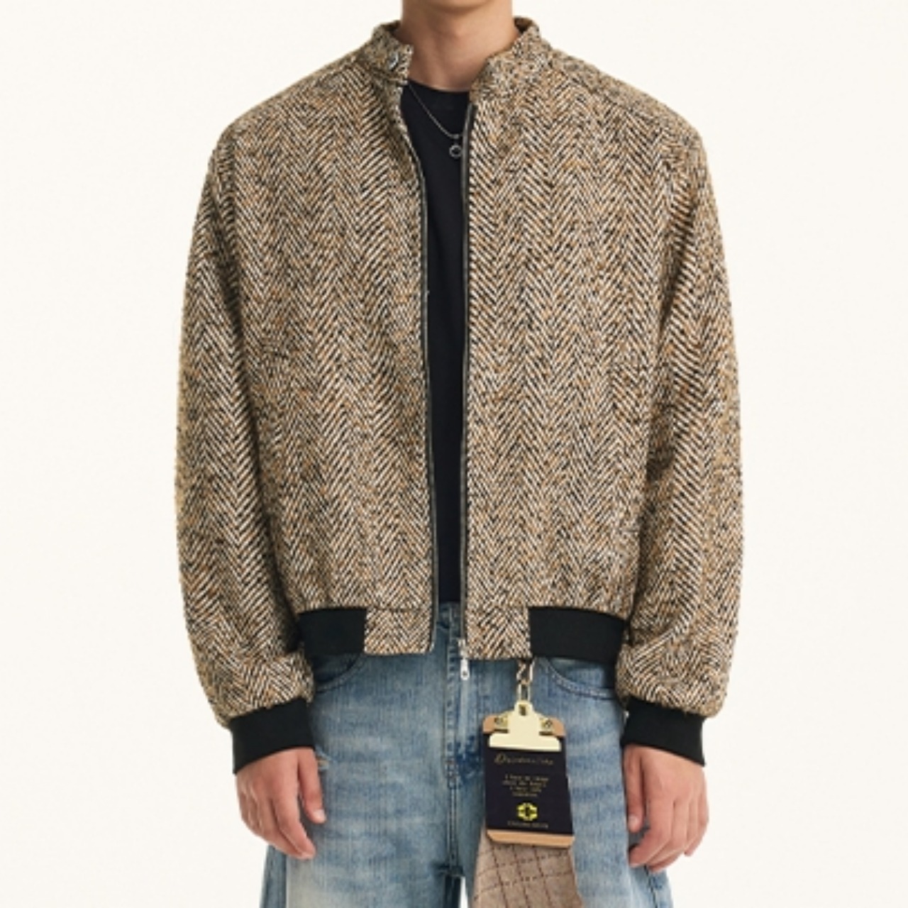 ざっくりとしたヘリンボーン柄の生地が、アートを感じさせるクラシックなブルゾン