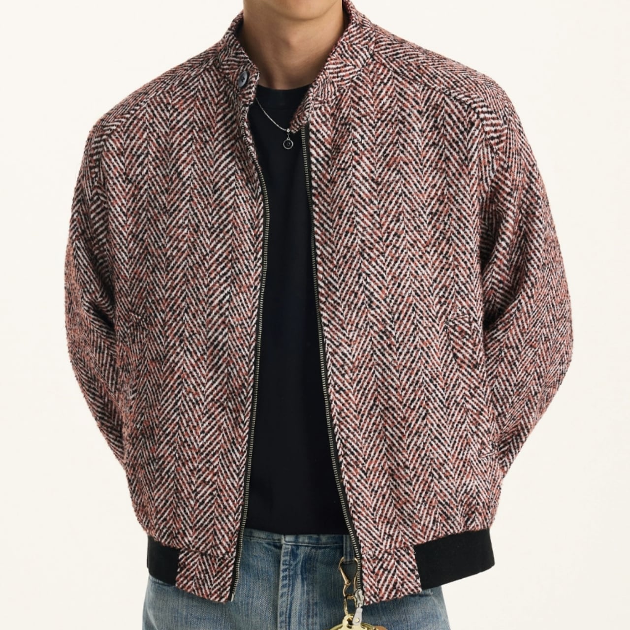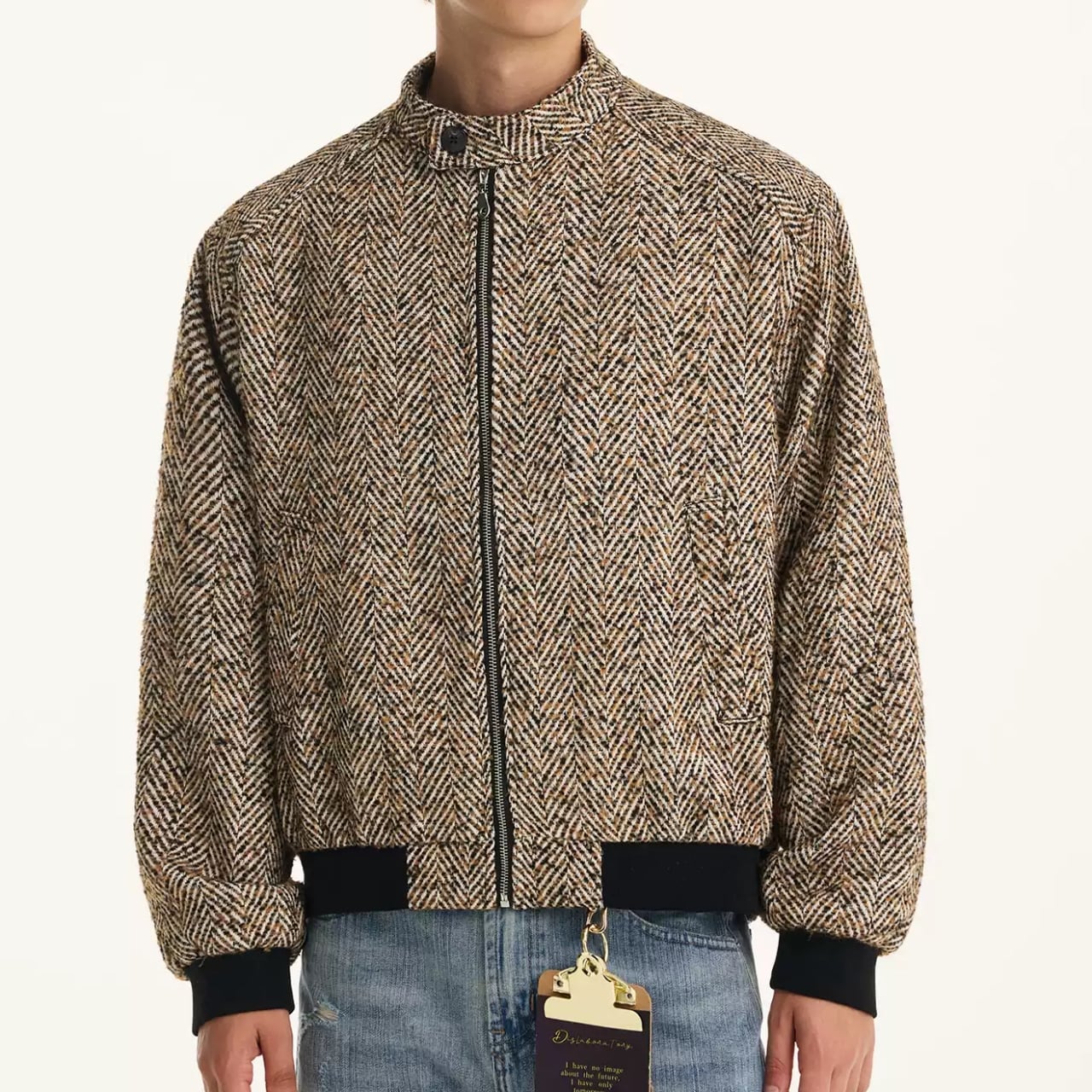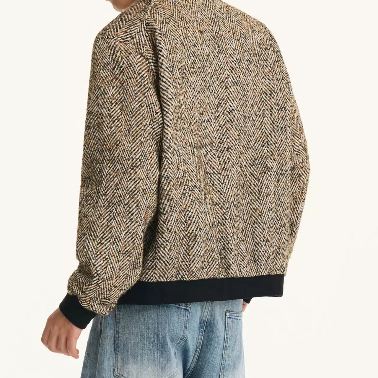 ざっくりとしたヘリンボーン柄の生地が、アートを感じさせるクラシックなブルゾン