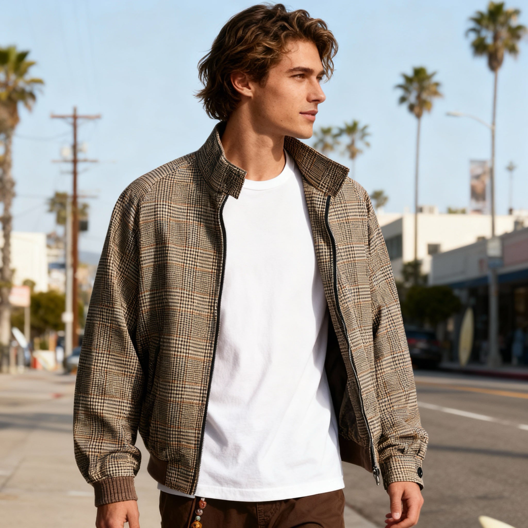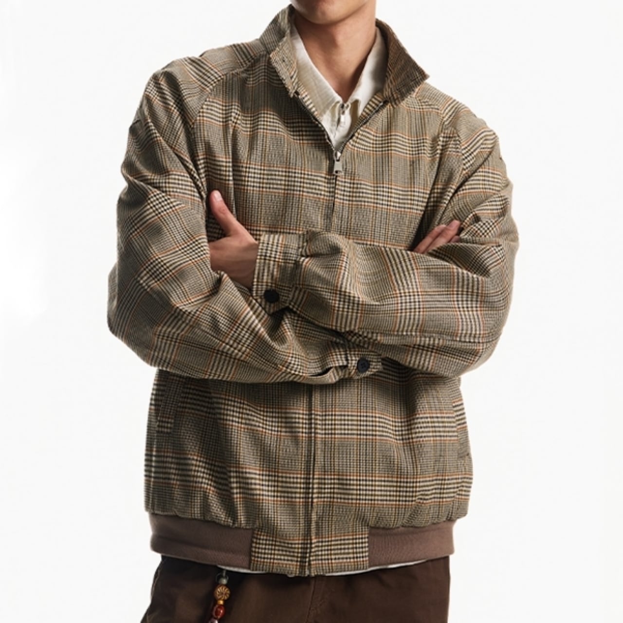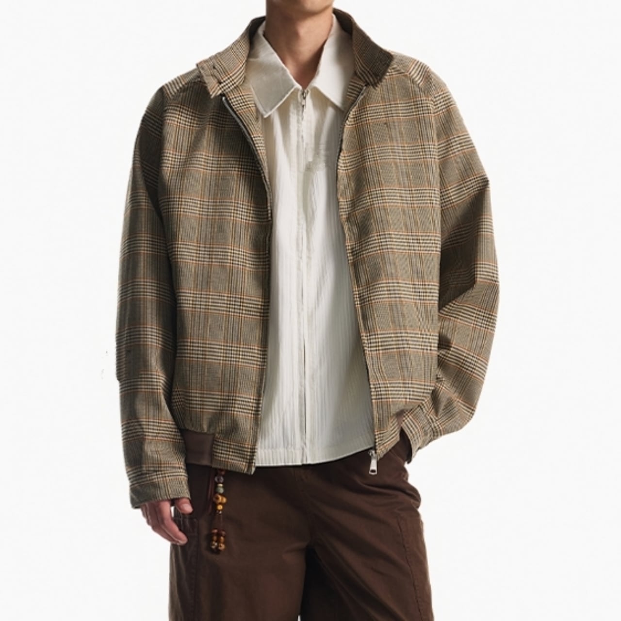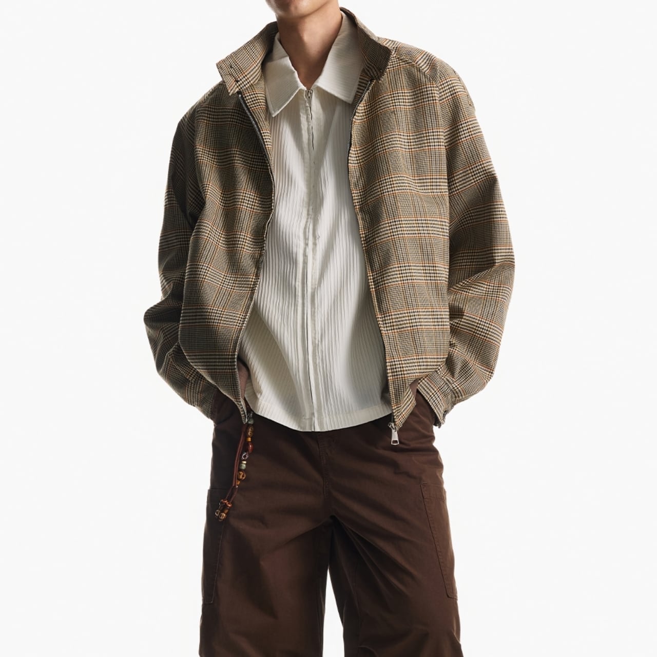 英国トラッドを思わせる上品なチェック柄が、知的なムードを醸し出すブルゾン