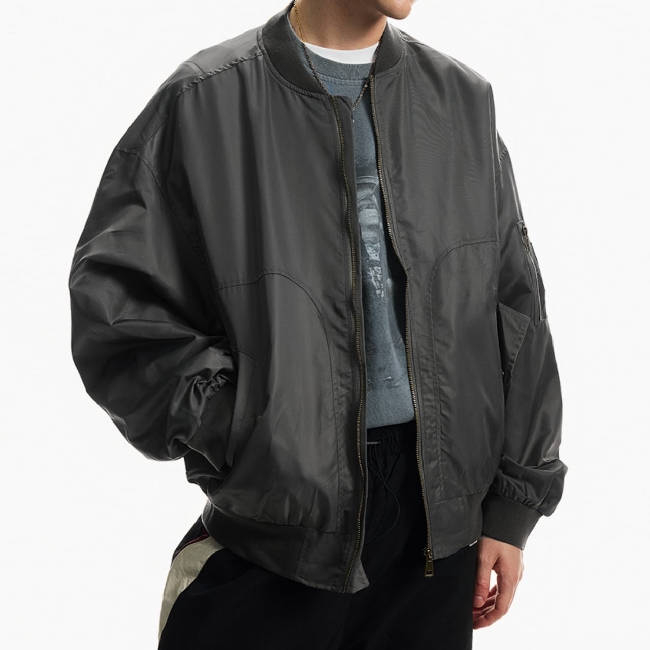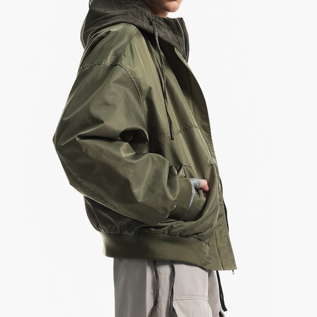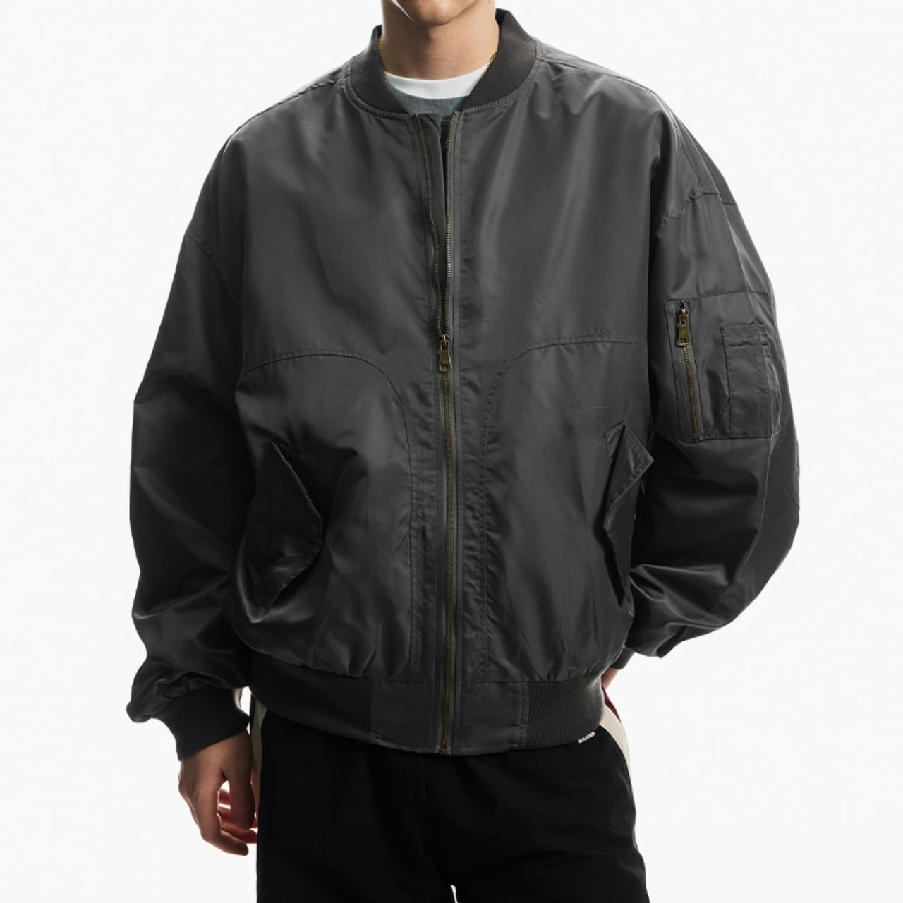 リラックス感のあるオーバーサイズシルエットが魅力の、ミリタリーテイストなボンバージャケット