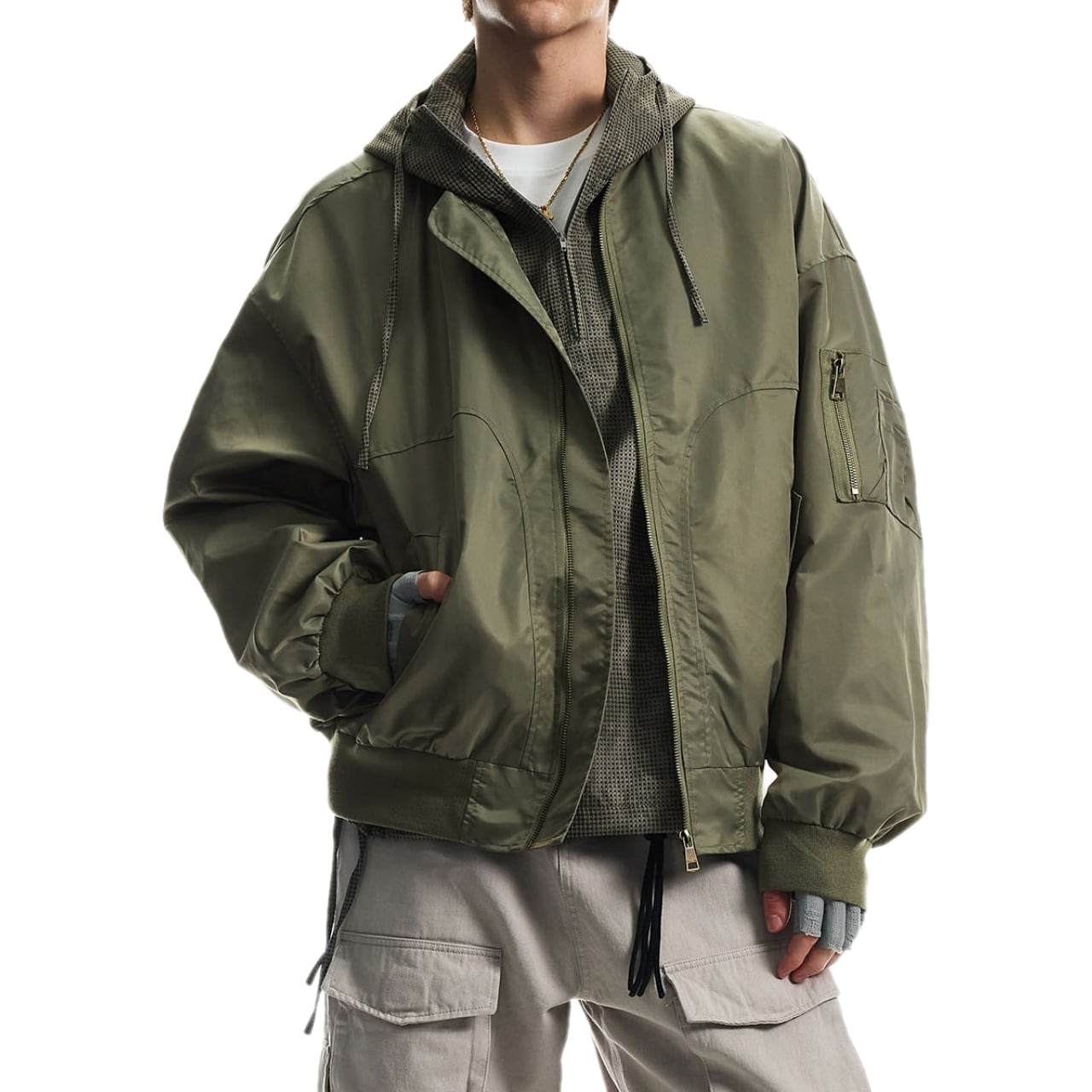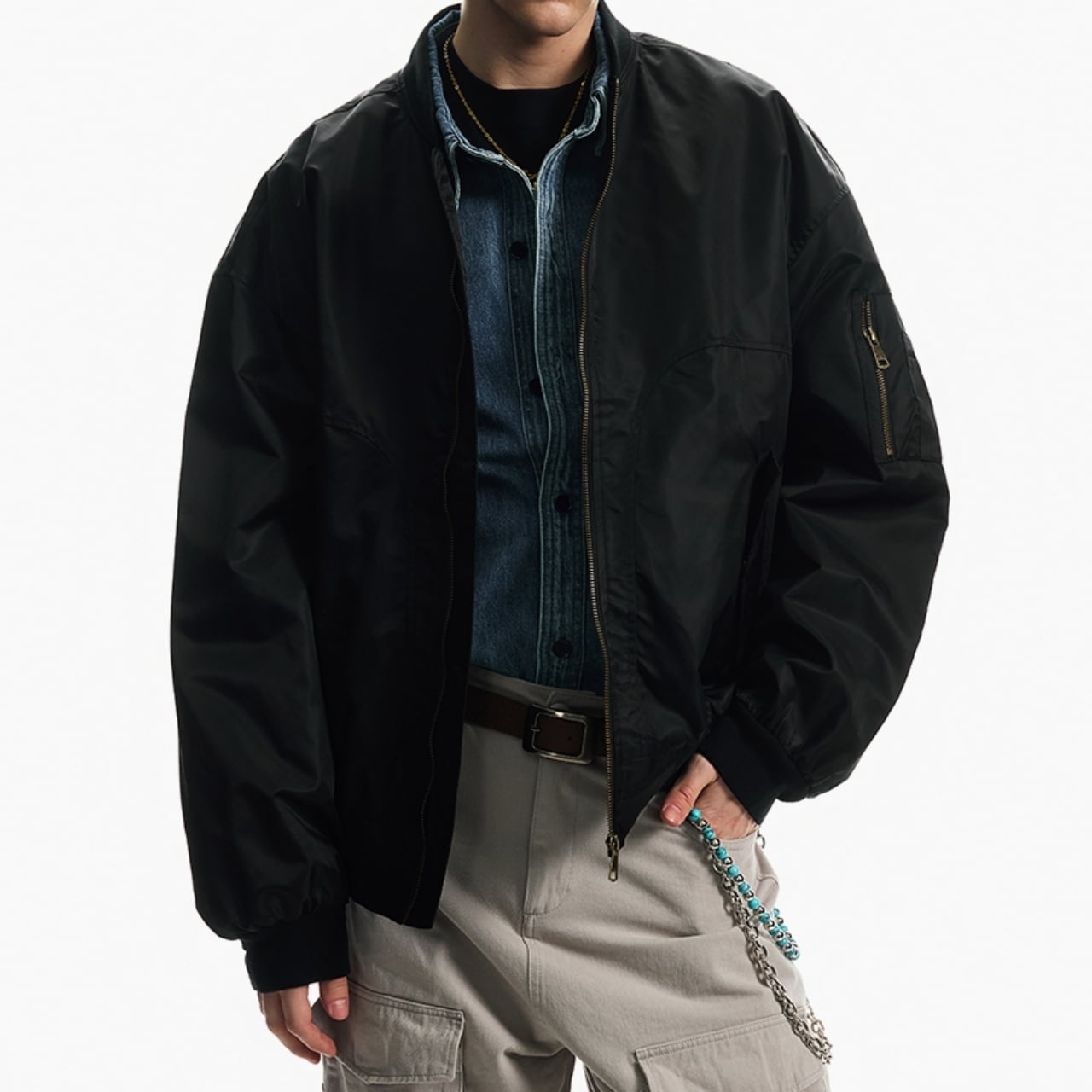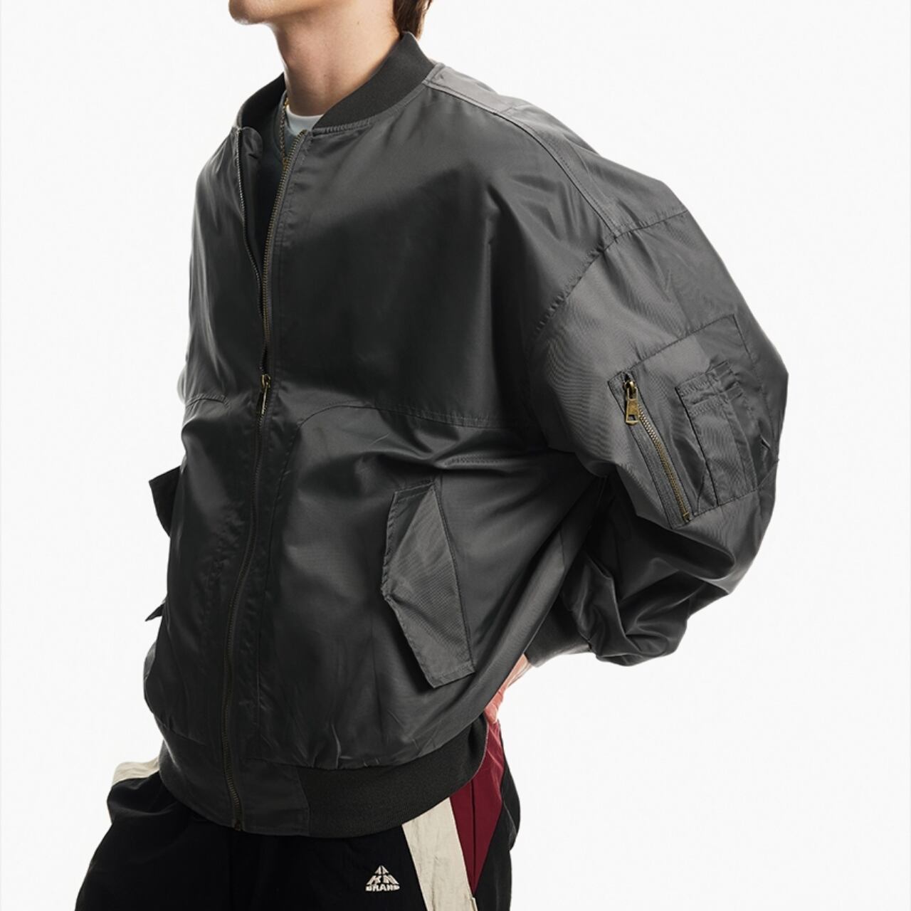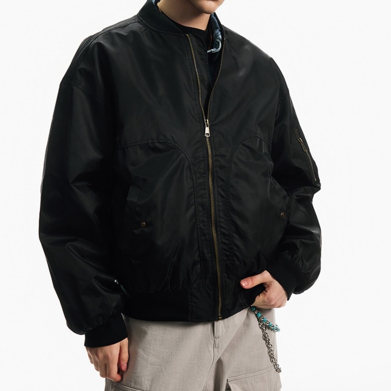 リラックス感のあるオーバーサイズシルエットが魅力の、ミリタリーテイストなボンバージャケット
