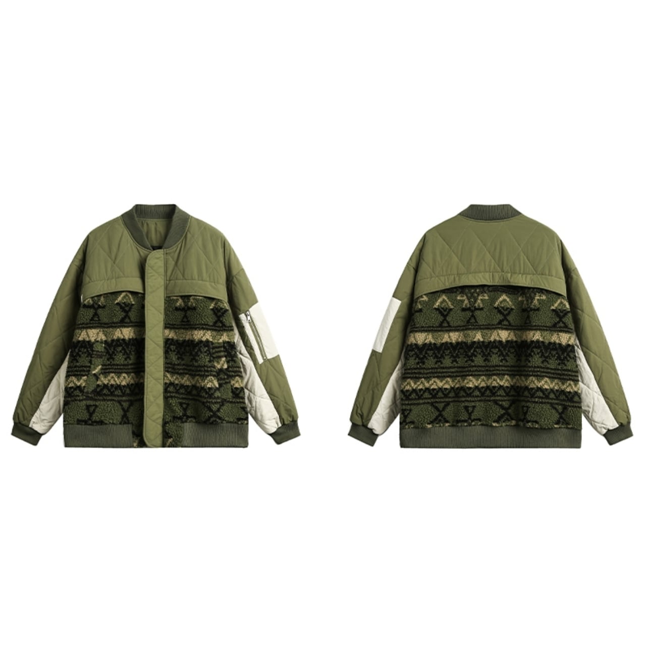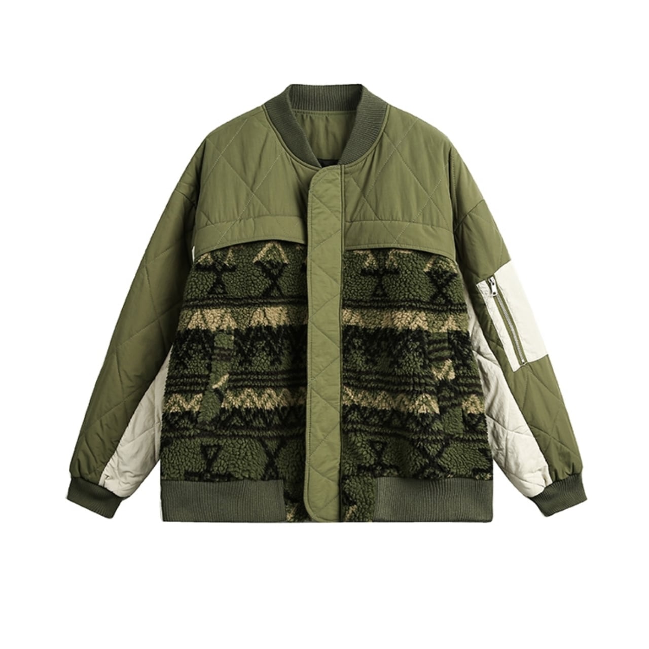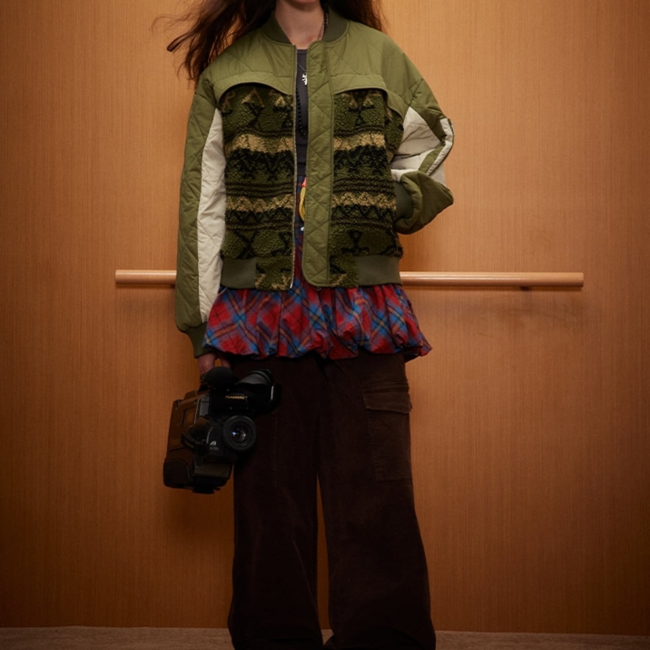 フリーダムなアートを纏う。 キルティング、ボア素材、そして個性的なネイティブ柄を大胆にミックスしたハイブリッド・ジャケット。