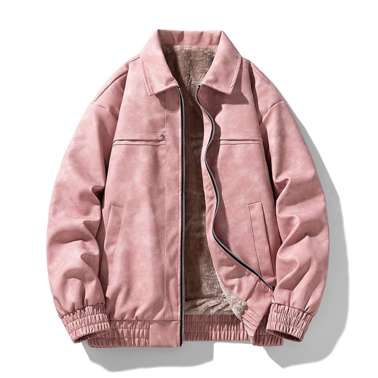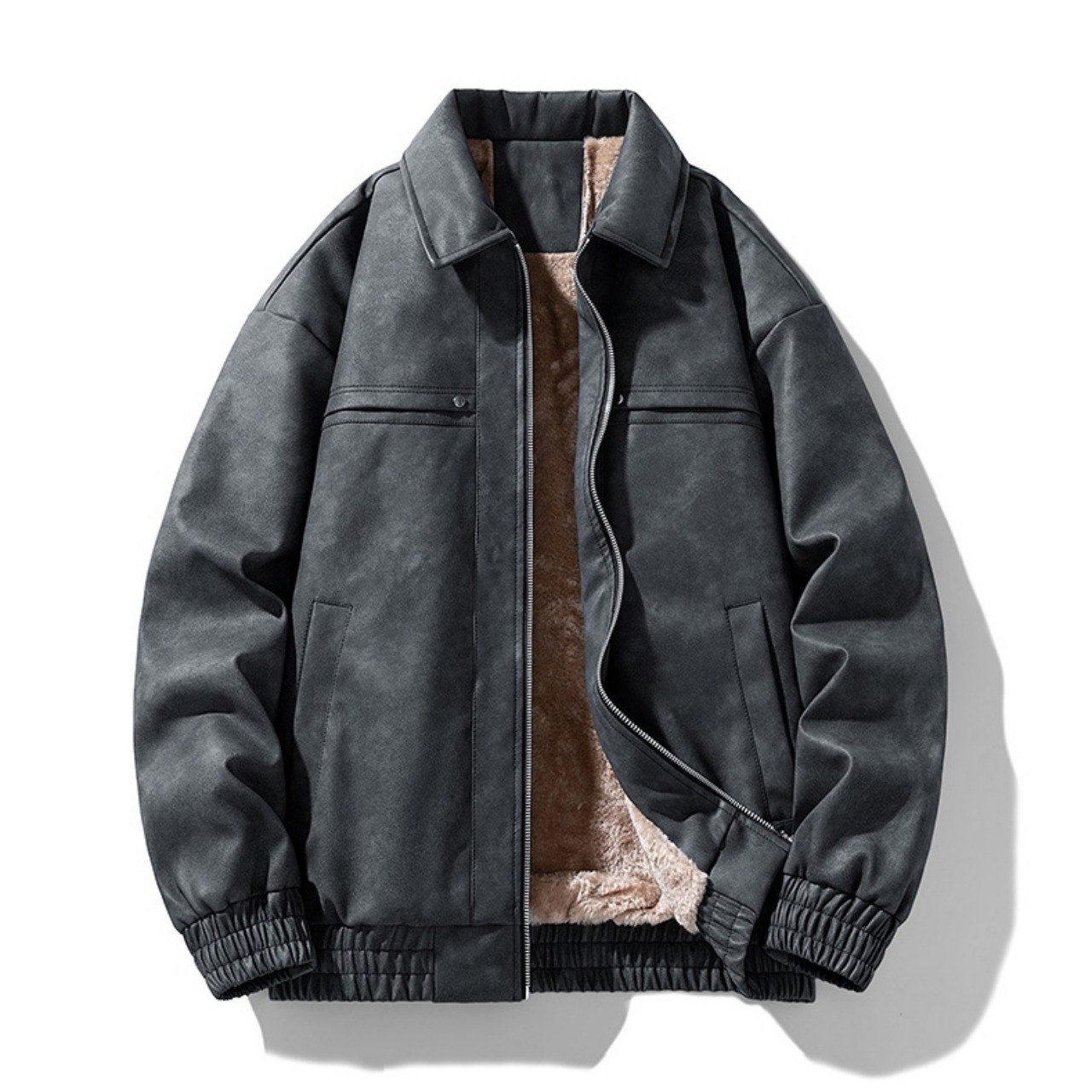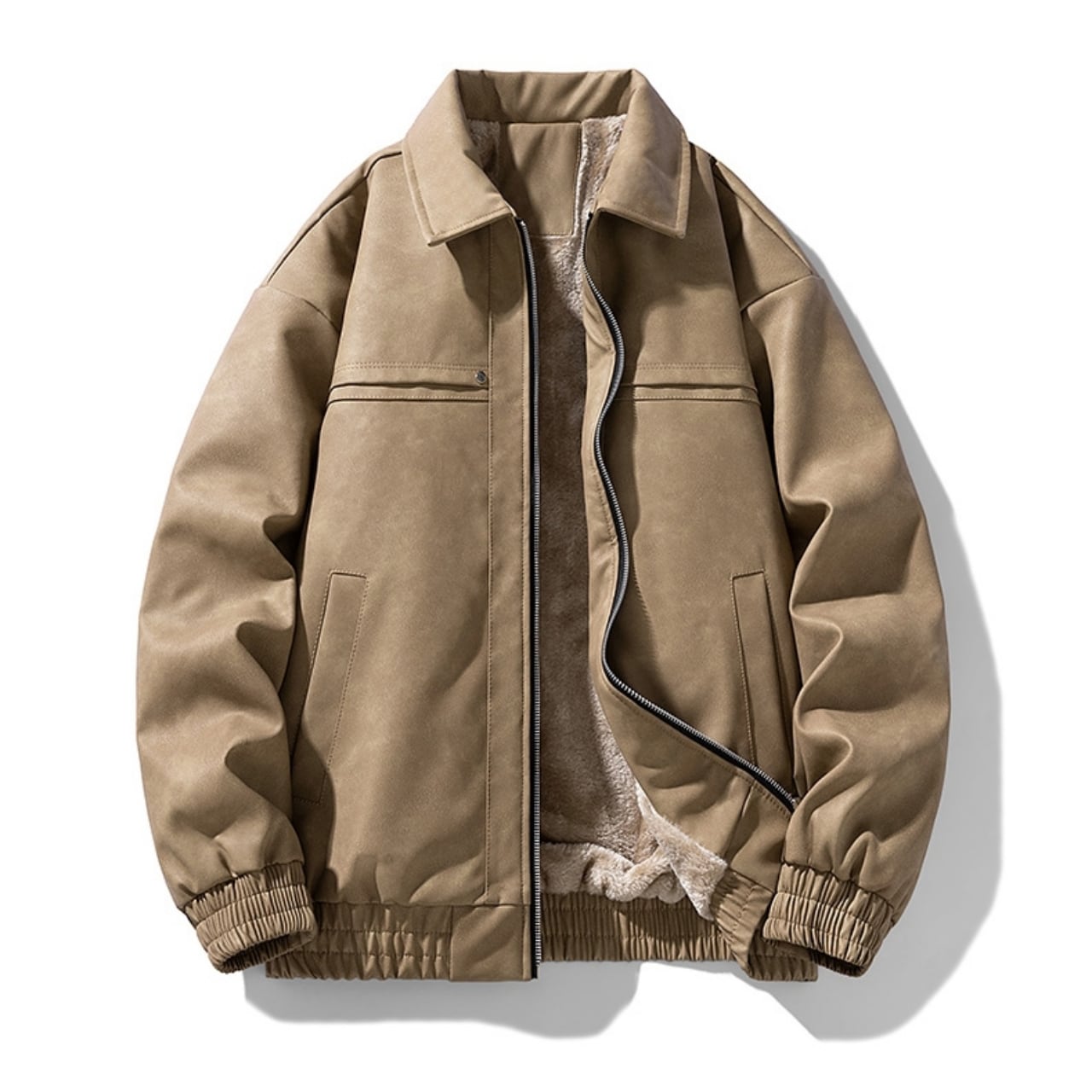 Zip-Up Shirt Color Fleece-lined Jacket S0119