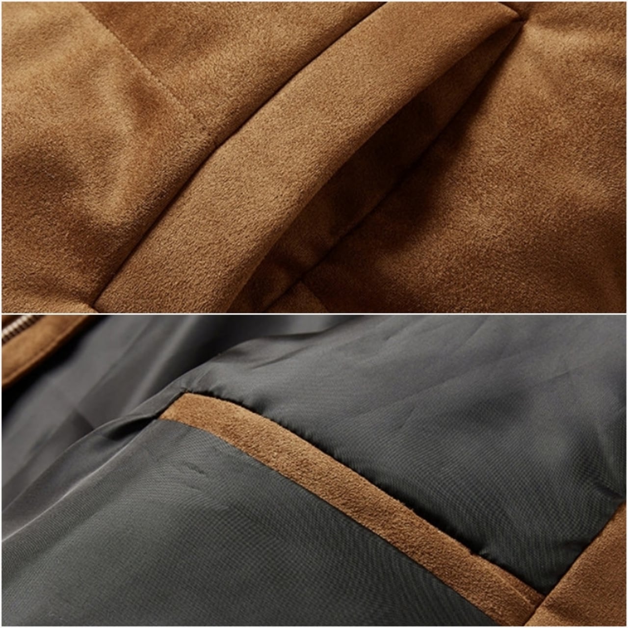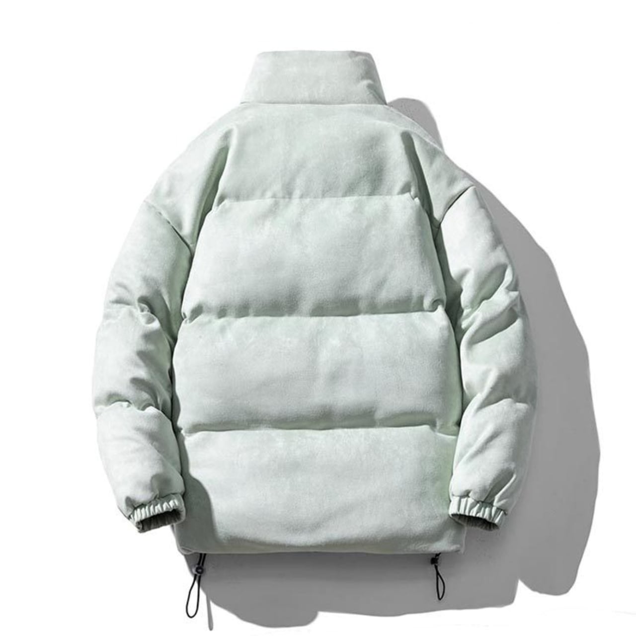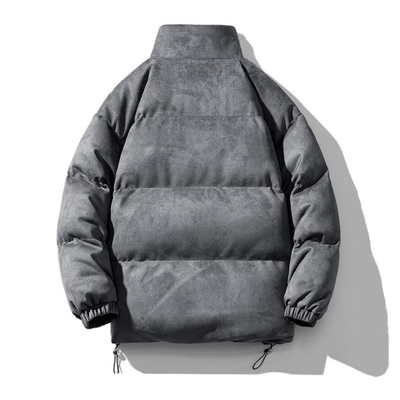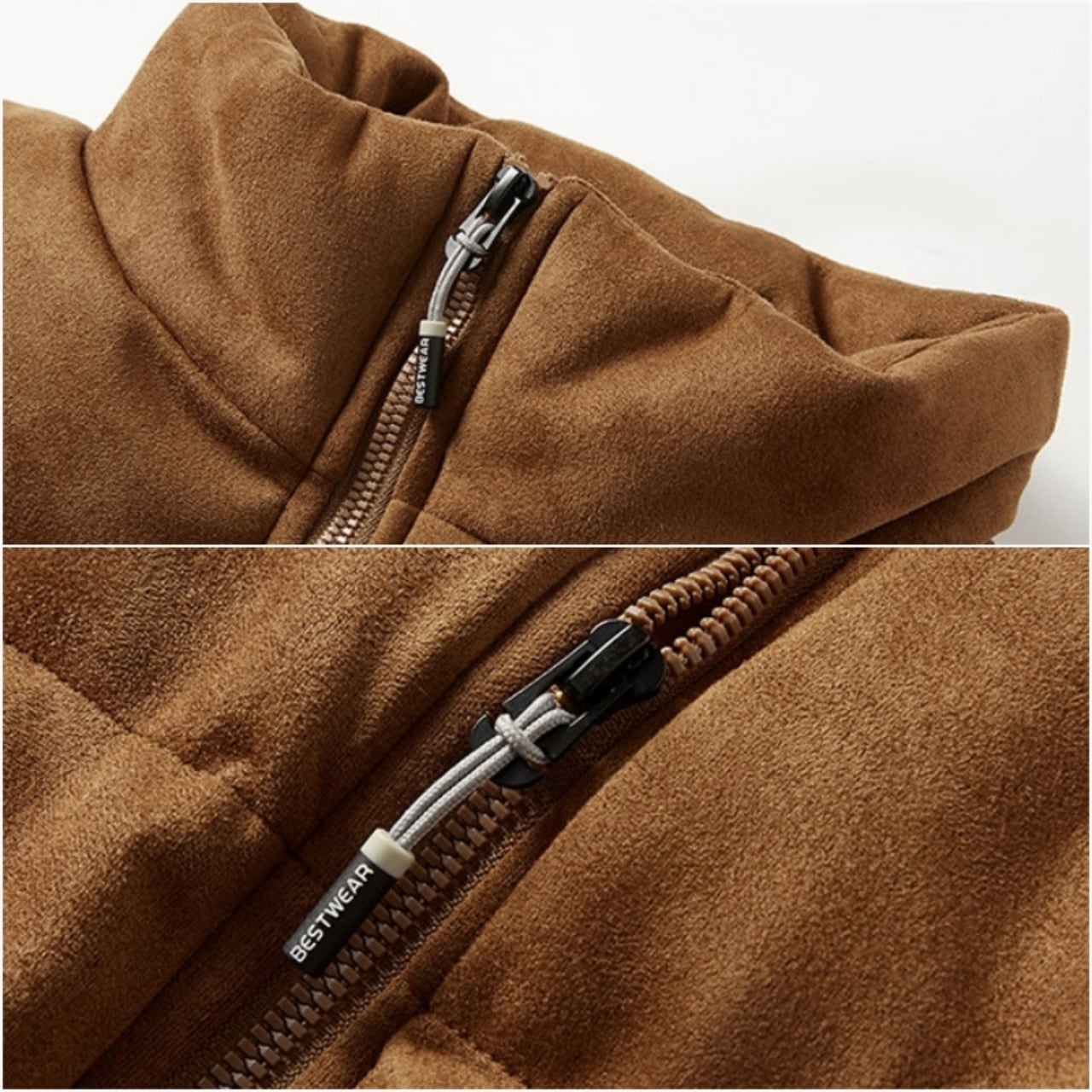 スエード調のマットな質感が、穏やかな冬の街並みや海辺の景色に溶け込む一着です。