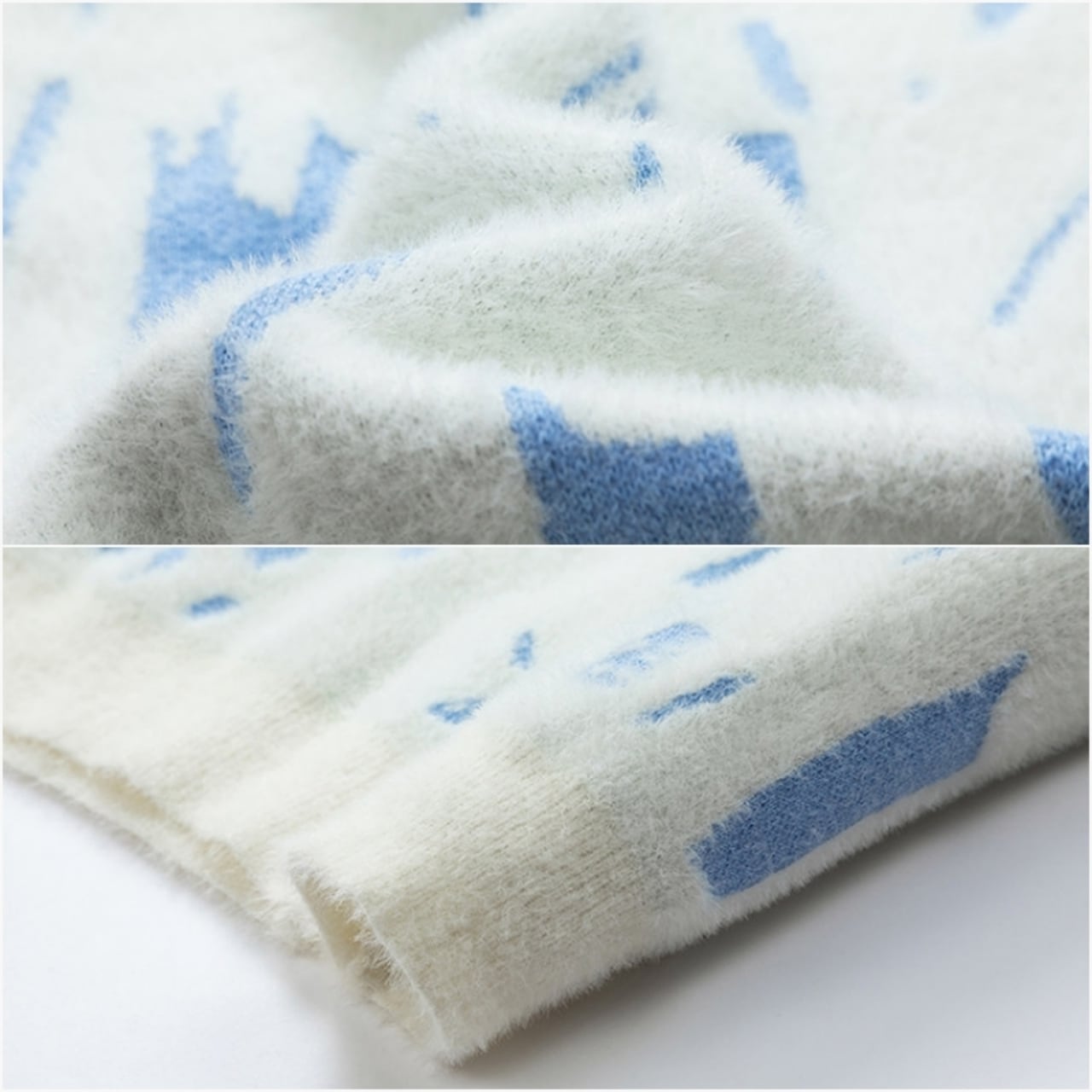 海面を漂う泡や波のしぶきを抽象的なアートに落とし込んだ、表情豊かな風合いが魅力のニット。