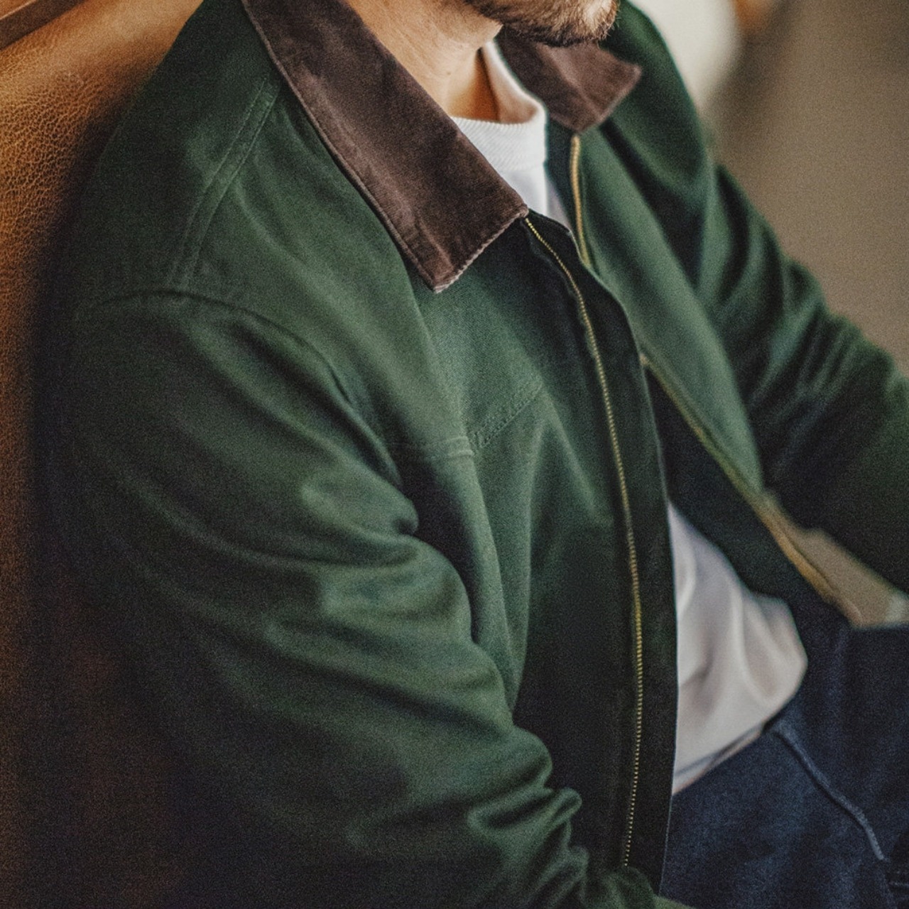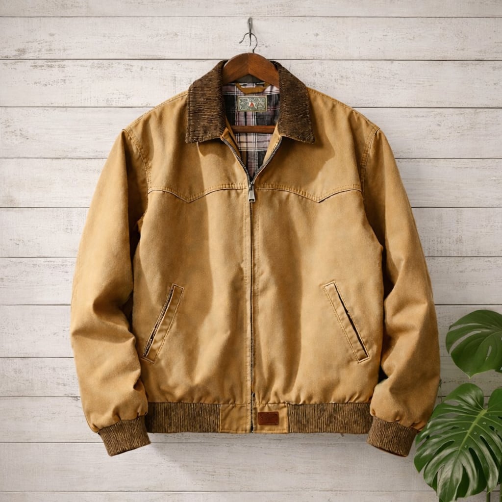 襟元は異素材で切り替えられ、内側のチェック柄の裏地がさりげないおしゃれな一着。