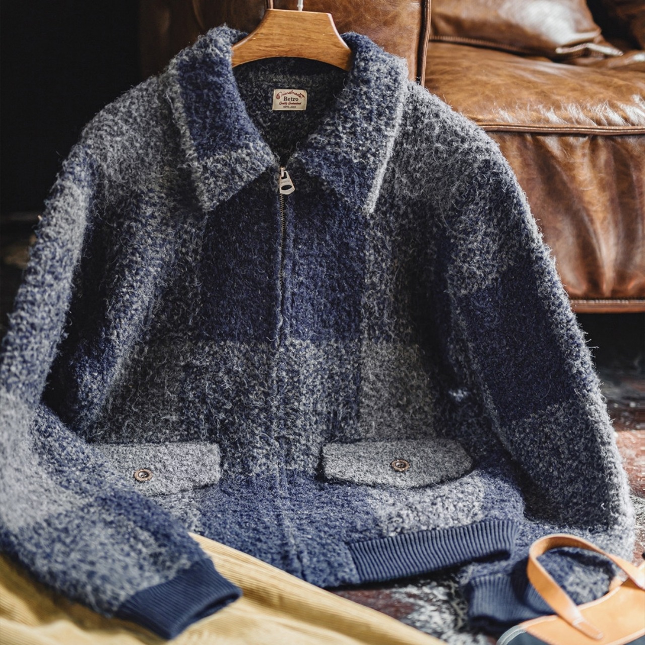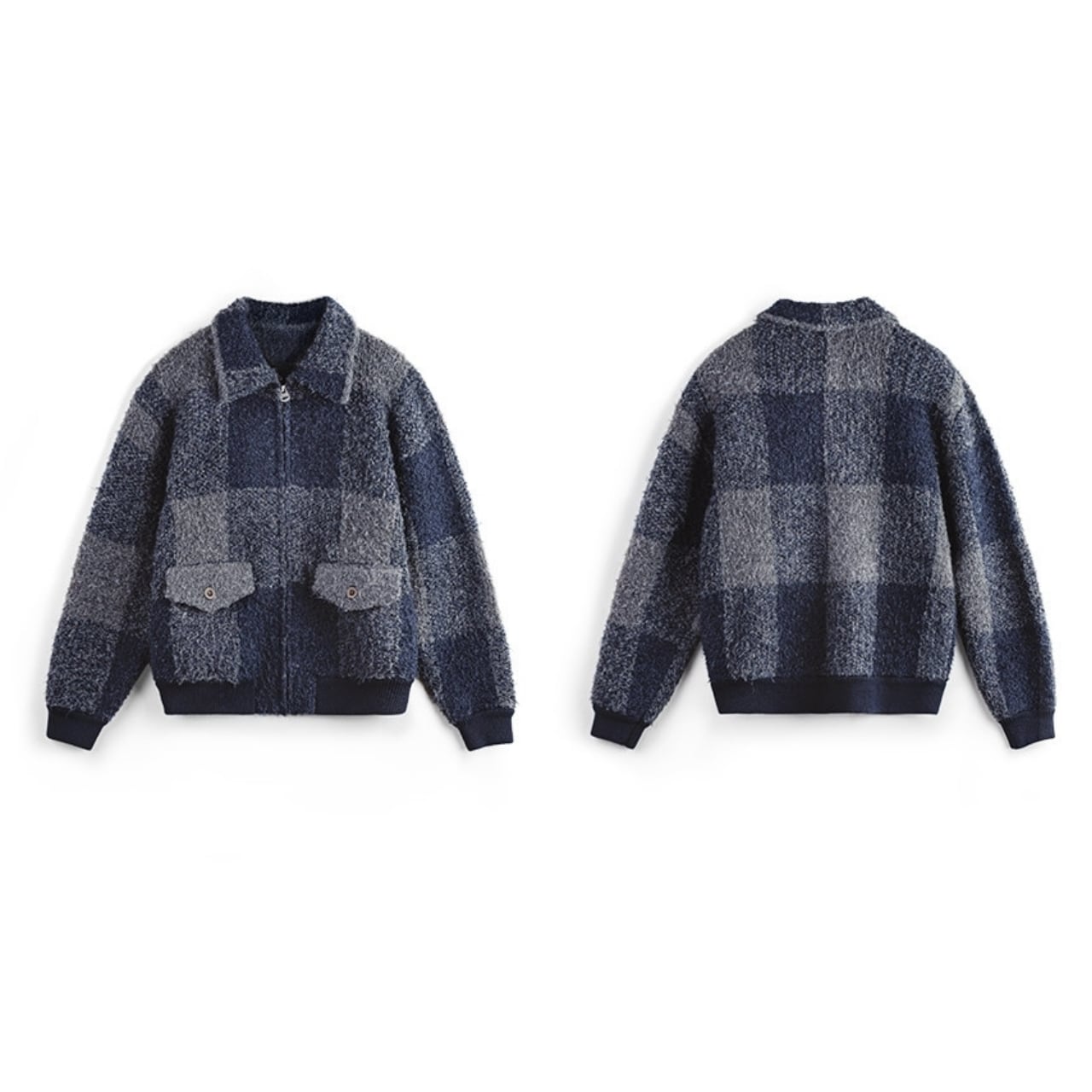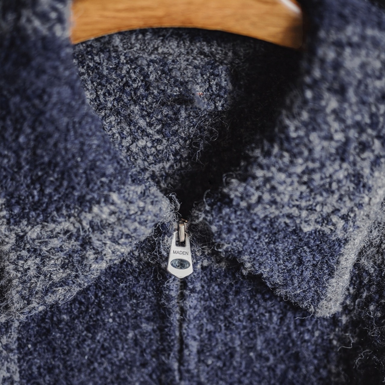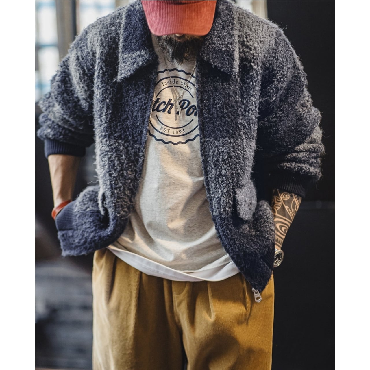 襟付きのジップアップ仕様に、フラップ付きのポケットがデザインのアクセントになっています。