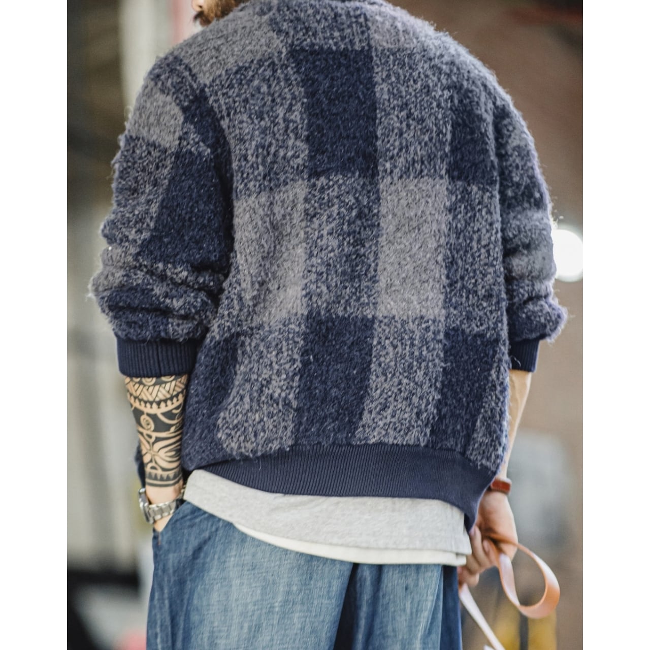 大きなチェック柄の切り替えが目を引く、存在感のあるシルエット。
