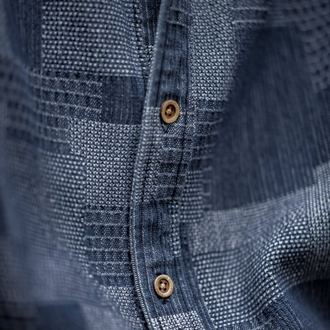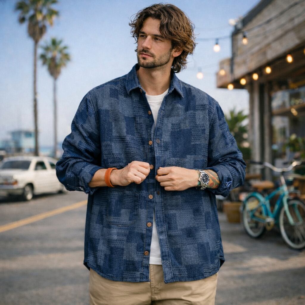 フロントのパッチポケットや襟付きのスタンダードな形状が特徴です。