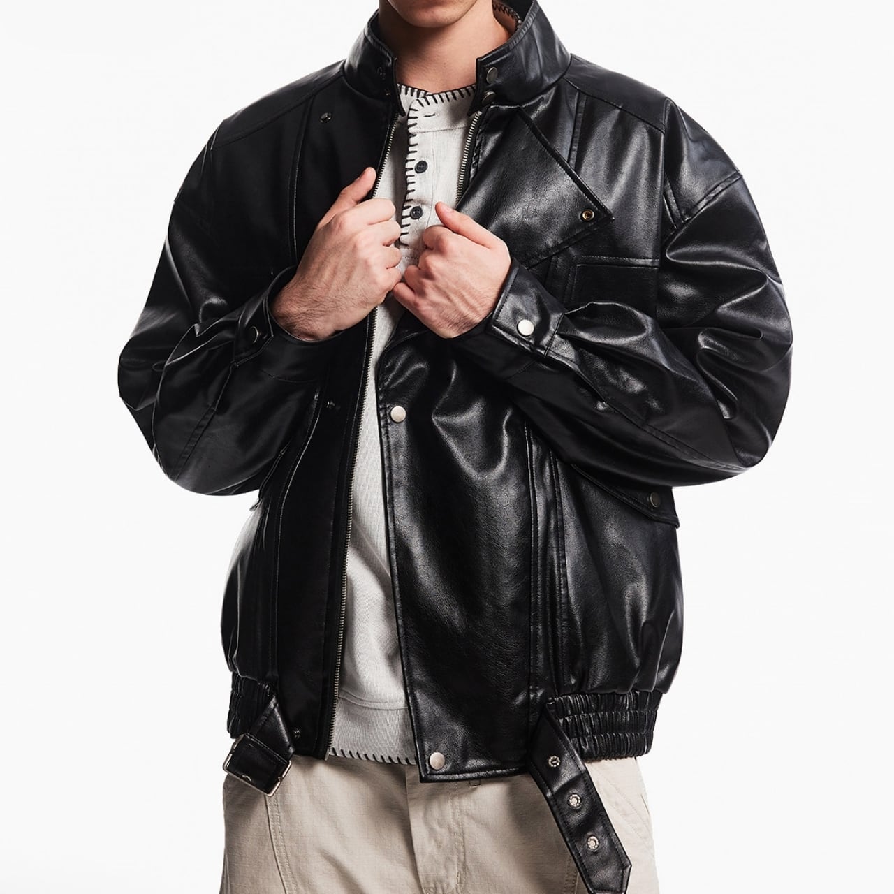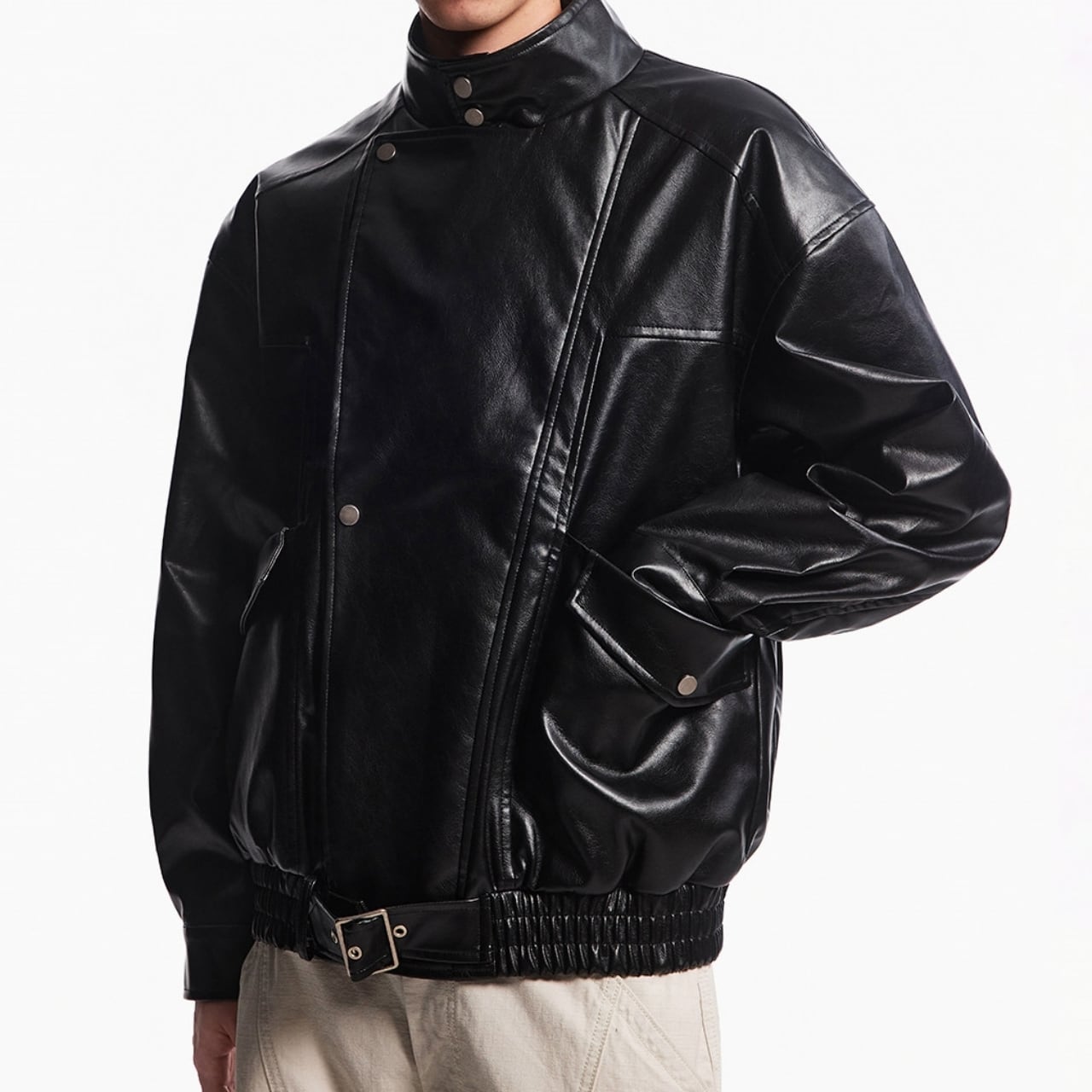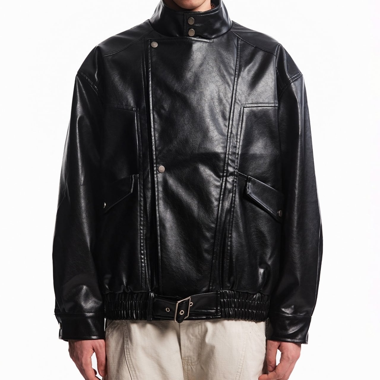 切り替えパネルのデザインに、スタンドカラーと裾のベルトが目を惹きます。