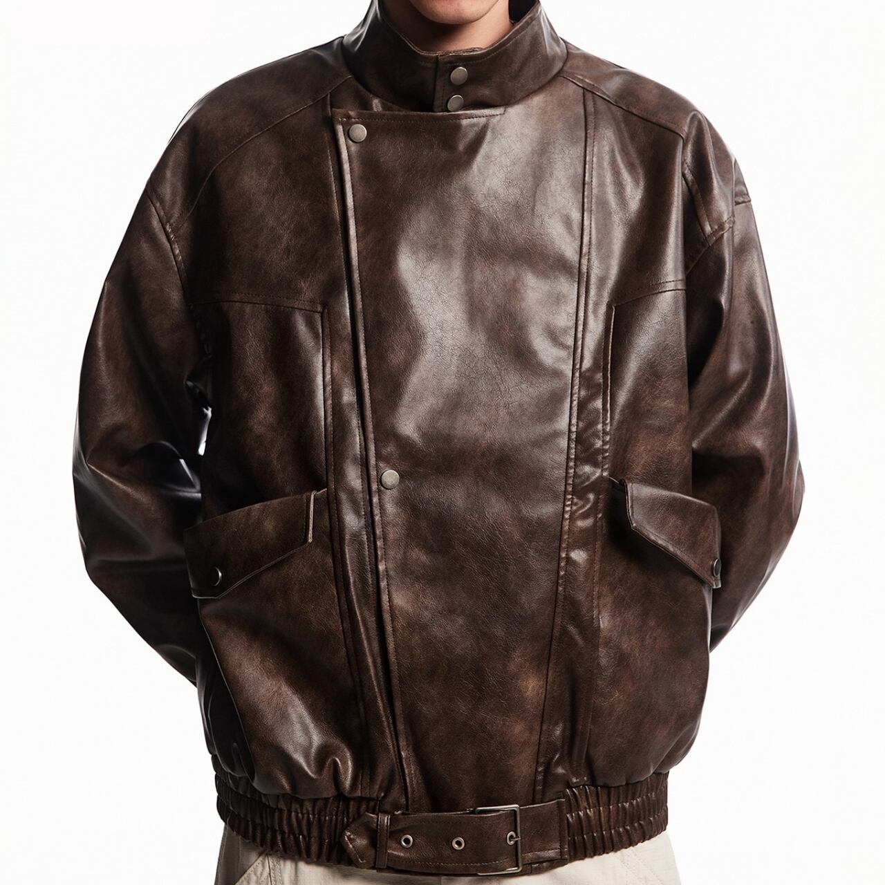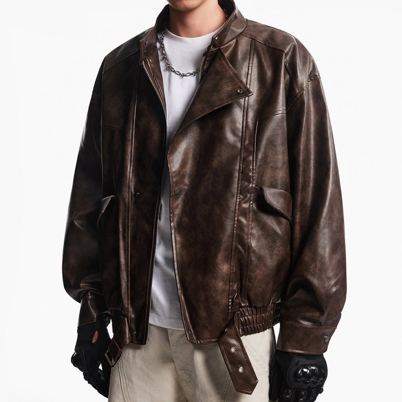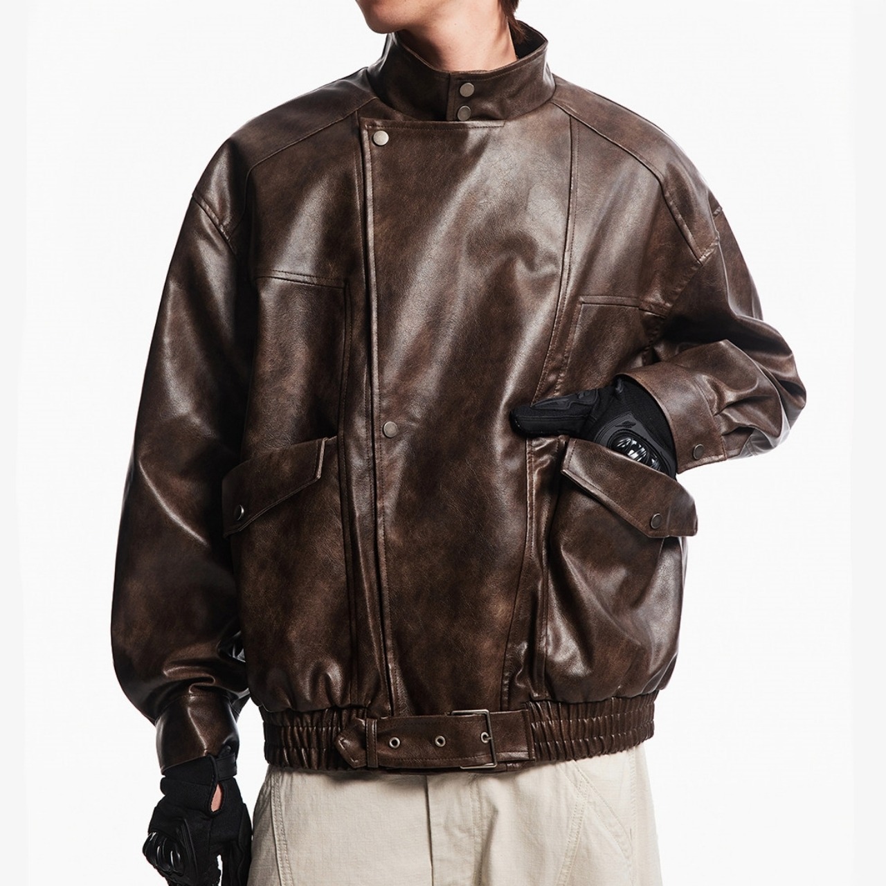 切り替えパネルのデザインに、スタンドカラーと裾のベルトが目を惹きます。