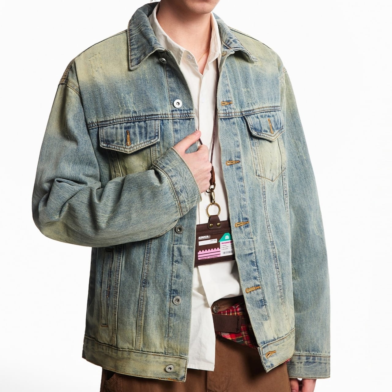 全体に擦れやアタリを加えた加工感のある表情で、ゆとりのあるシルエットに仕上げています。