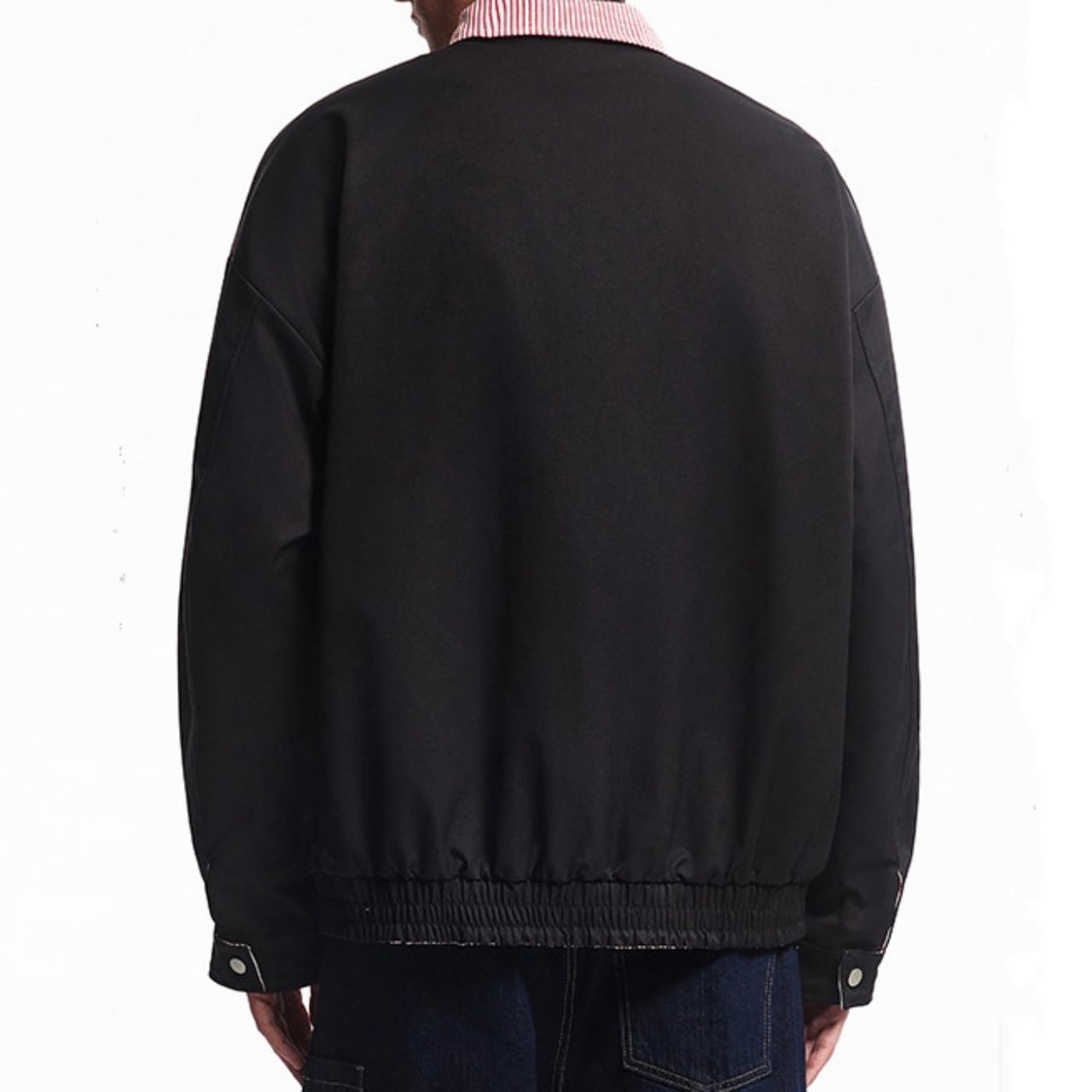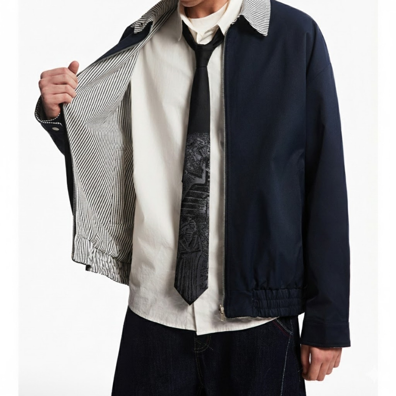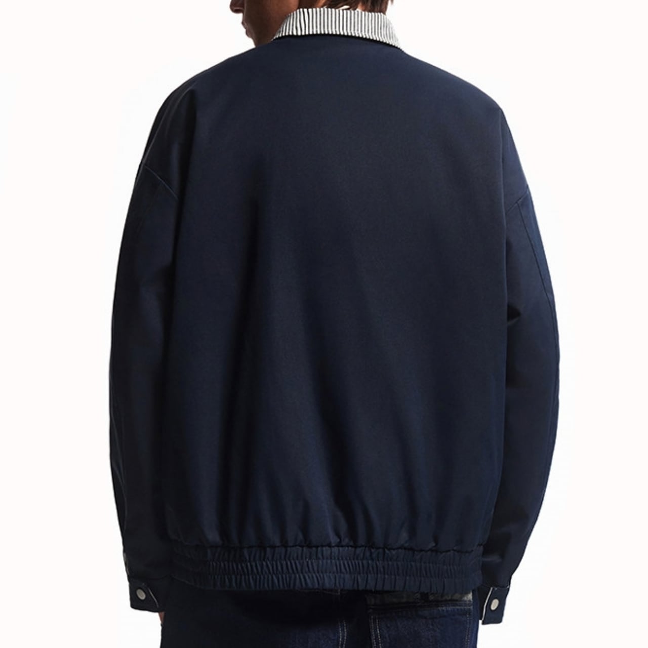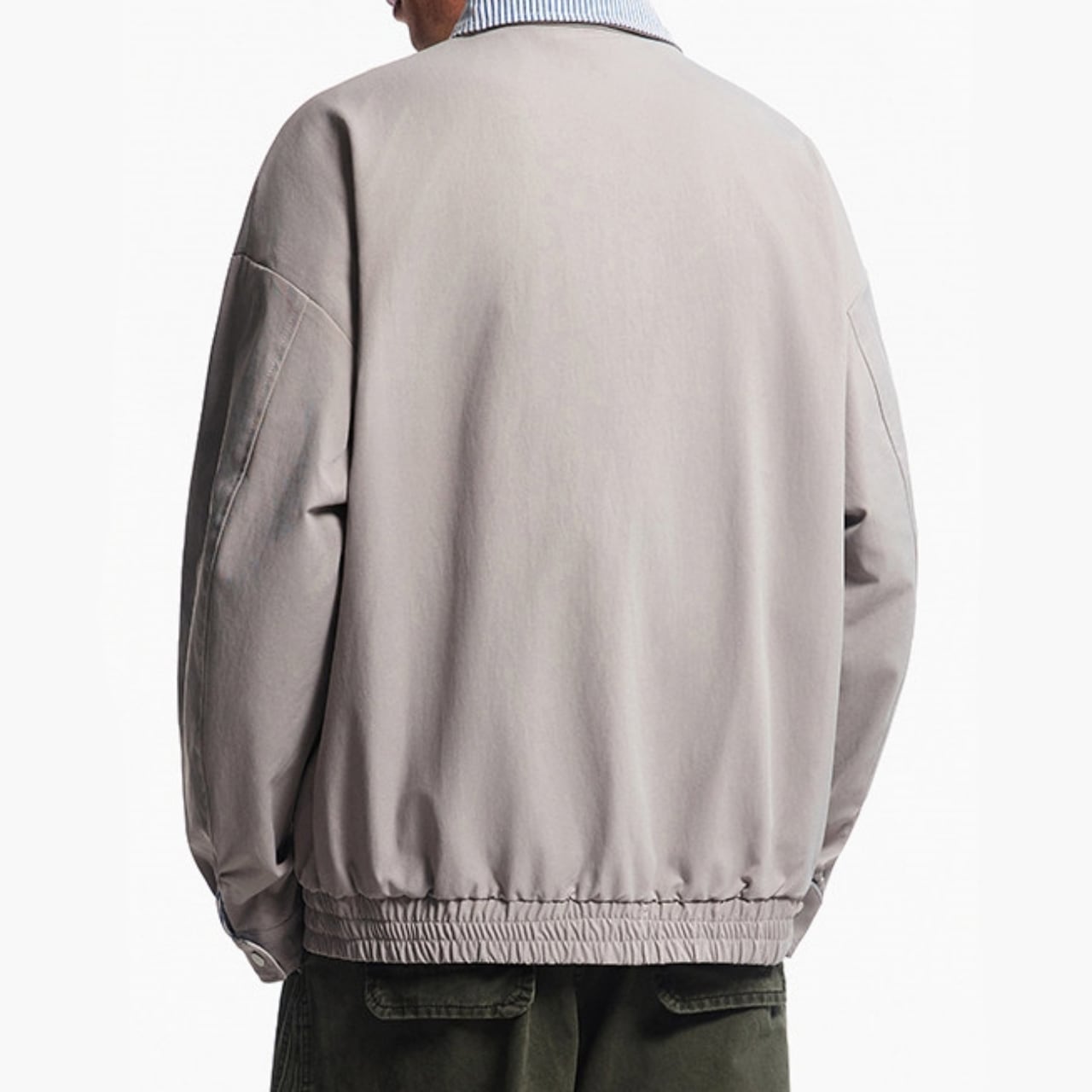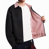 裏地にアクセントカラーのストライプ柄を配した、襟付きのシルエットが特徴です。