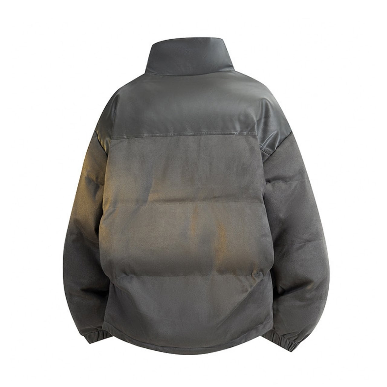 ボリューム感のある立ち襟と、スッキリとした裾のデザインが特徴。