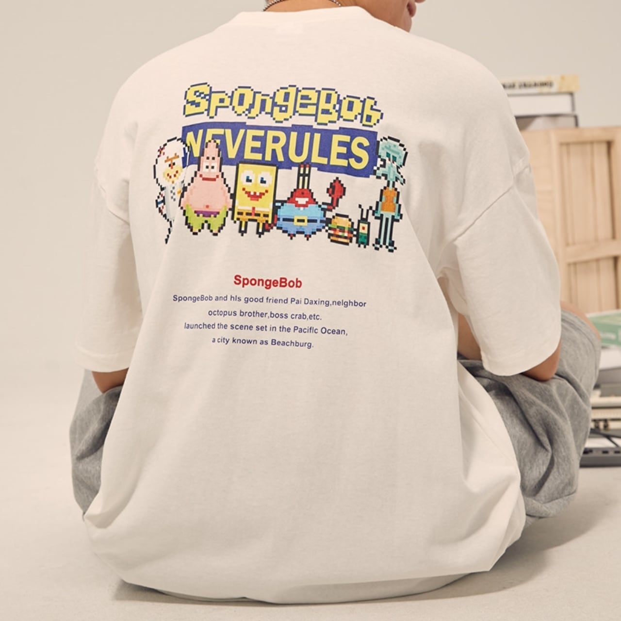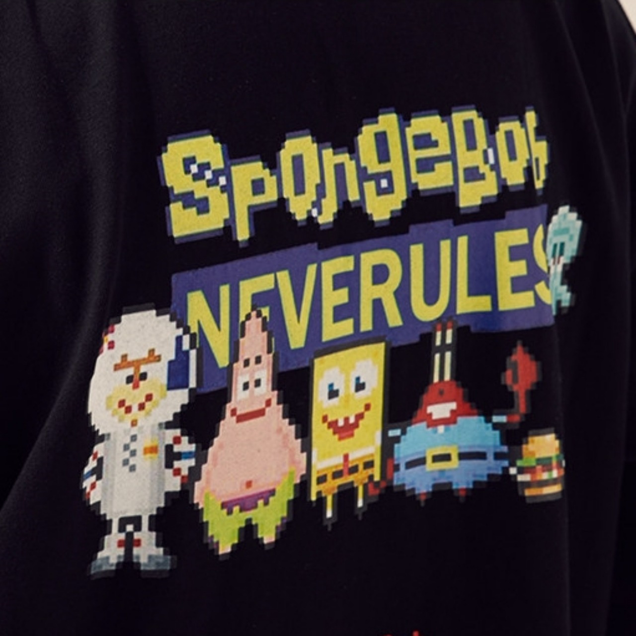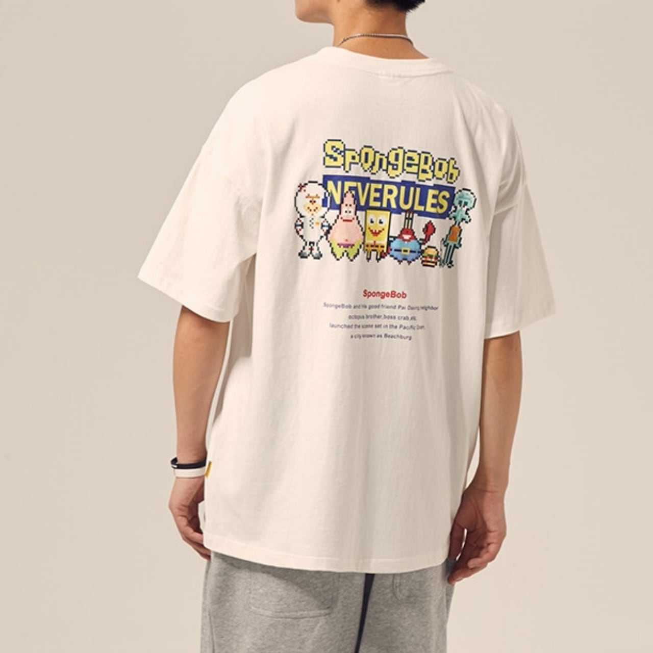 背面にドット絵風のキャラクターとロゴを配置した、遊び心のあるデザイン。