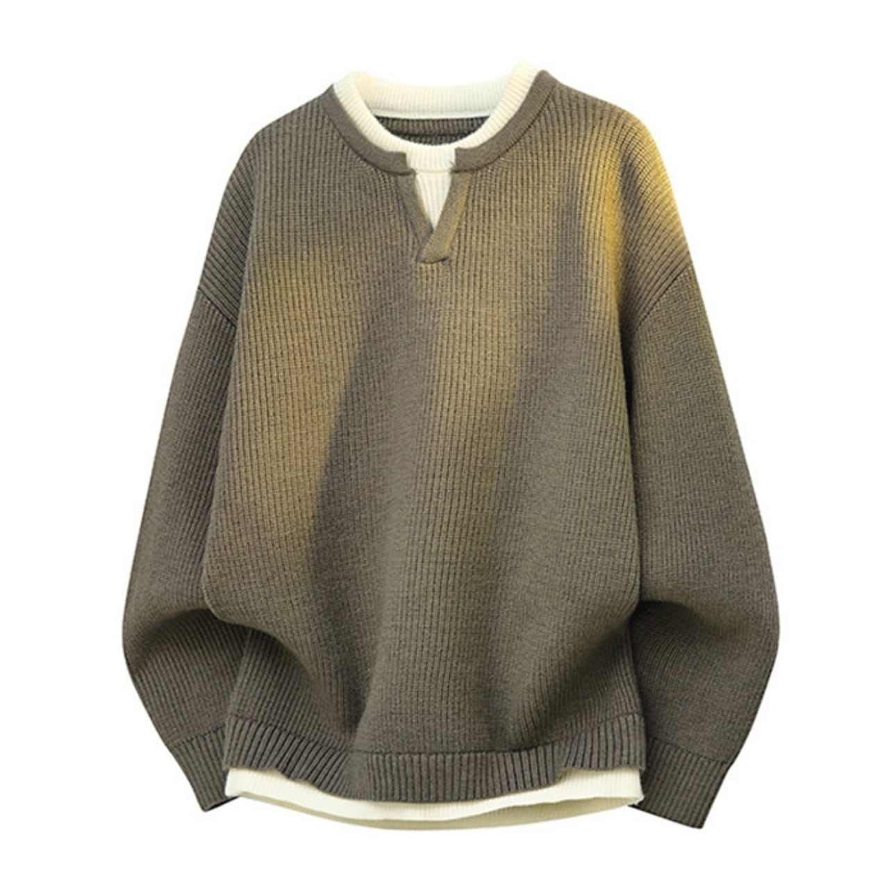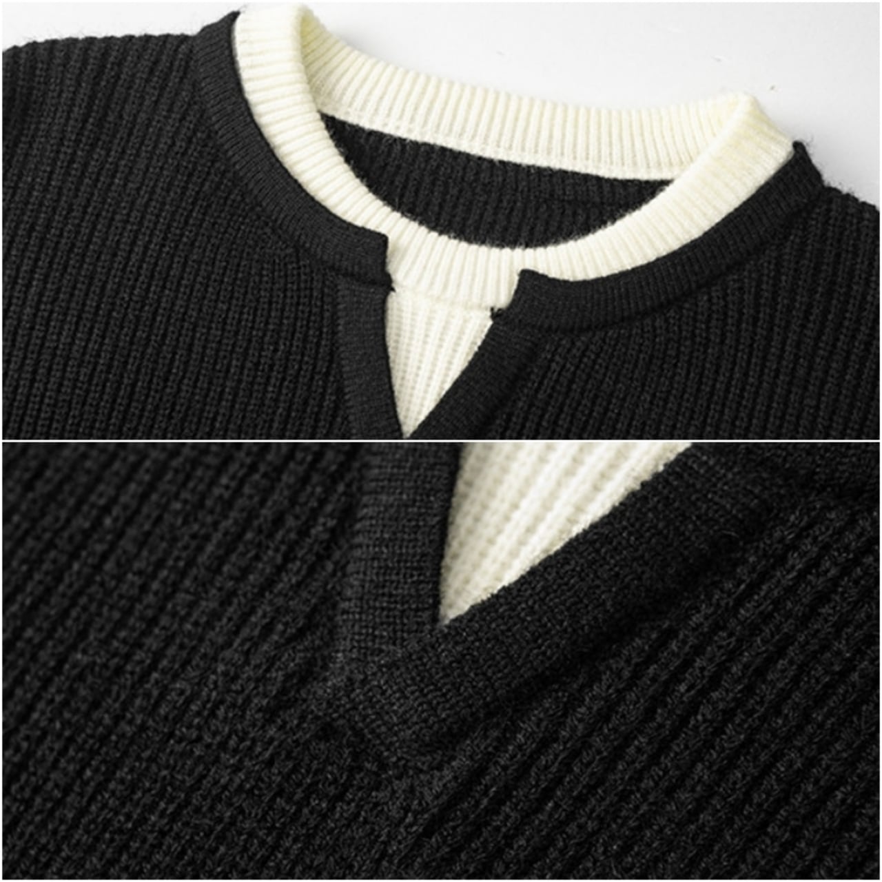 首元にスリットが入った、重ね着風のパネルデザインが特徴です。