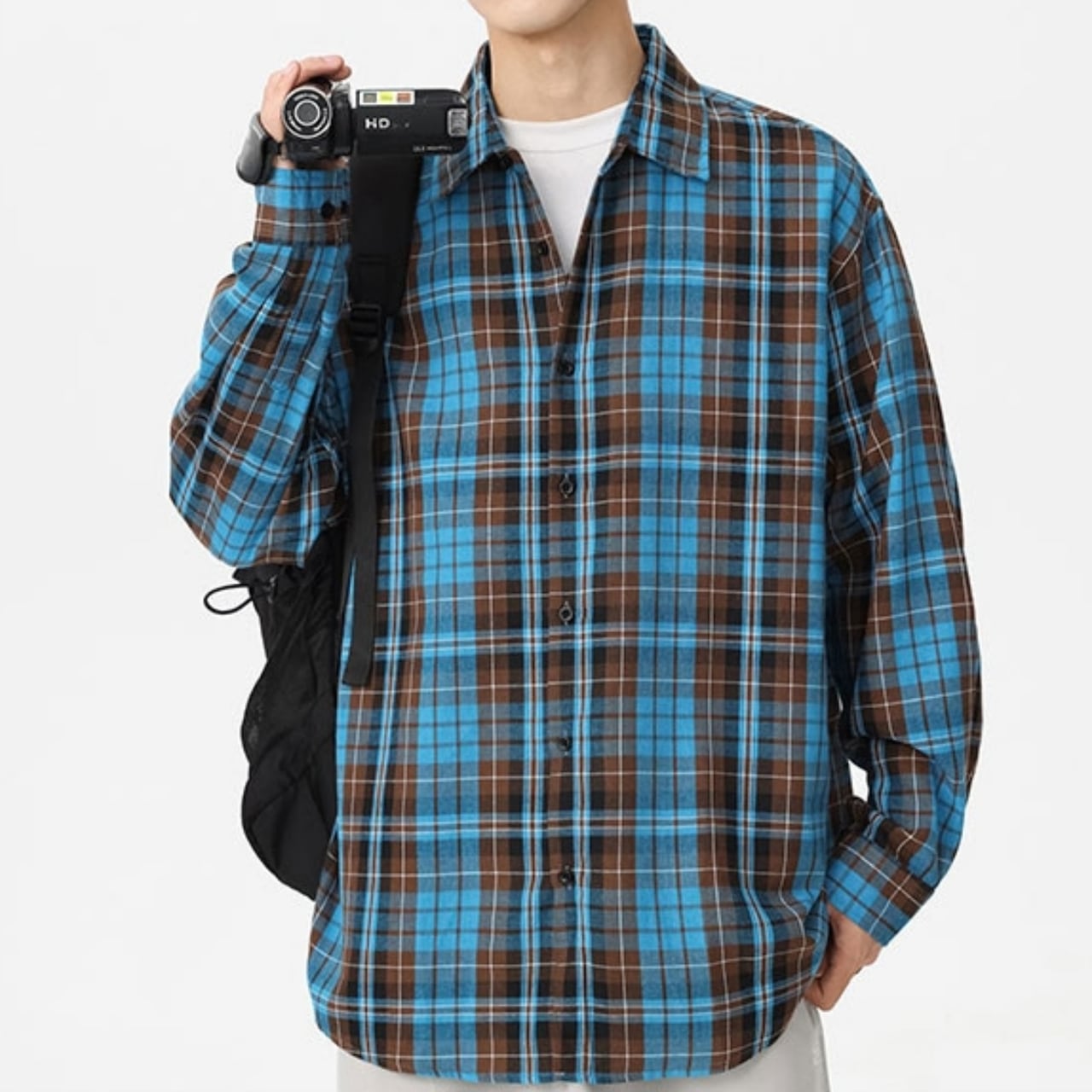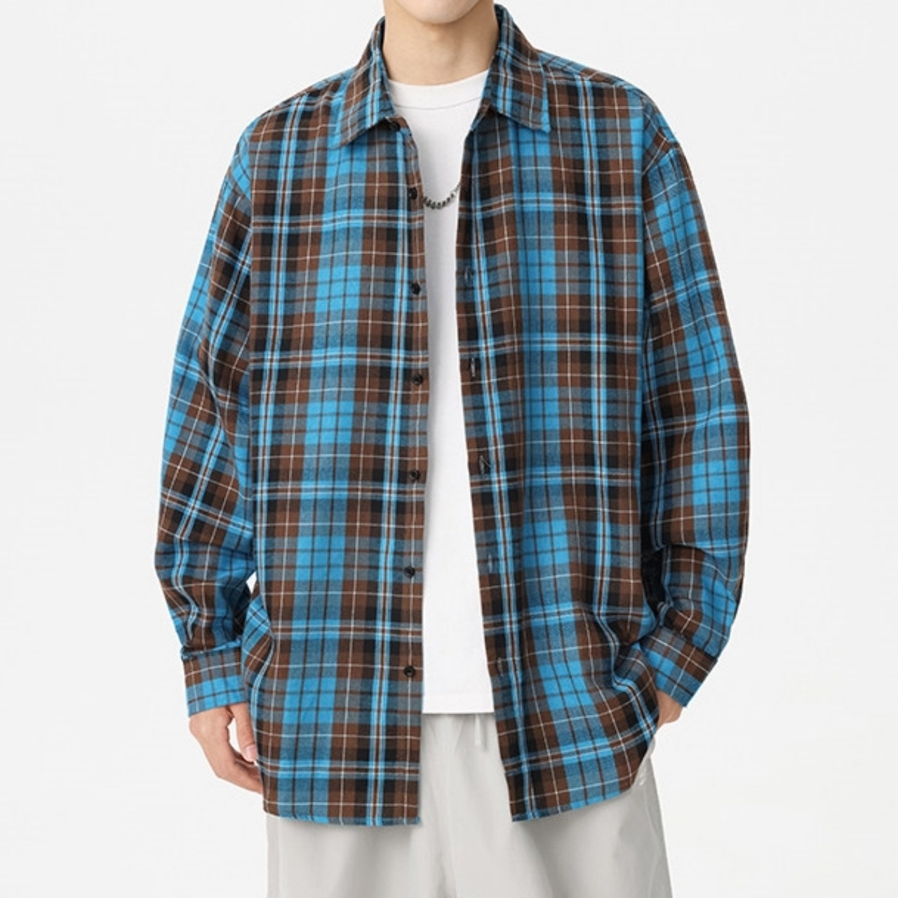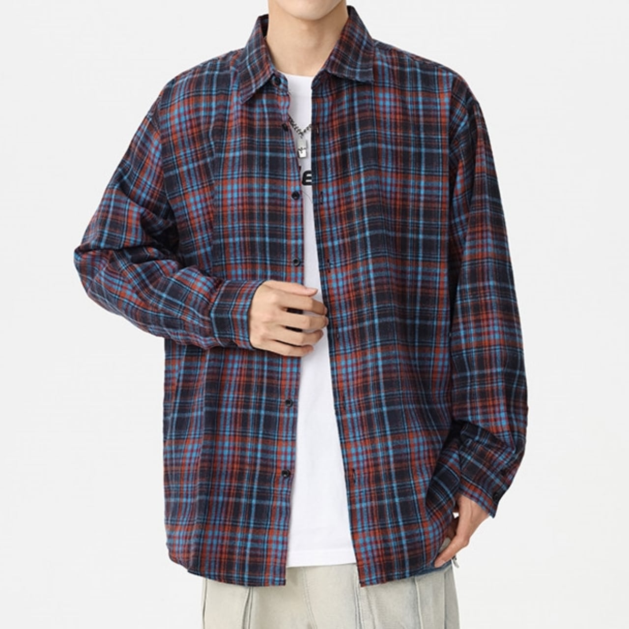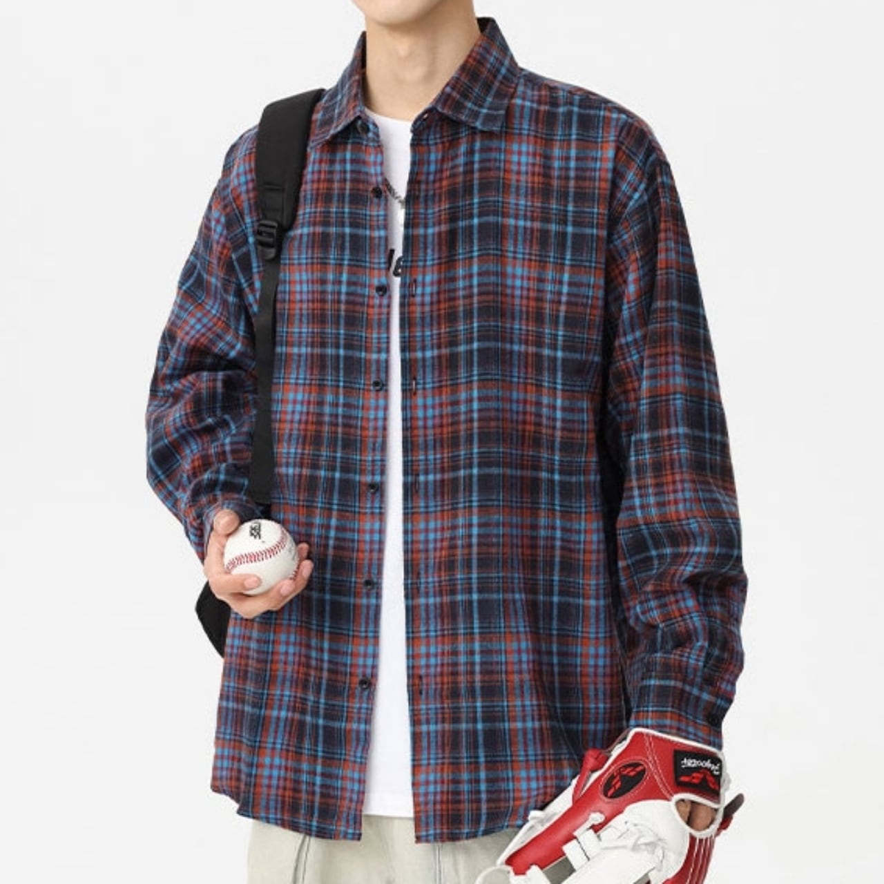 細やかなチェック柄を全面にあしらった、襟付きのスタンダードなデザインです。