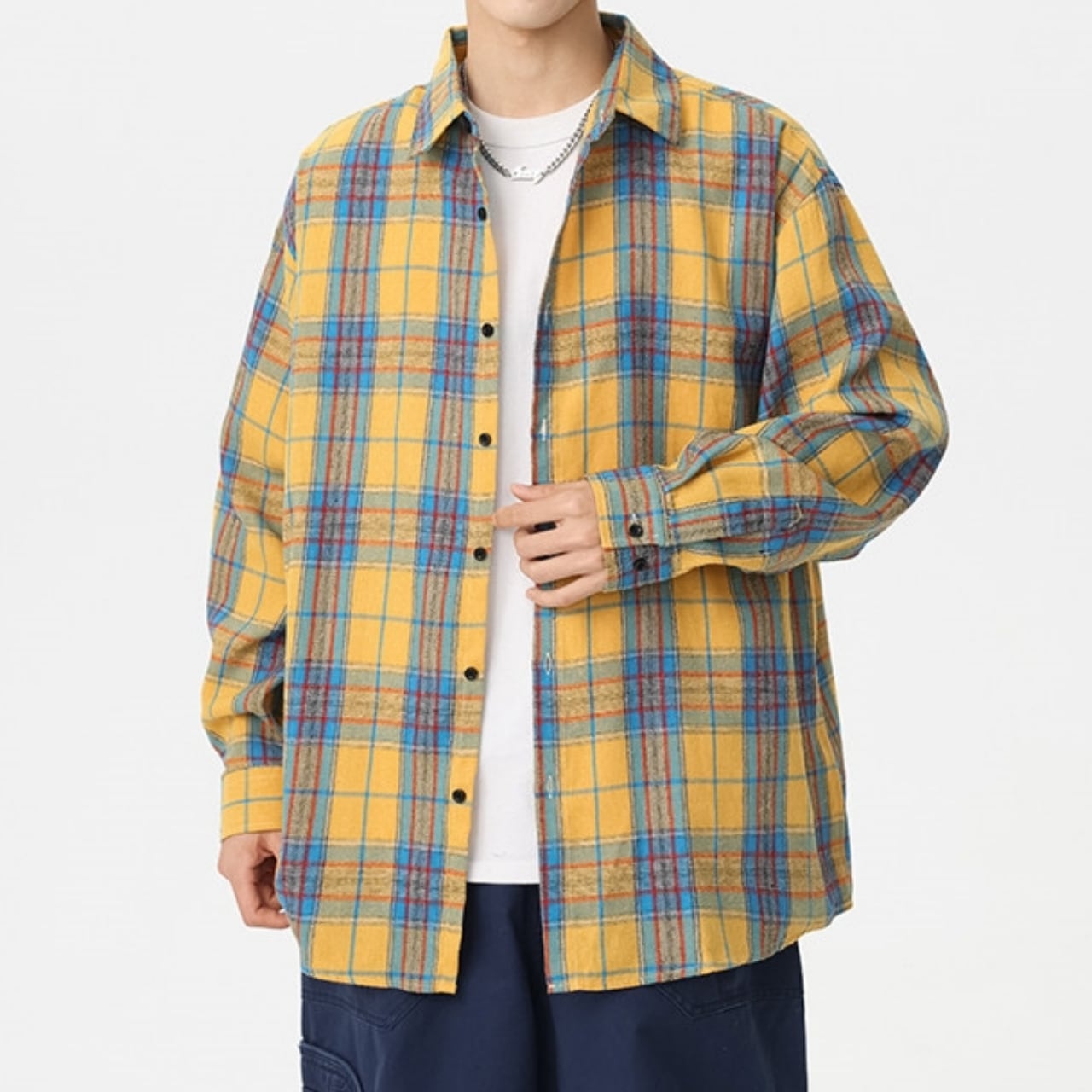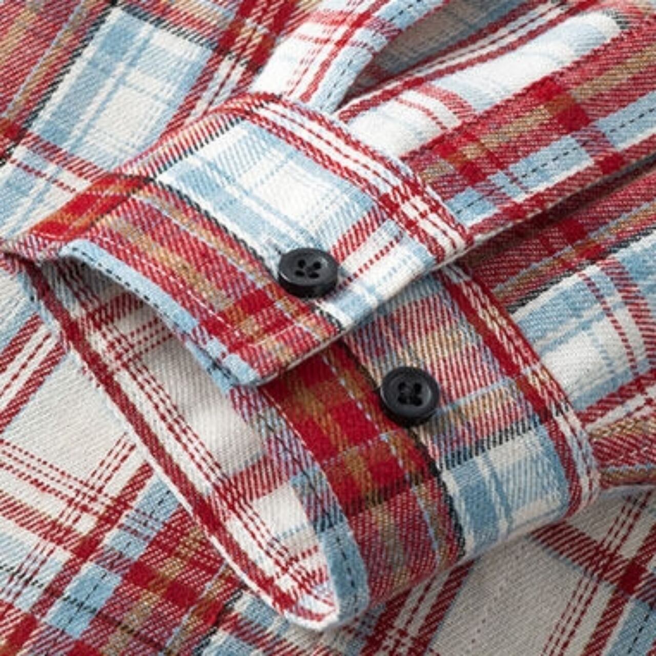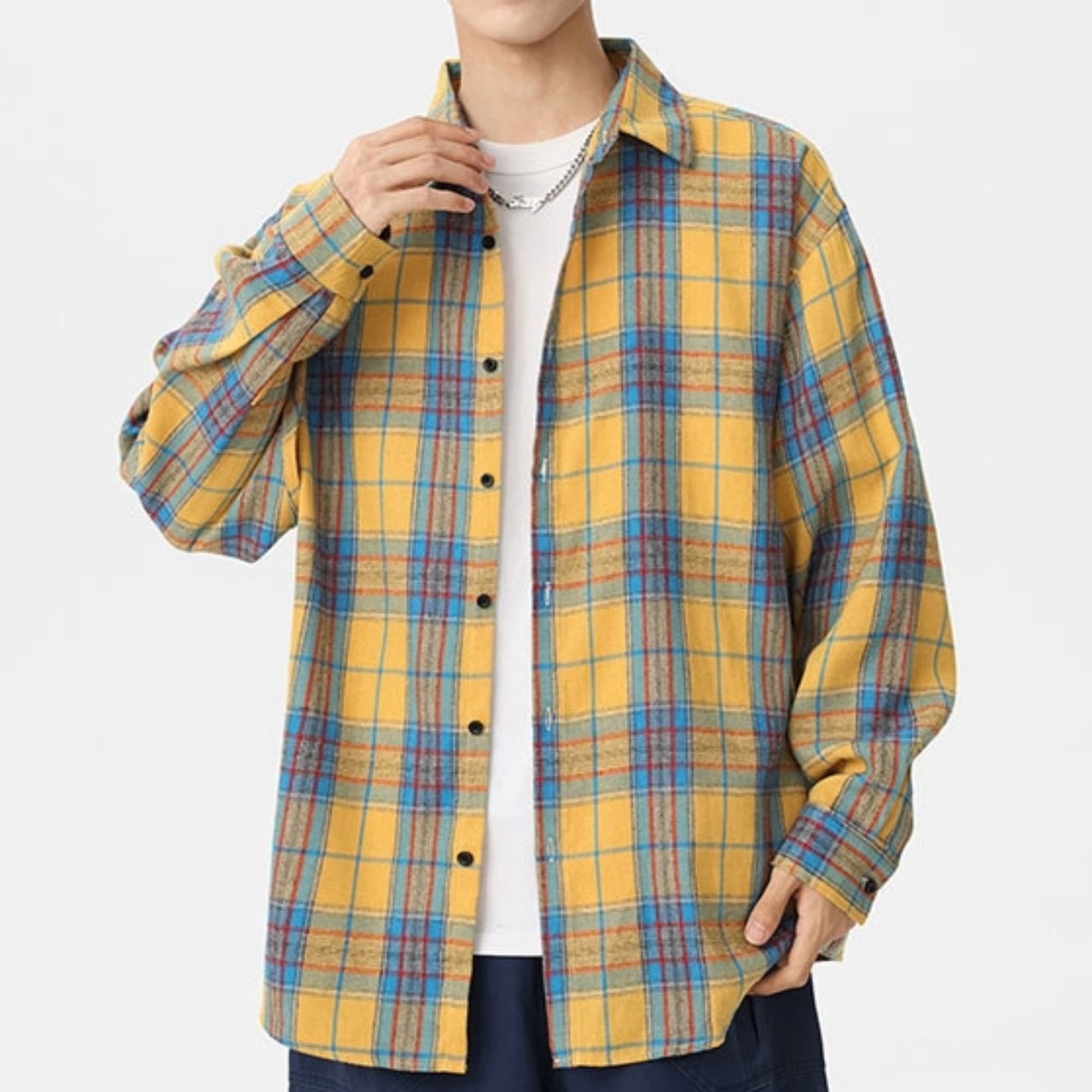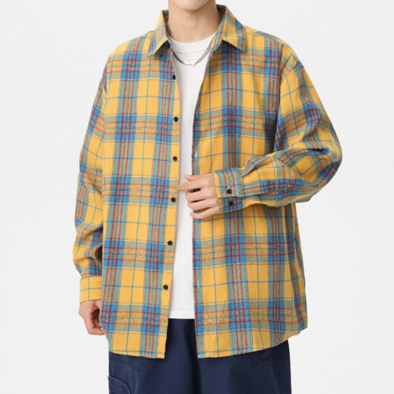 細やかなチェック柄を全面にあしらった、襟付きのスタンダードなデザインです。
