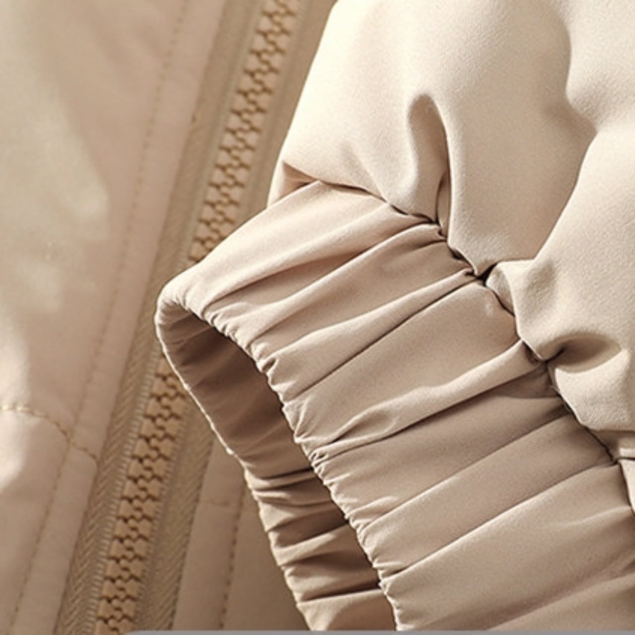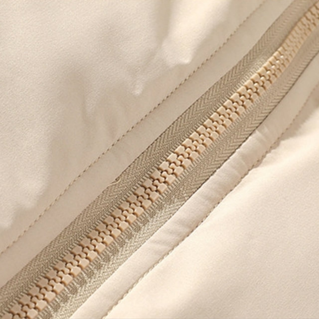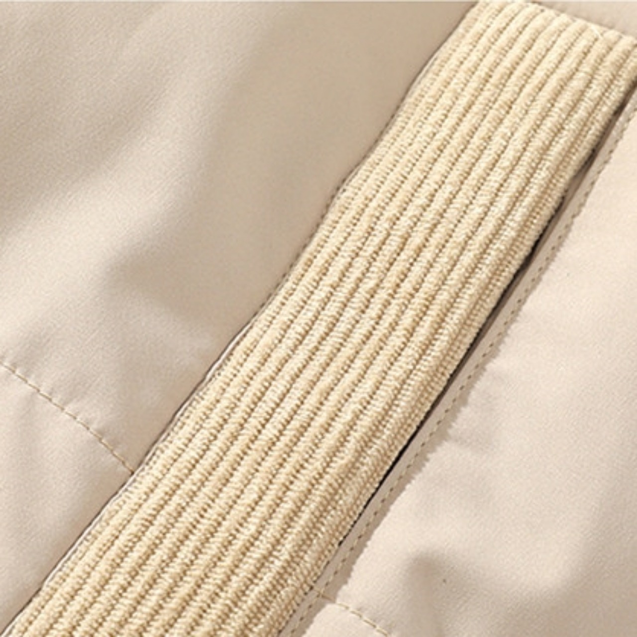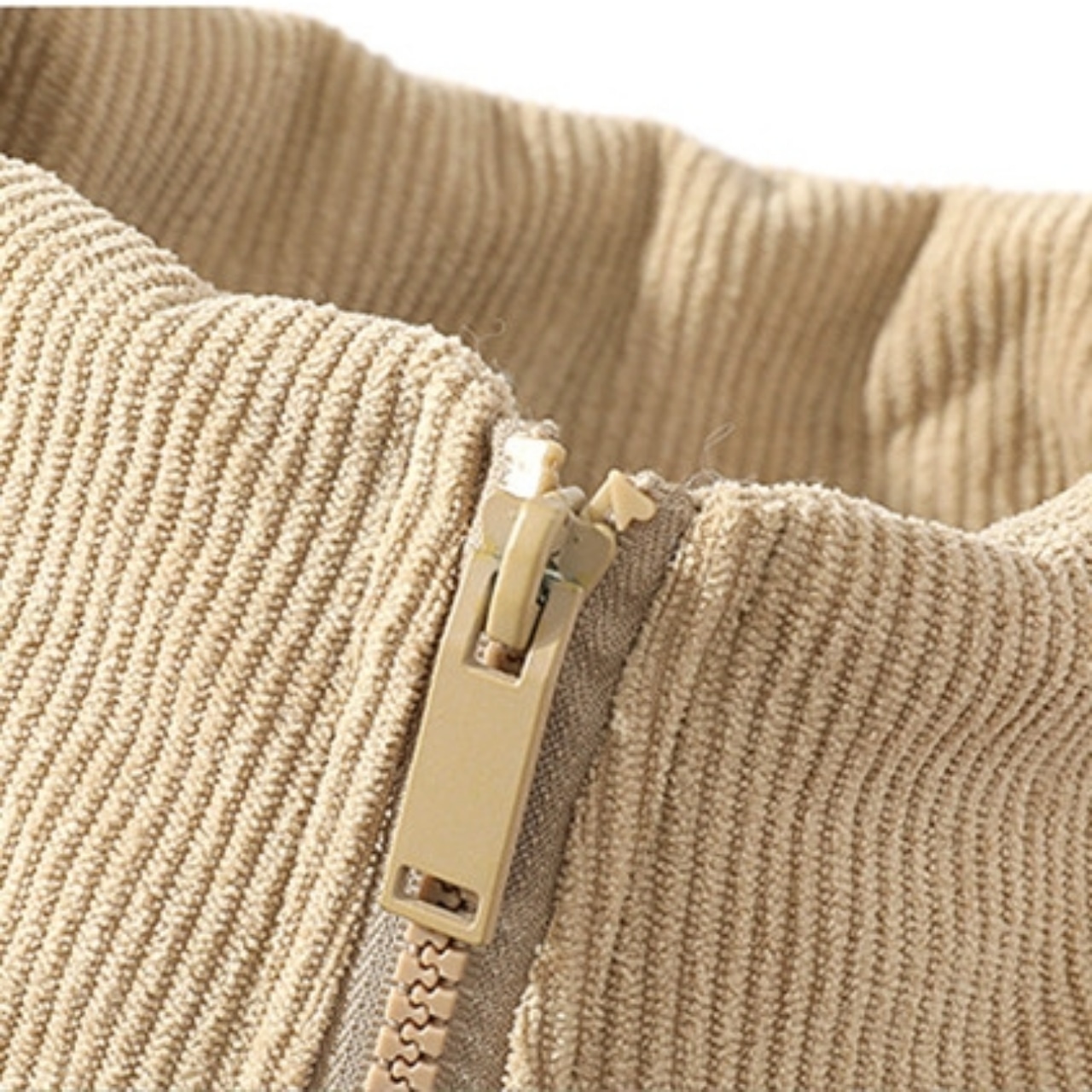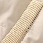 立ち襟のシルエットに、縦に配置されたサイドポケットがアクセントになっています。