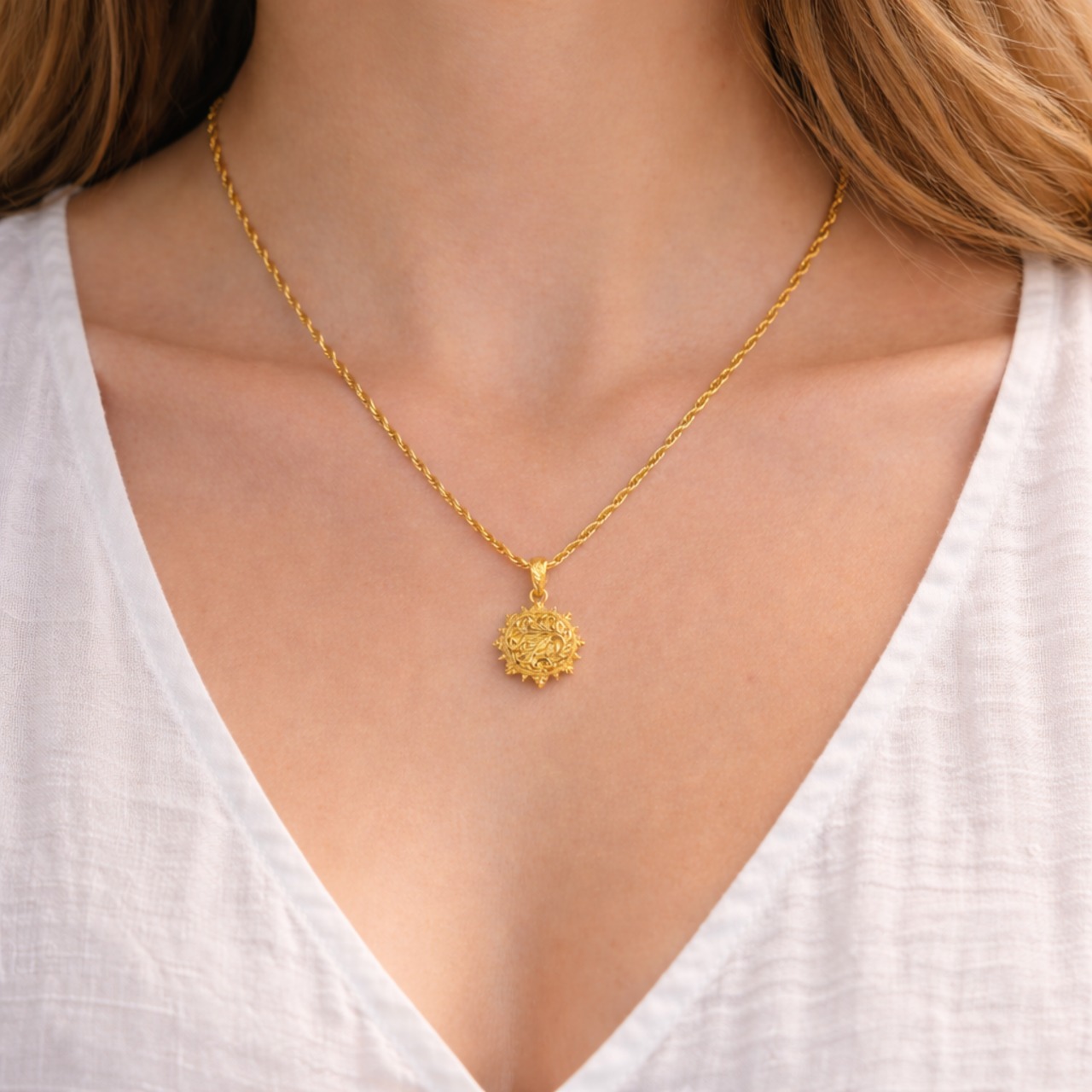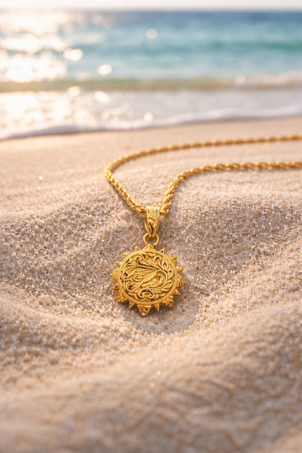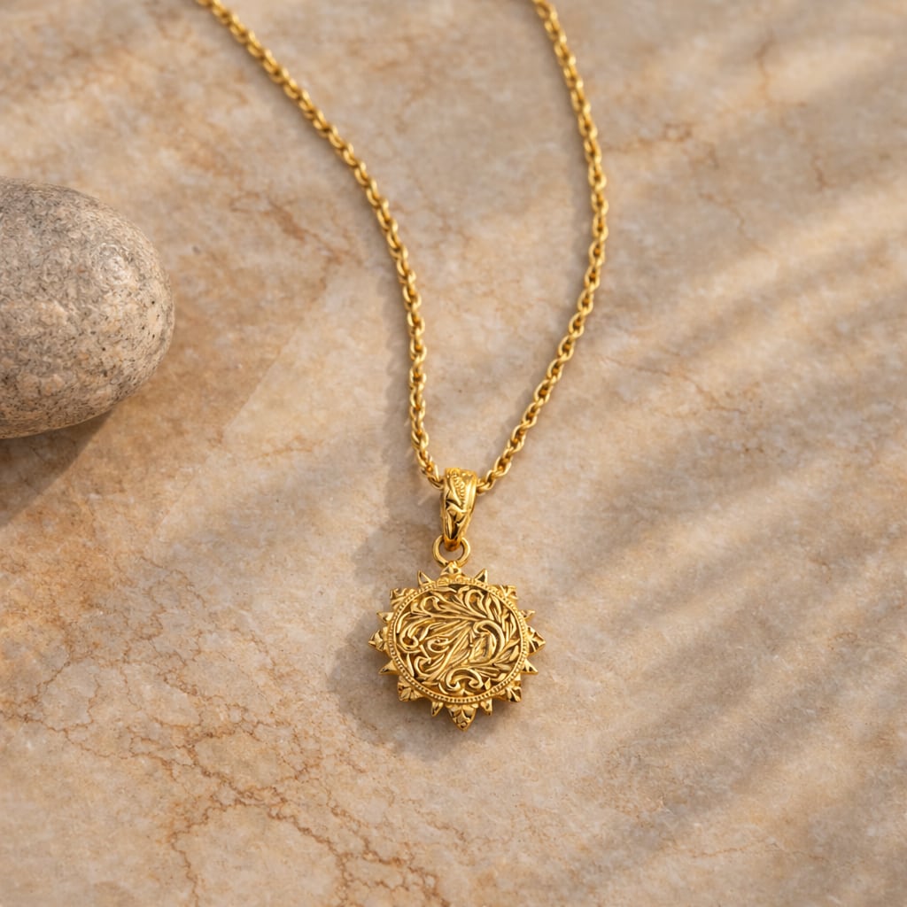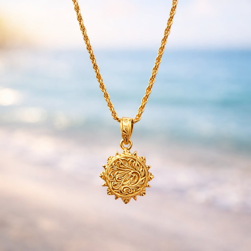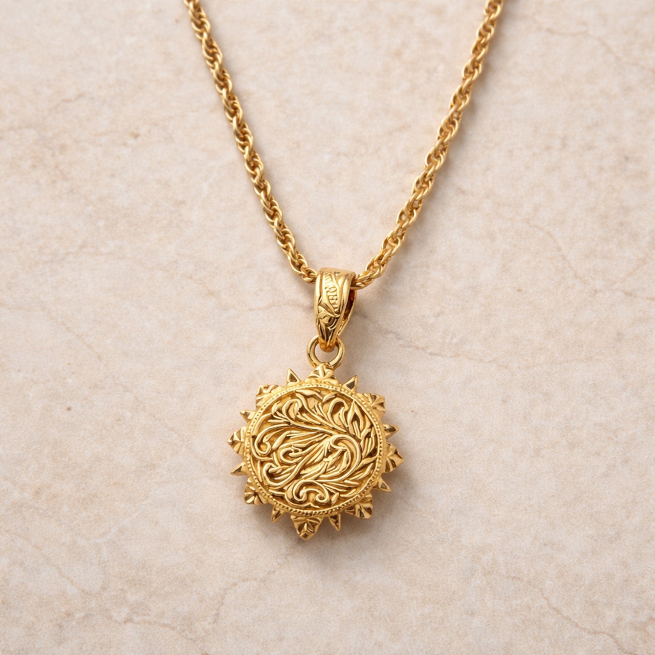 力強さの中に上品さを感じる、身につけやすいサンモチーフネックレスです。
