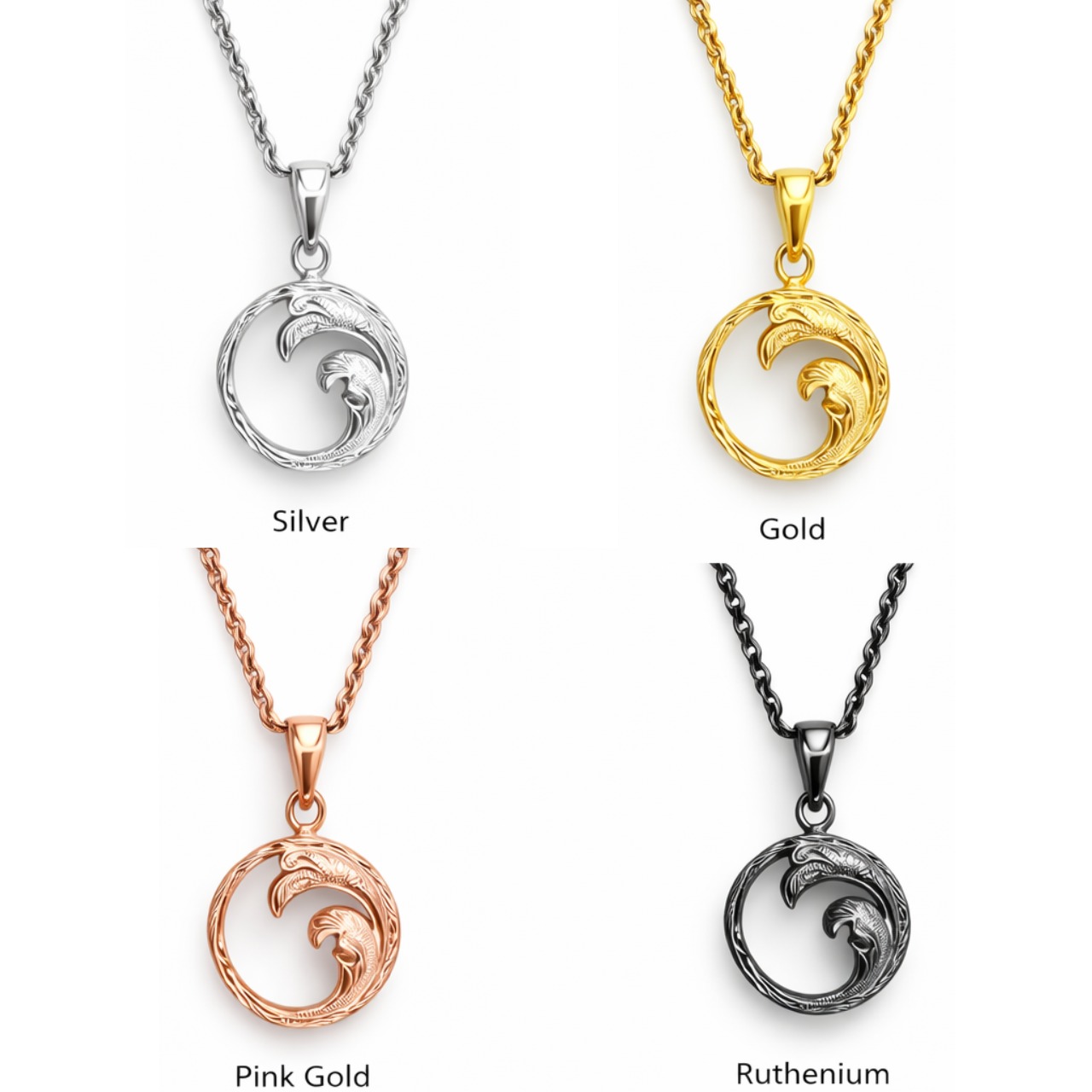 Gold / Pink Gold / Ruthenium / Rhodiumは、ステンレスの上に表面加工を施しています。