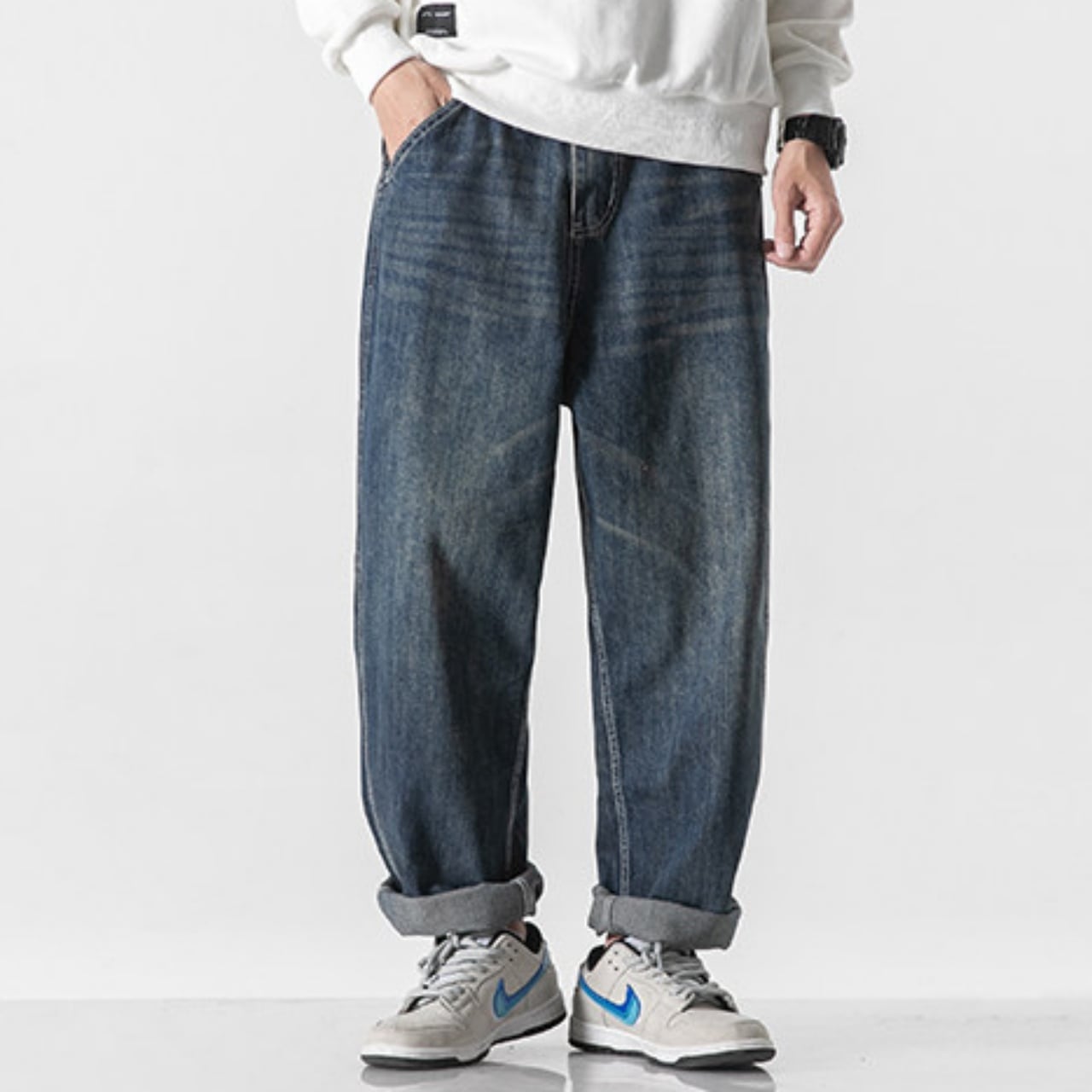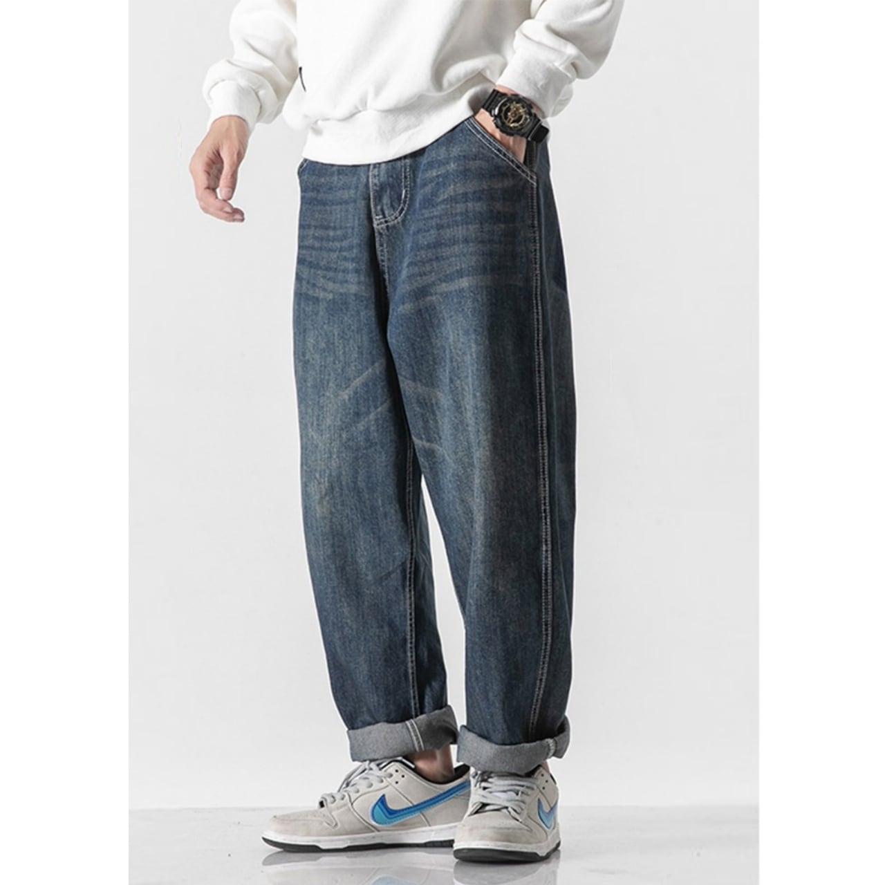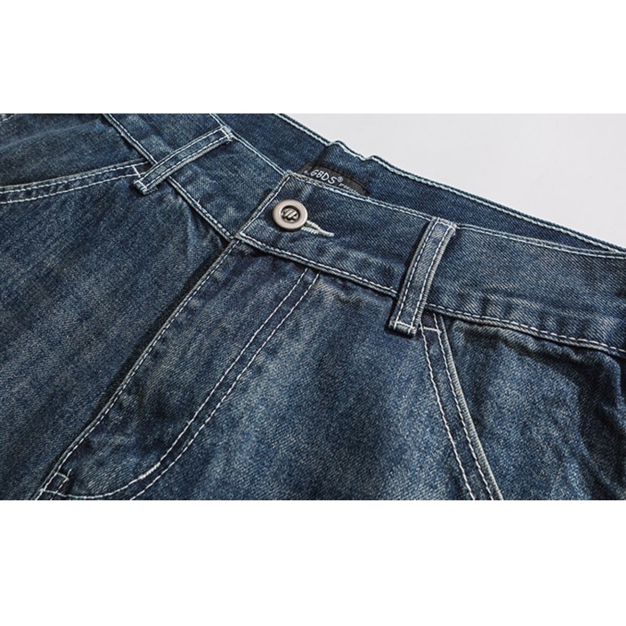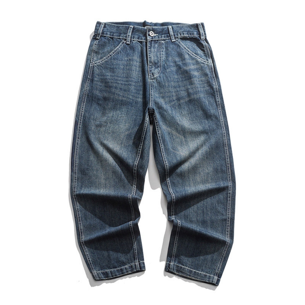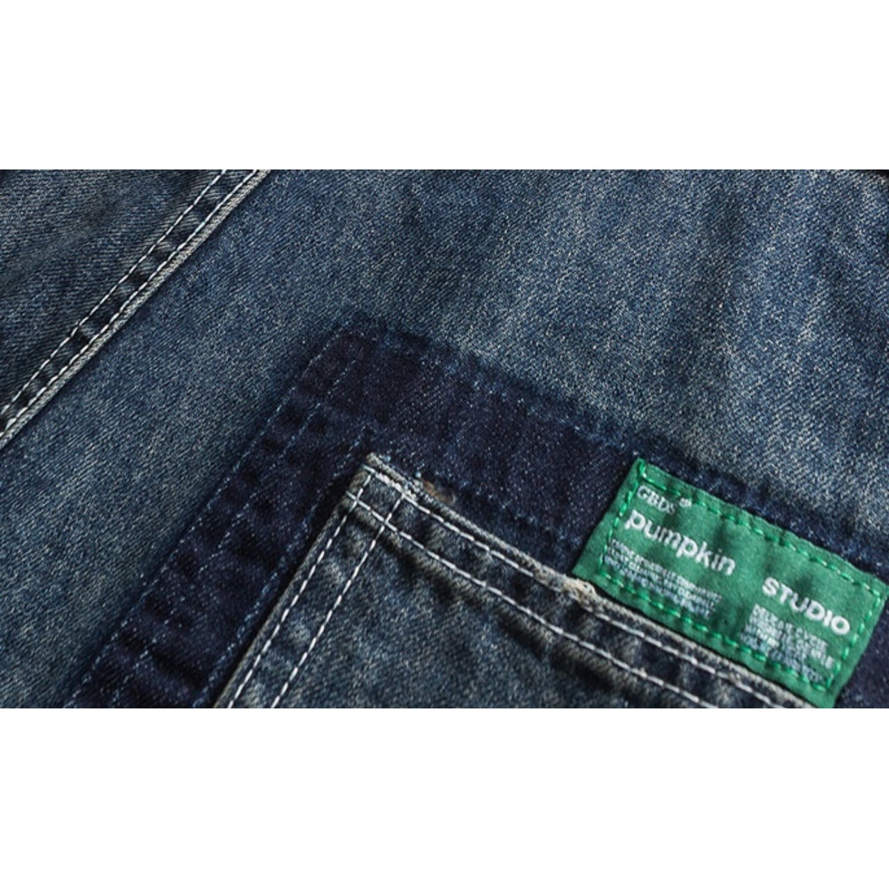 ゆったりとしたシルエットに白いステッチが映えるパンツです。