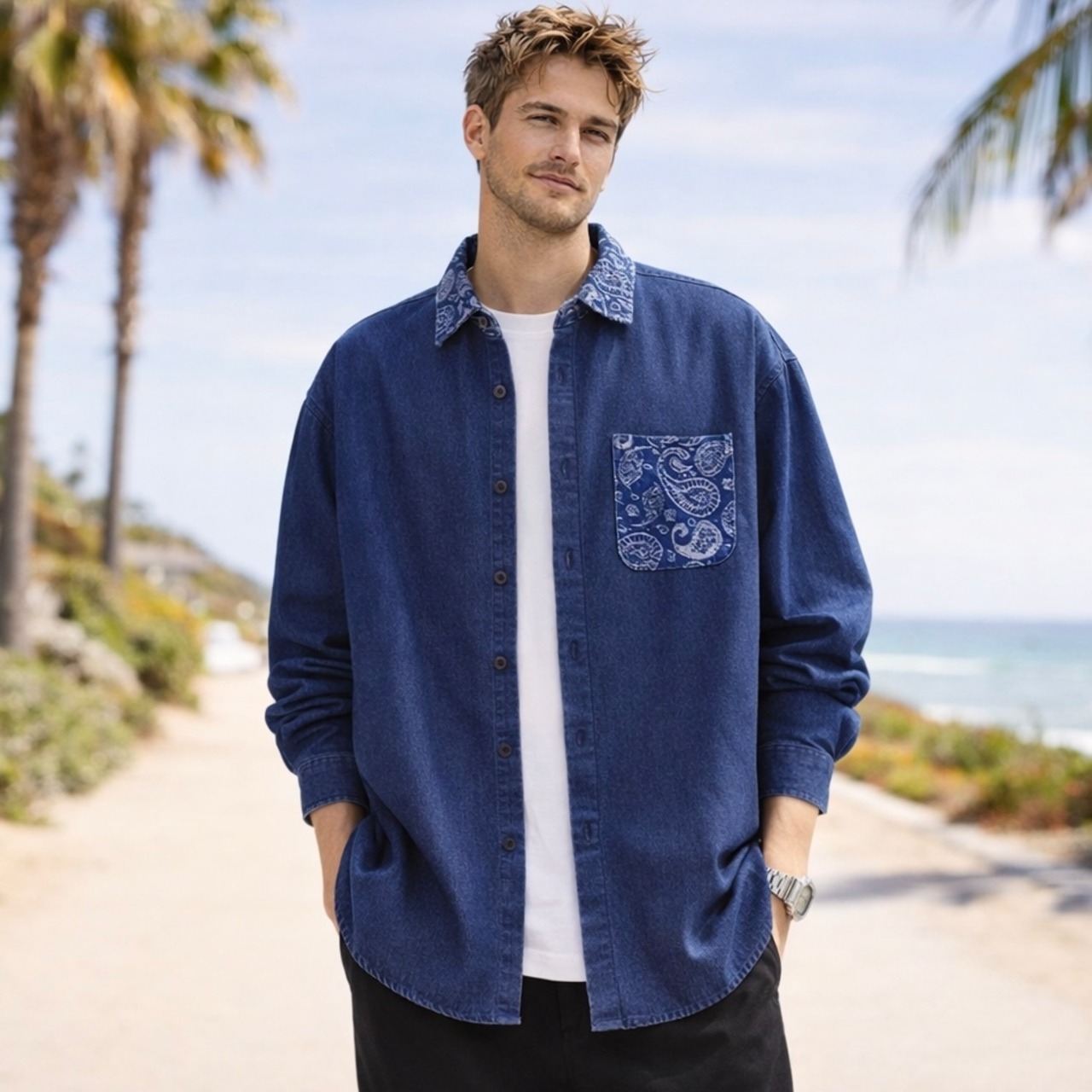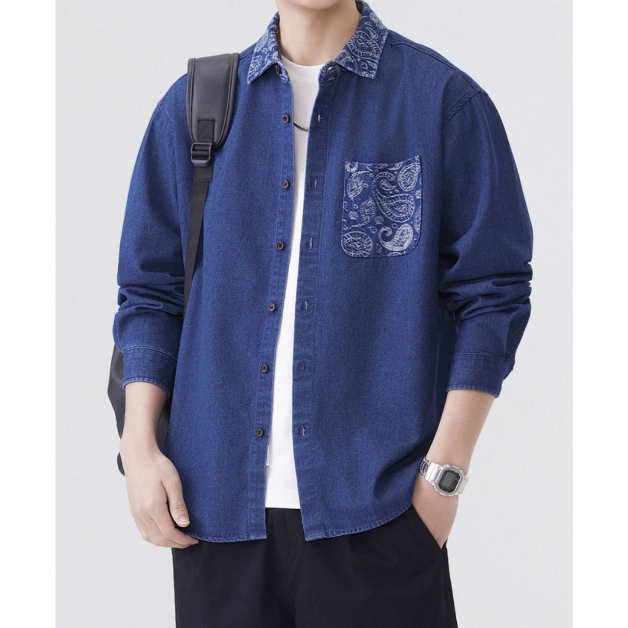 Paisley Pocket Denim Shirt SI1003