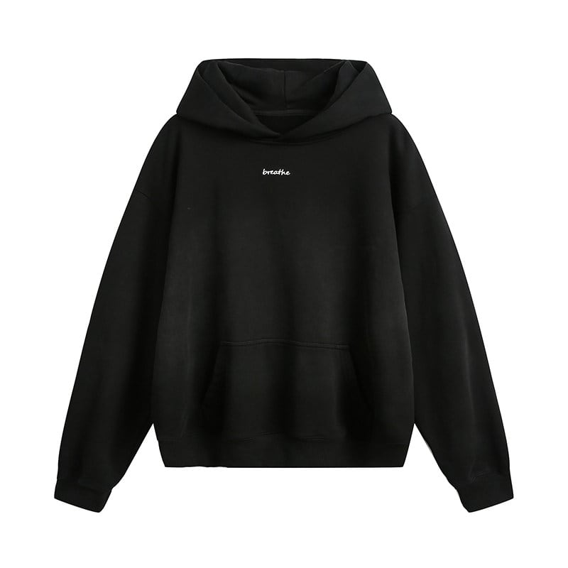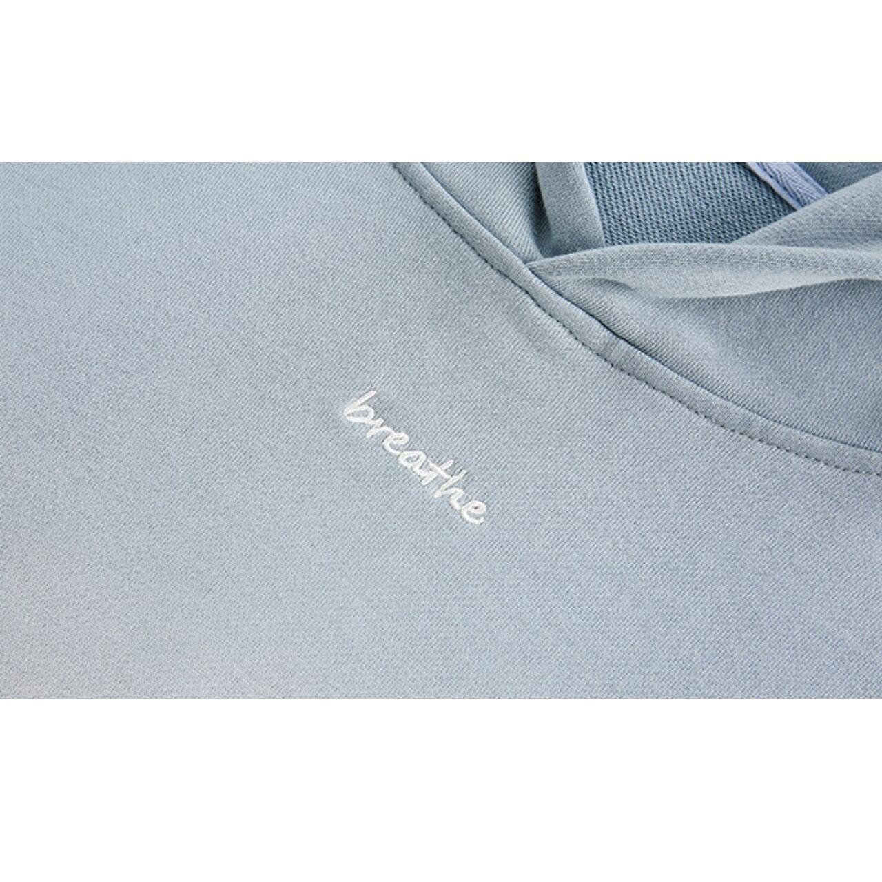 胸元に小さく配置された英字ロゴがアクセントになった、シンプルなデザインのパーカーです。