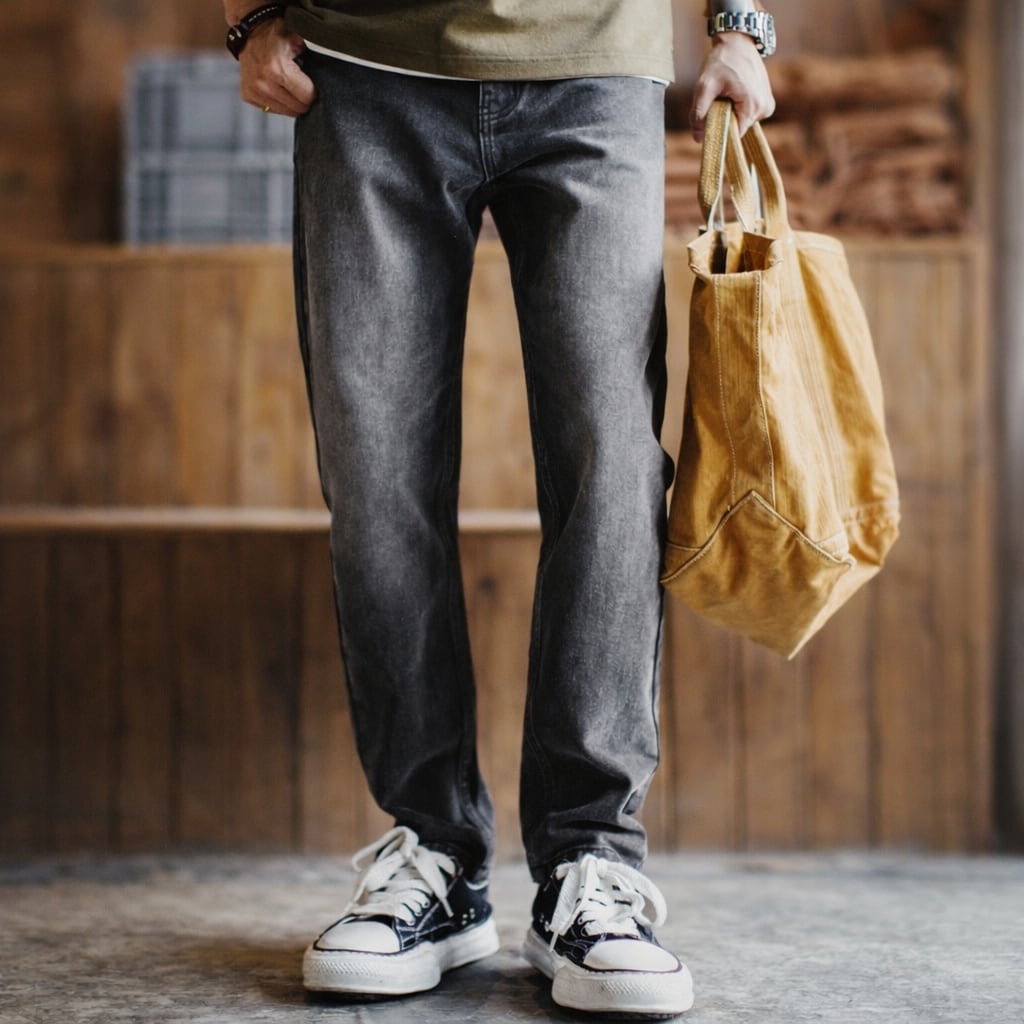 全体に施された独特な加工が、着慣れたような風合いを感じさせる一本です。