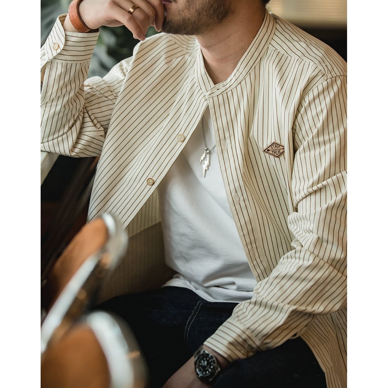 Striped Band Collar Shirt SI1014