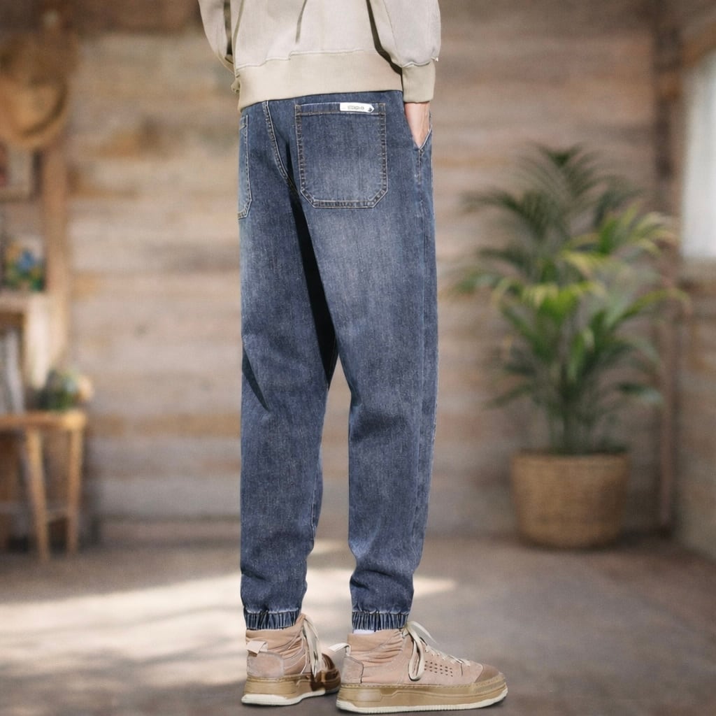 足首のゴムがシルエットを引き締め、スニーカーとの相性も抜群な一着です。