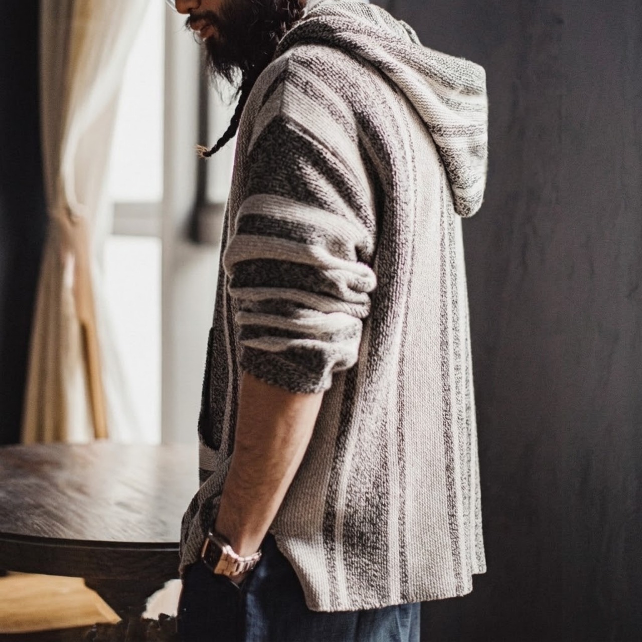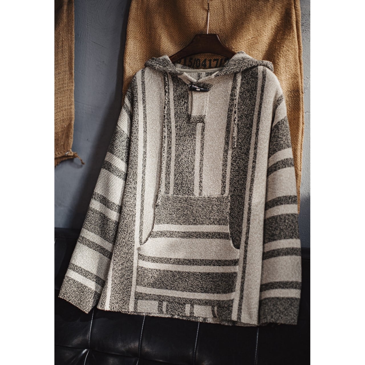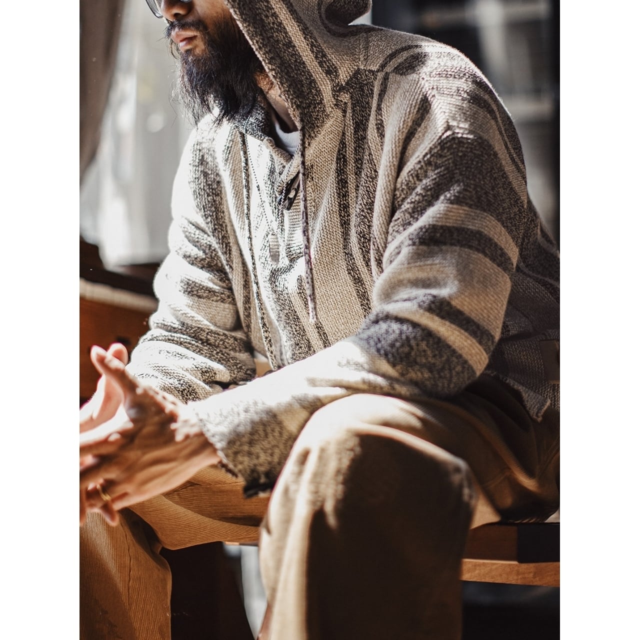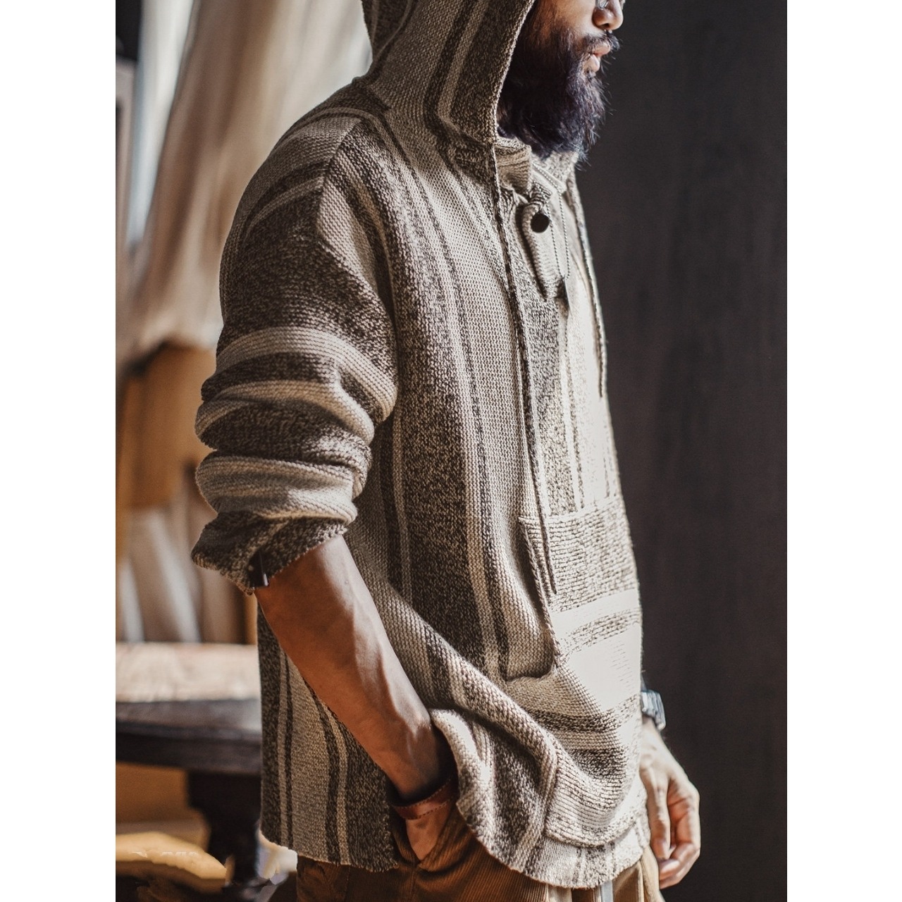 太さの異なるボーダー柄を全身にあしらった、リラックス感のあるフーディーです。