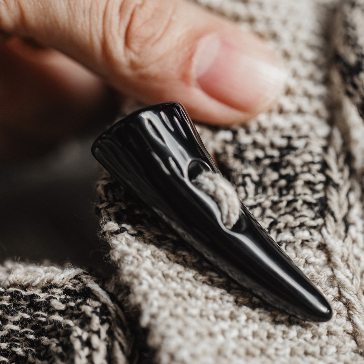 フロントには大きなポケットと、首元にワンポイントのボタンを配置しました。