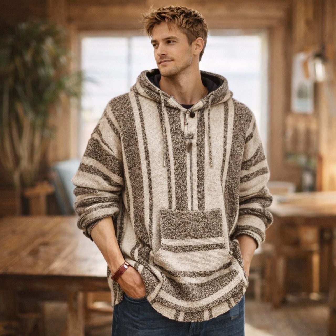 Horizontal Stripe Pocket Hoodie SI1019