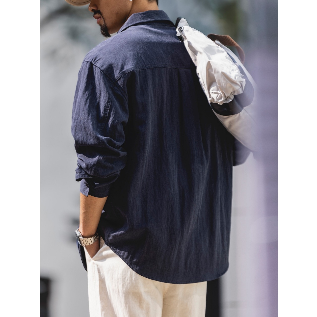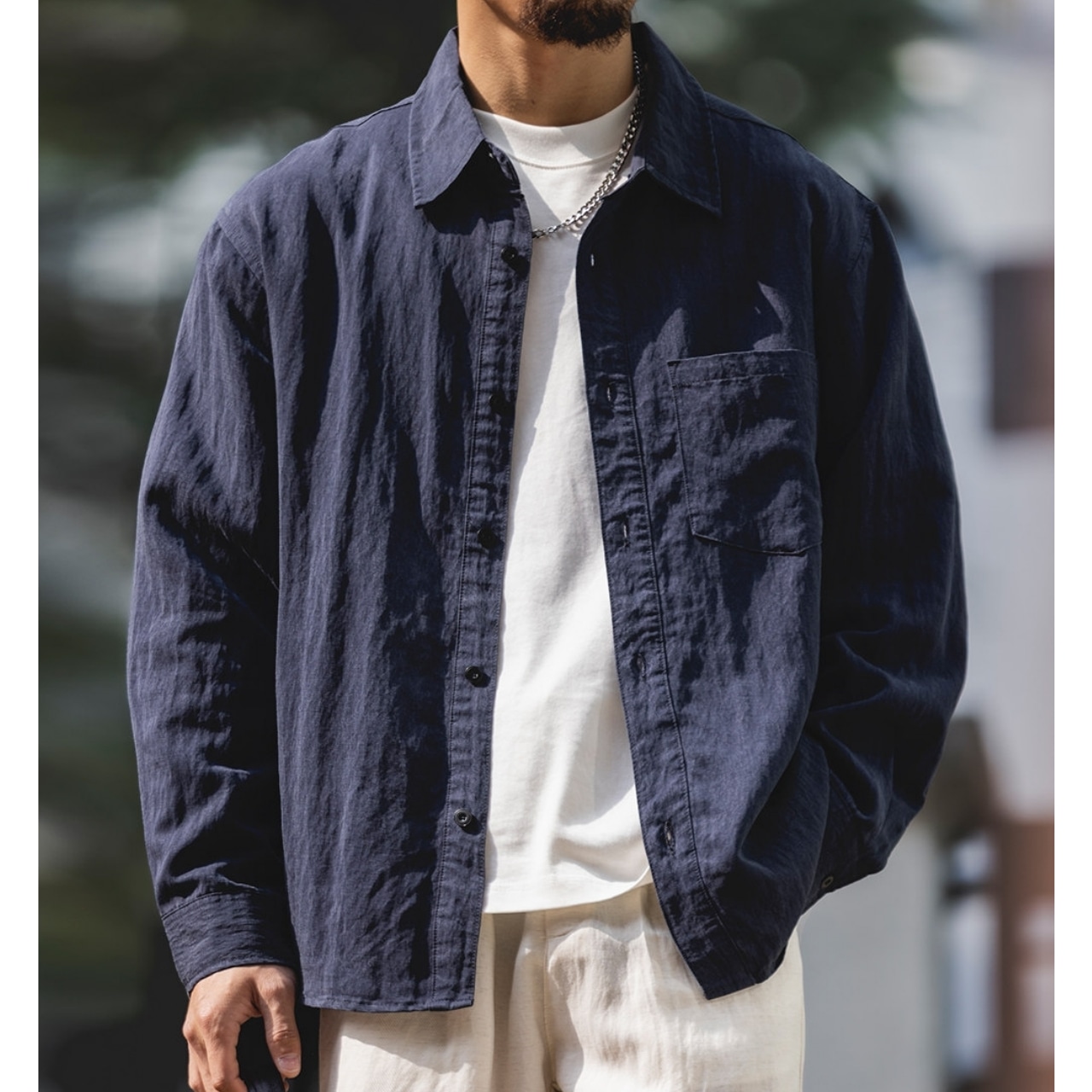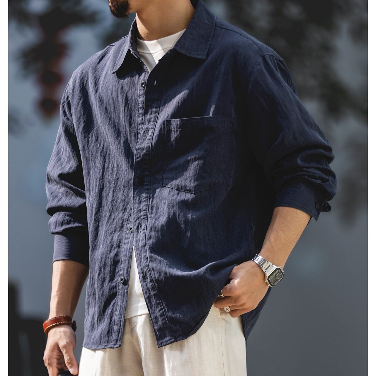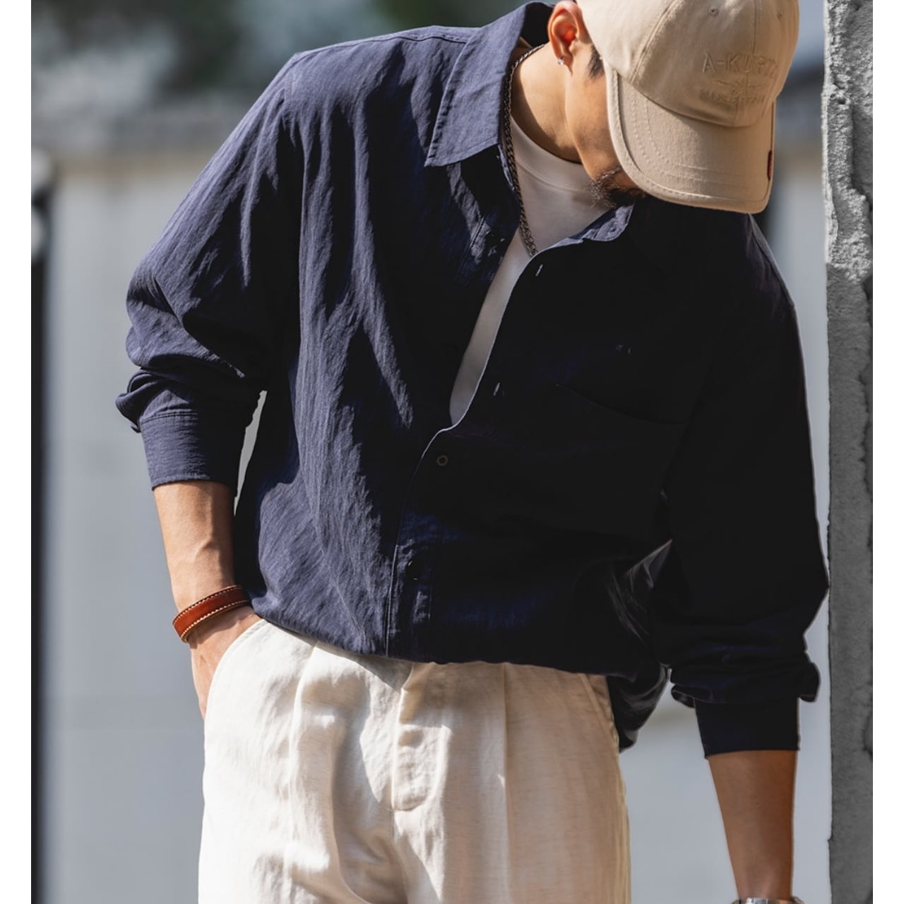 羽織りとしても使いやすく、シンプルながらも表情のある質感が特徴のシャツです。