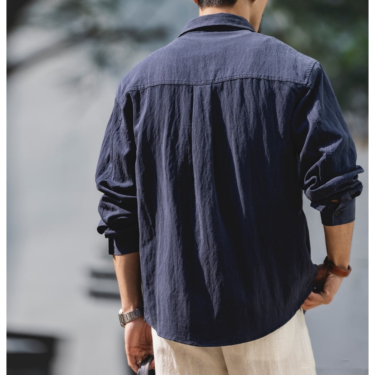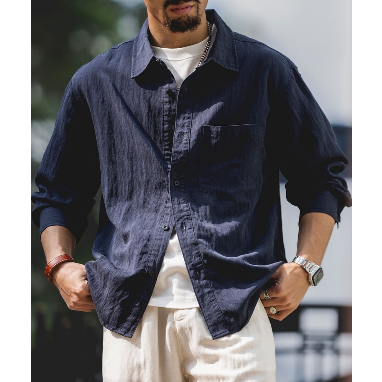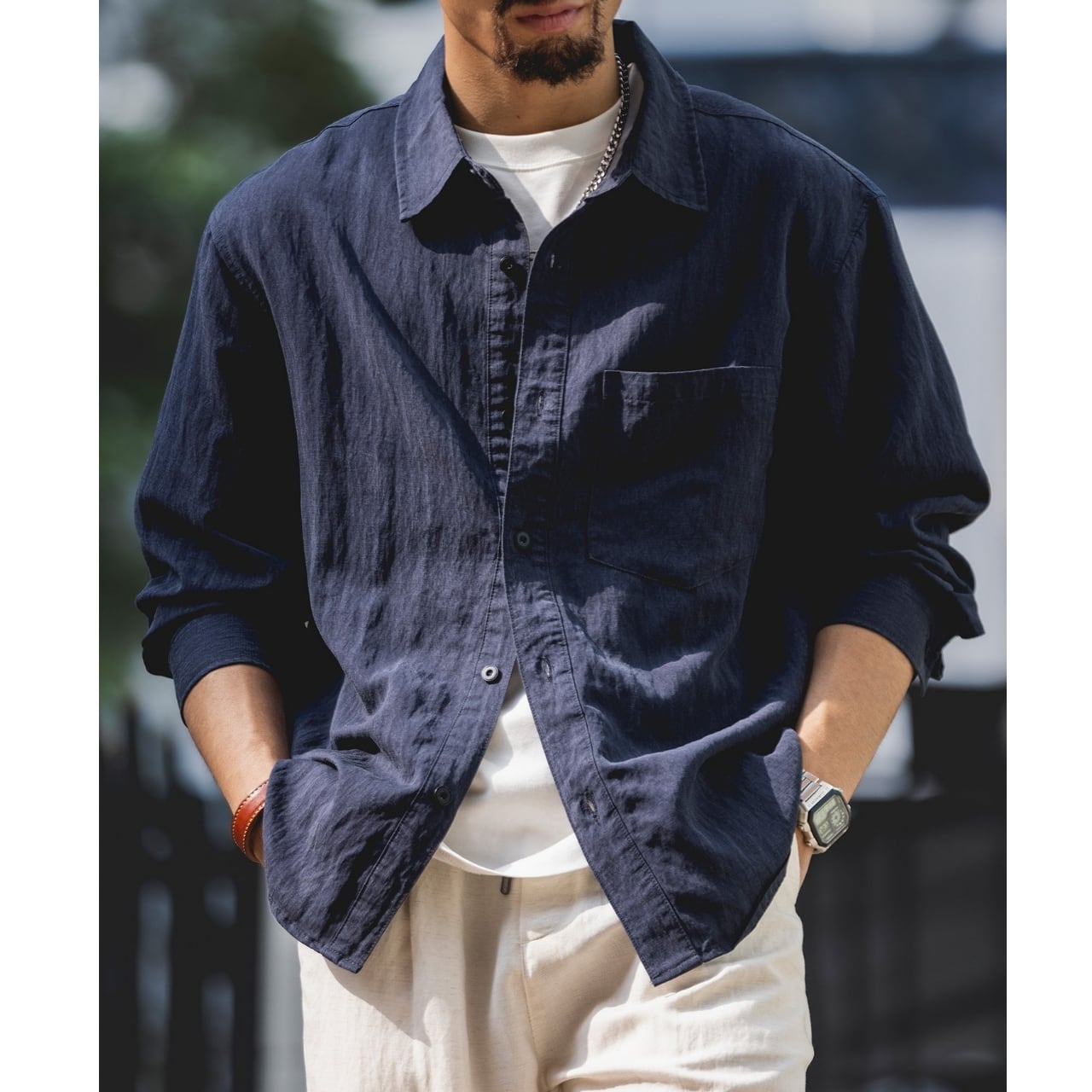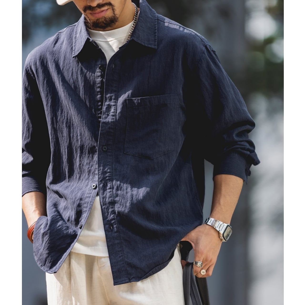 羽織りとしても使いやすく、シンプルながらも表情のある質感が特徴のシャツです。