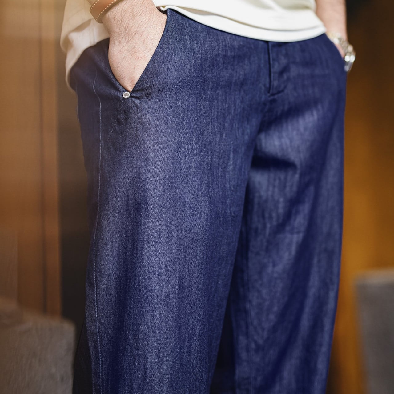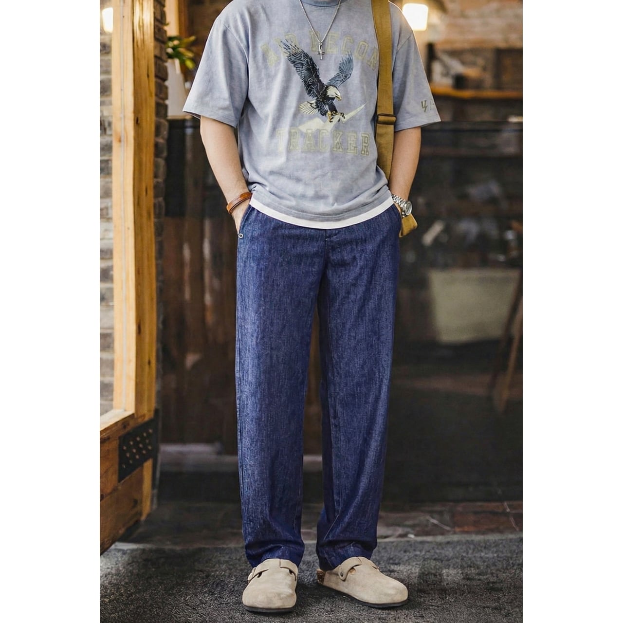 ゆったりとしたストレートシルエットが特徴のデニムパンツです。