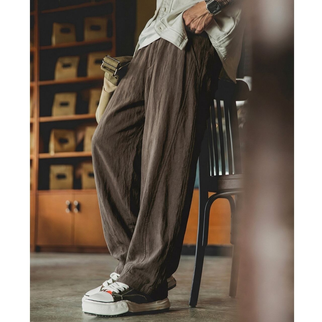 ゆったりとしたワイドなシルエットが魅力のパンツです。