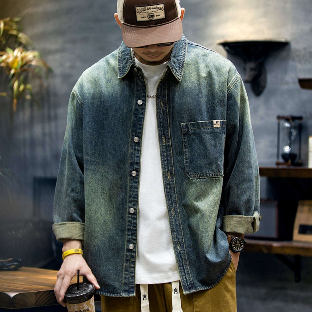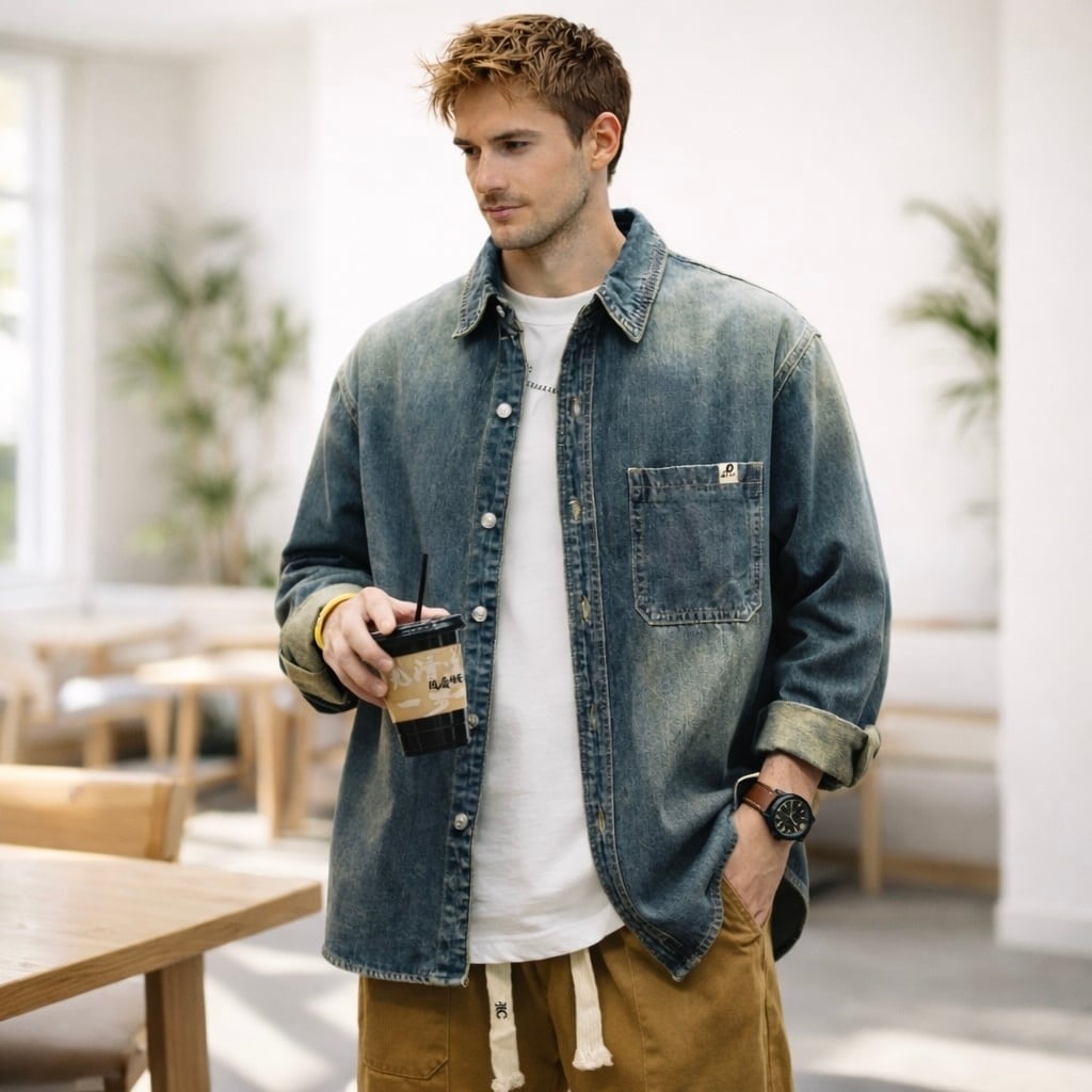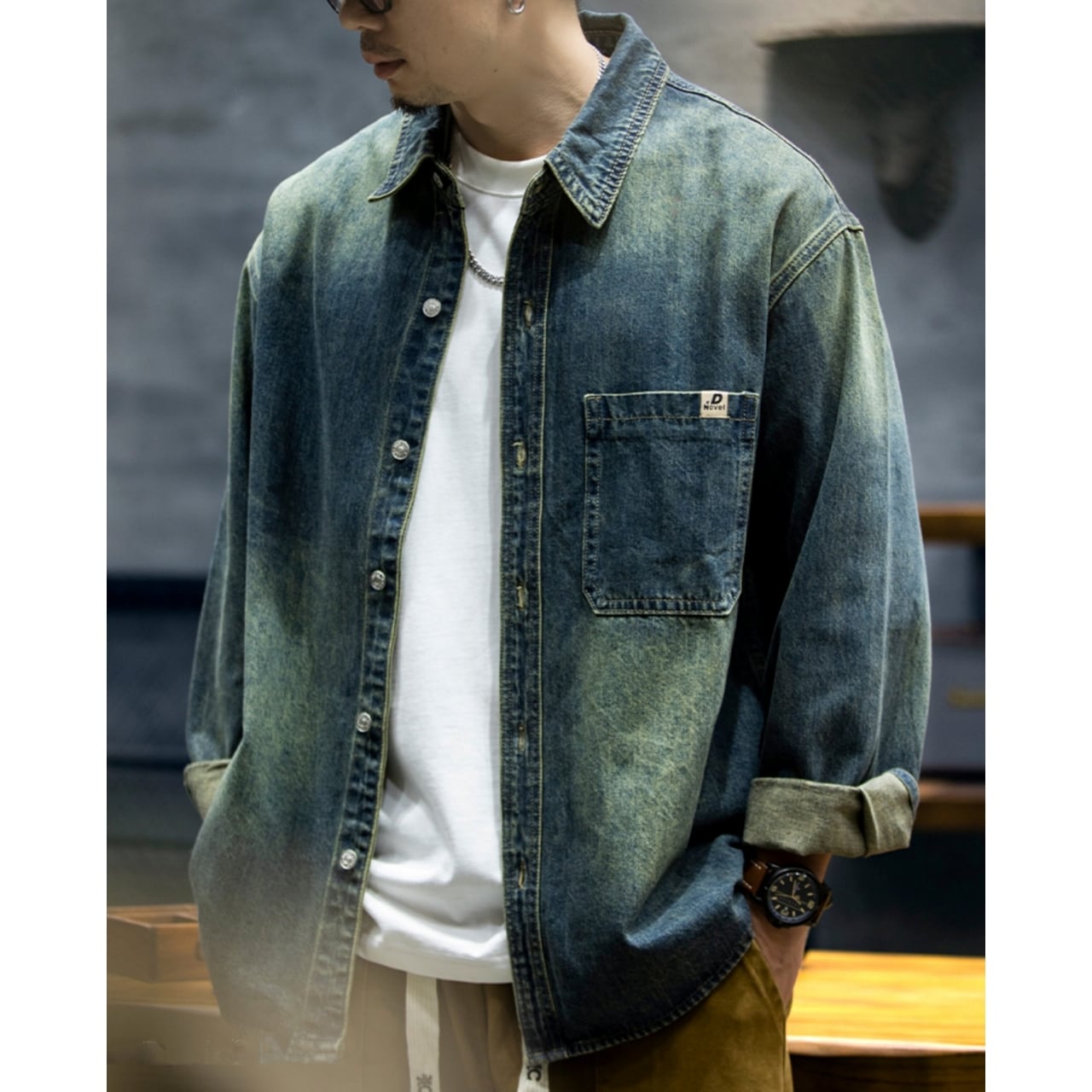 Wash Denim Big Logo Shirt SI1101